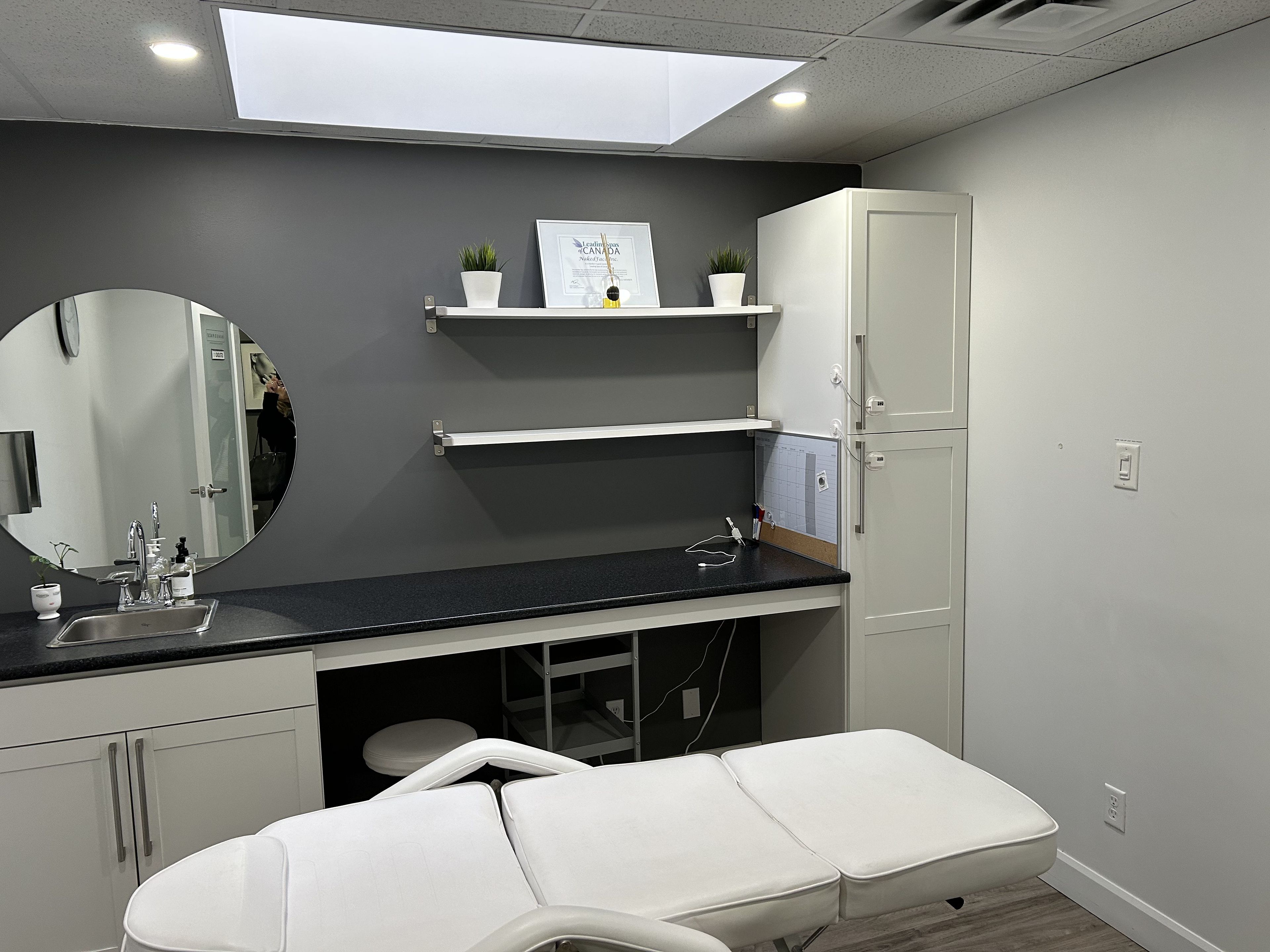 • Approximately 1,000 sq. ft. with four private treatment or office rooms.