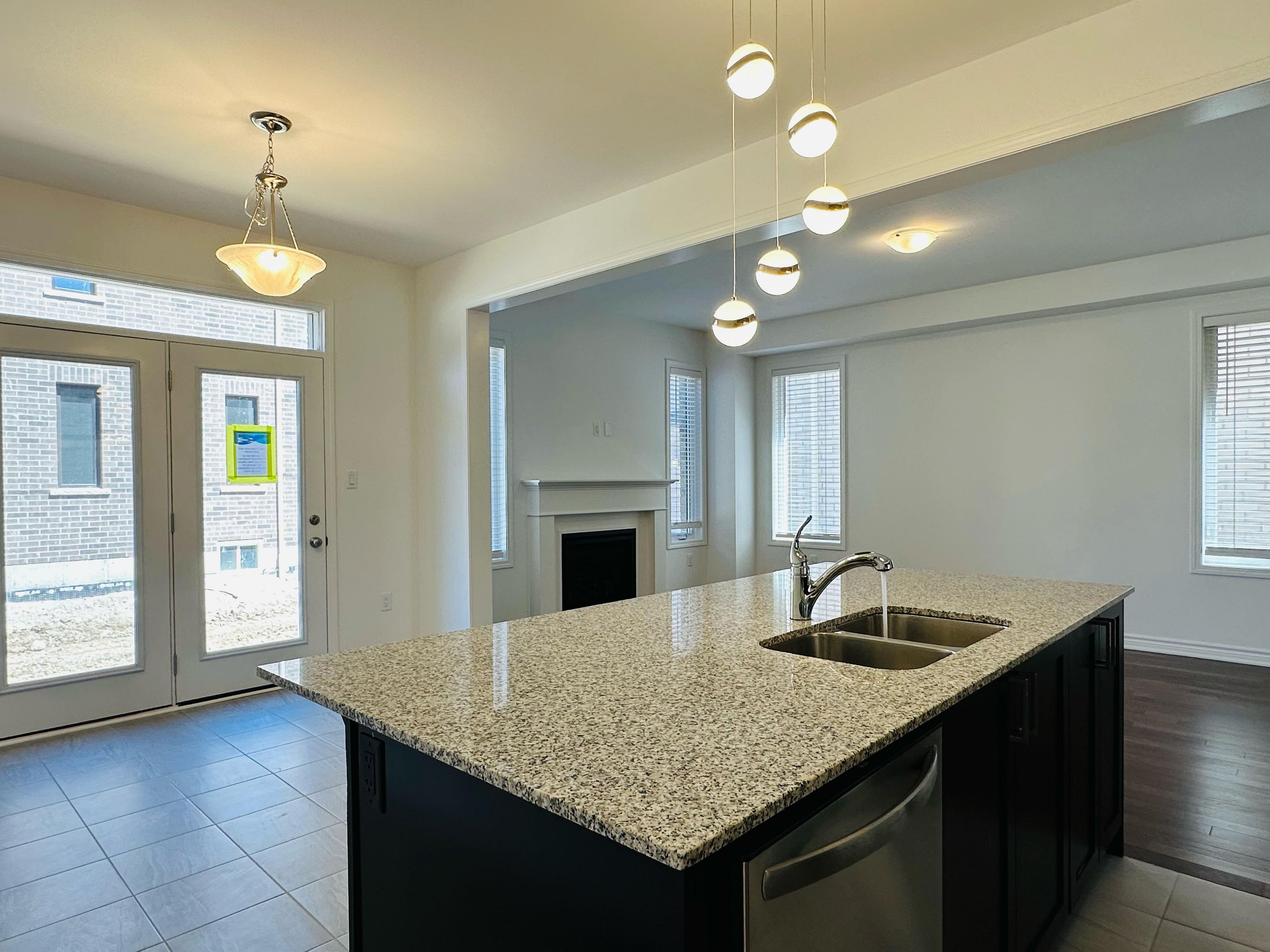 • Spacious kitchen with stainless steel appliances and large island.