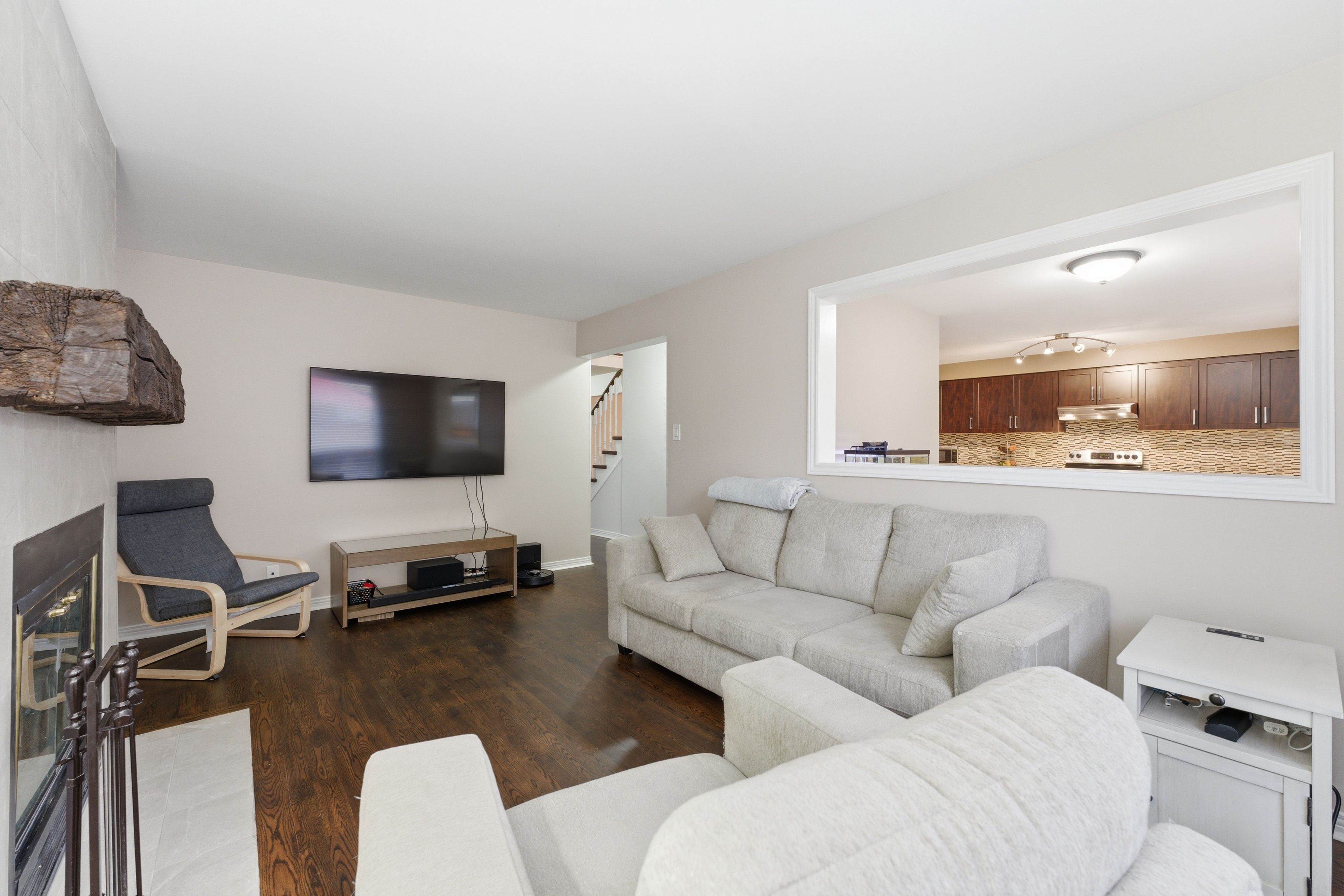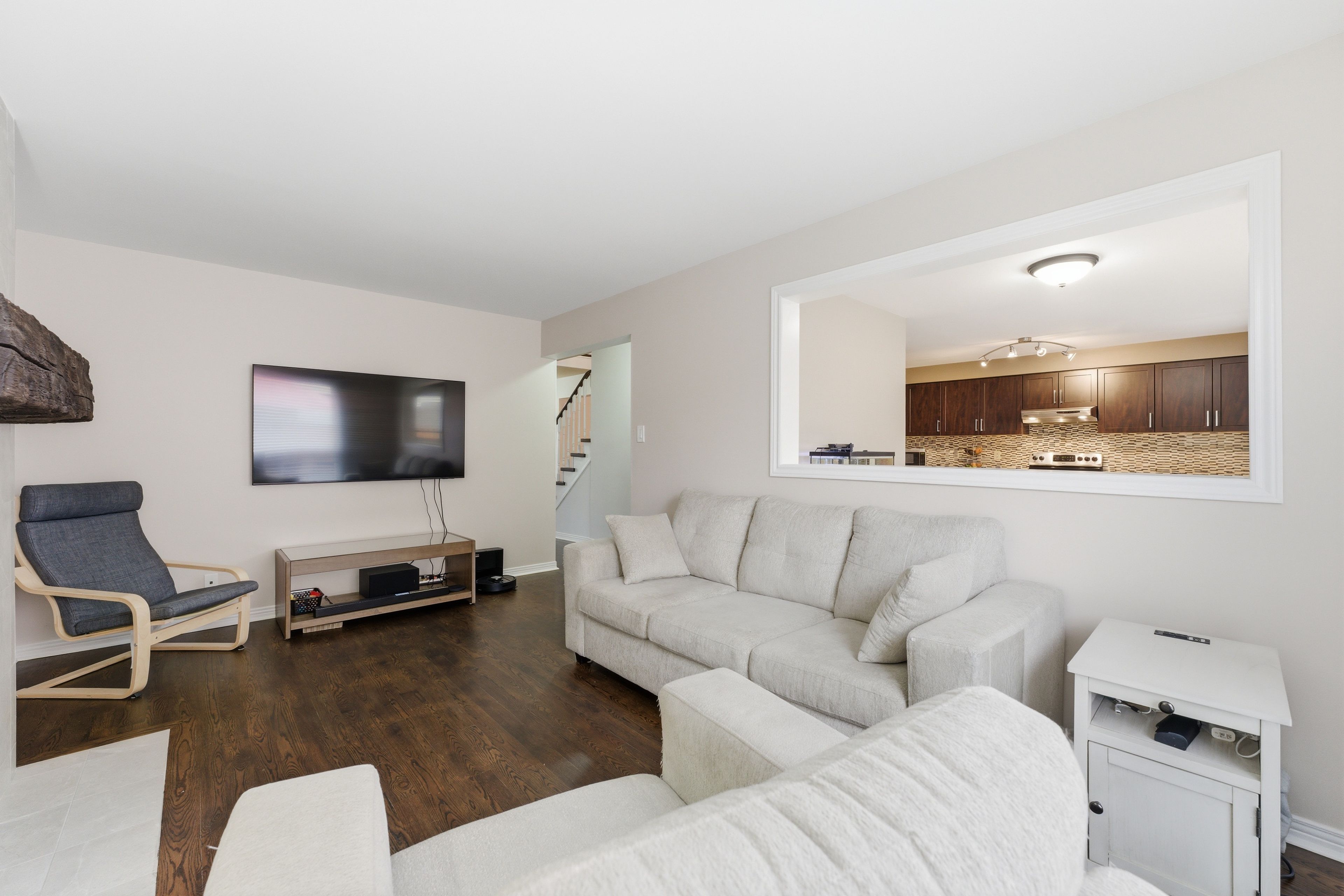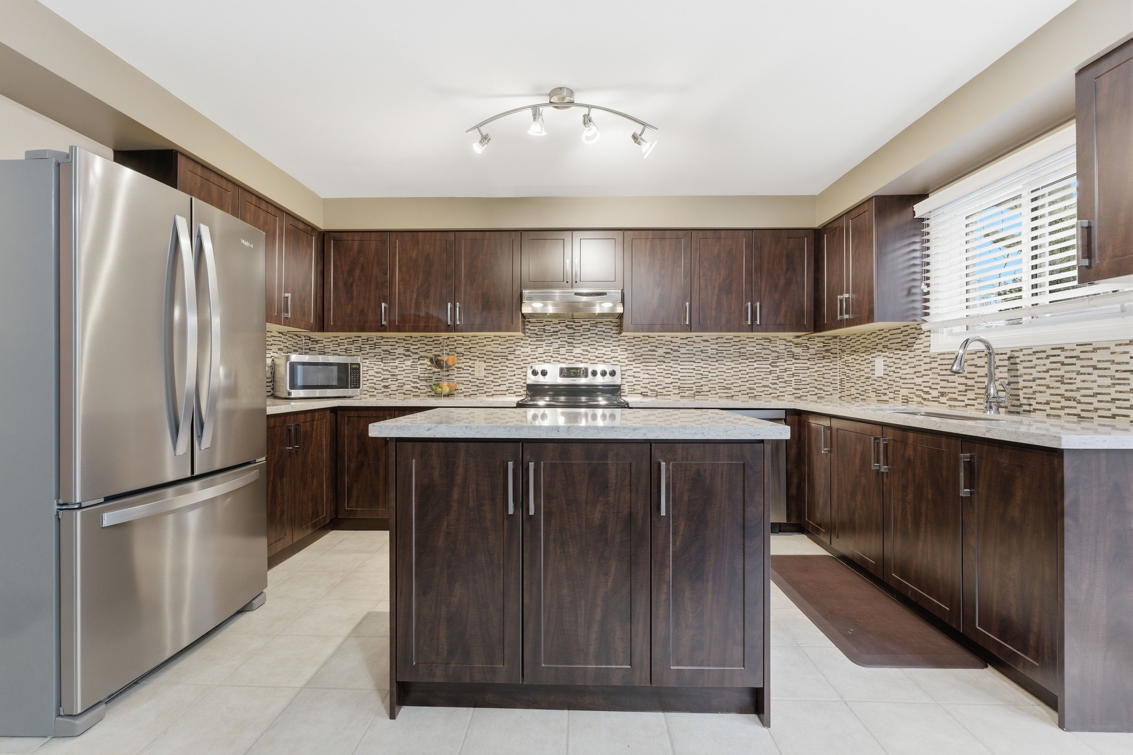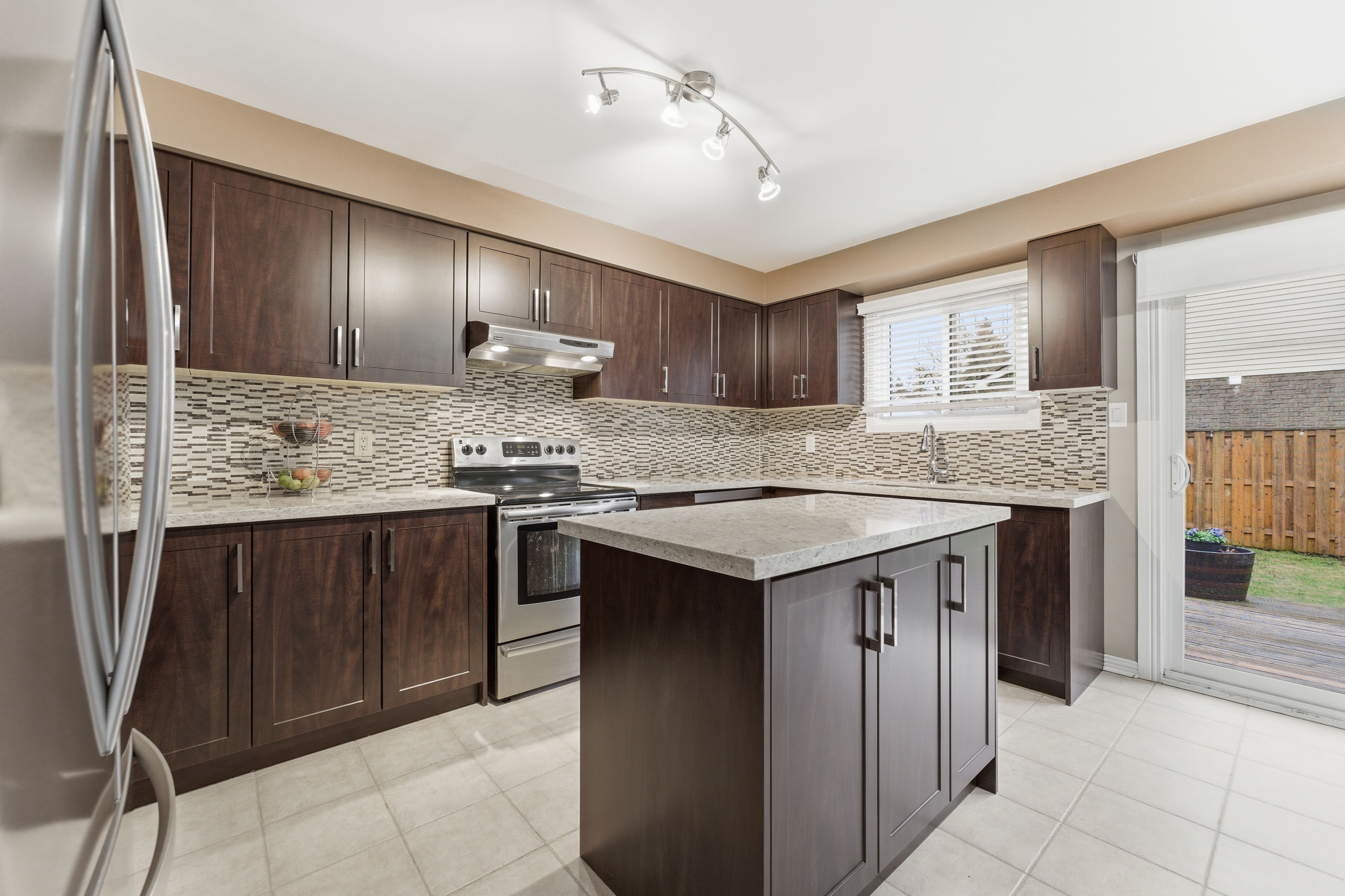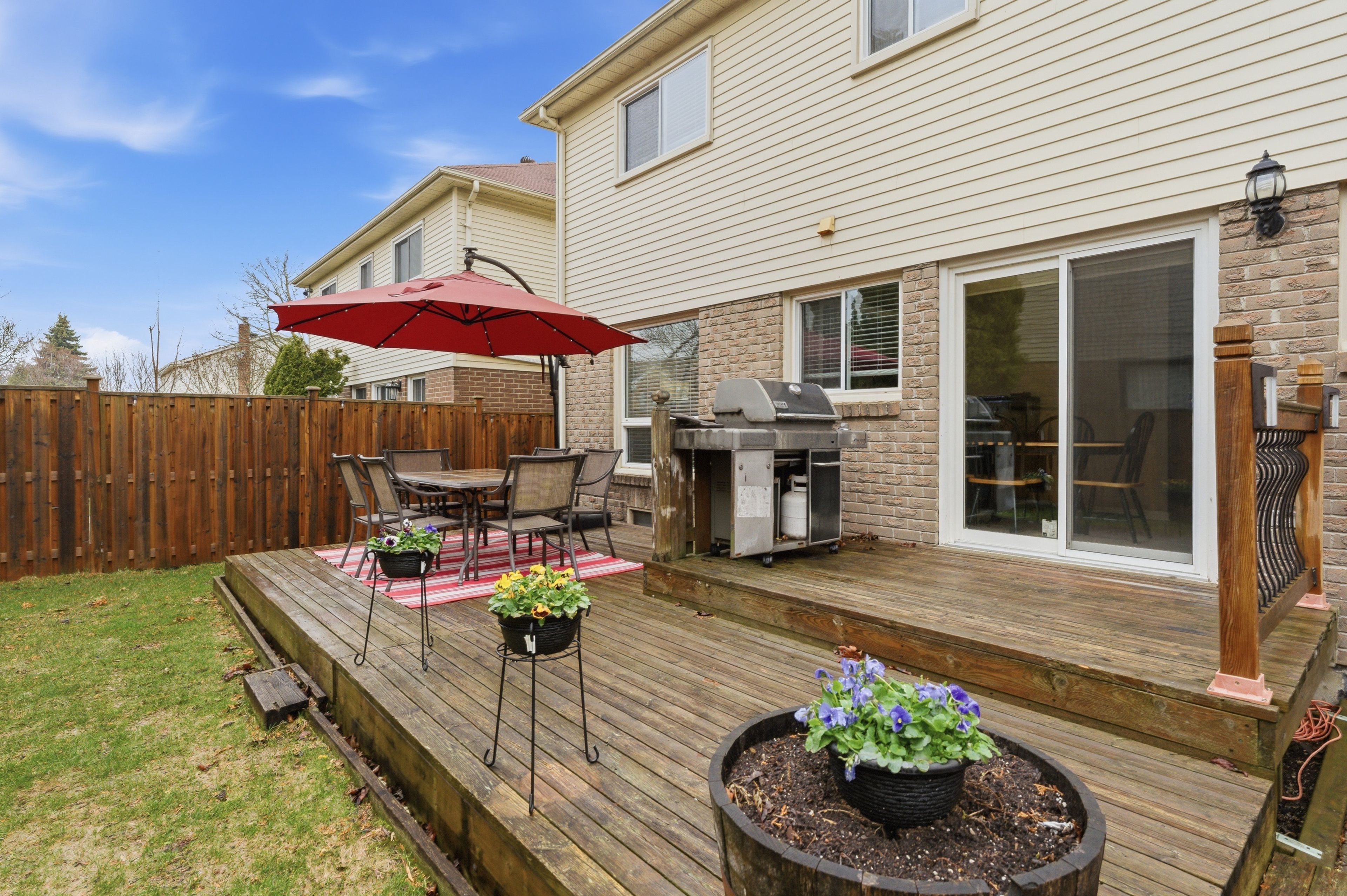 • Renovated kitchen with a walkout deck for outdoor dining.