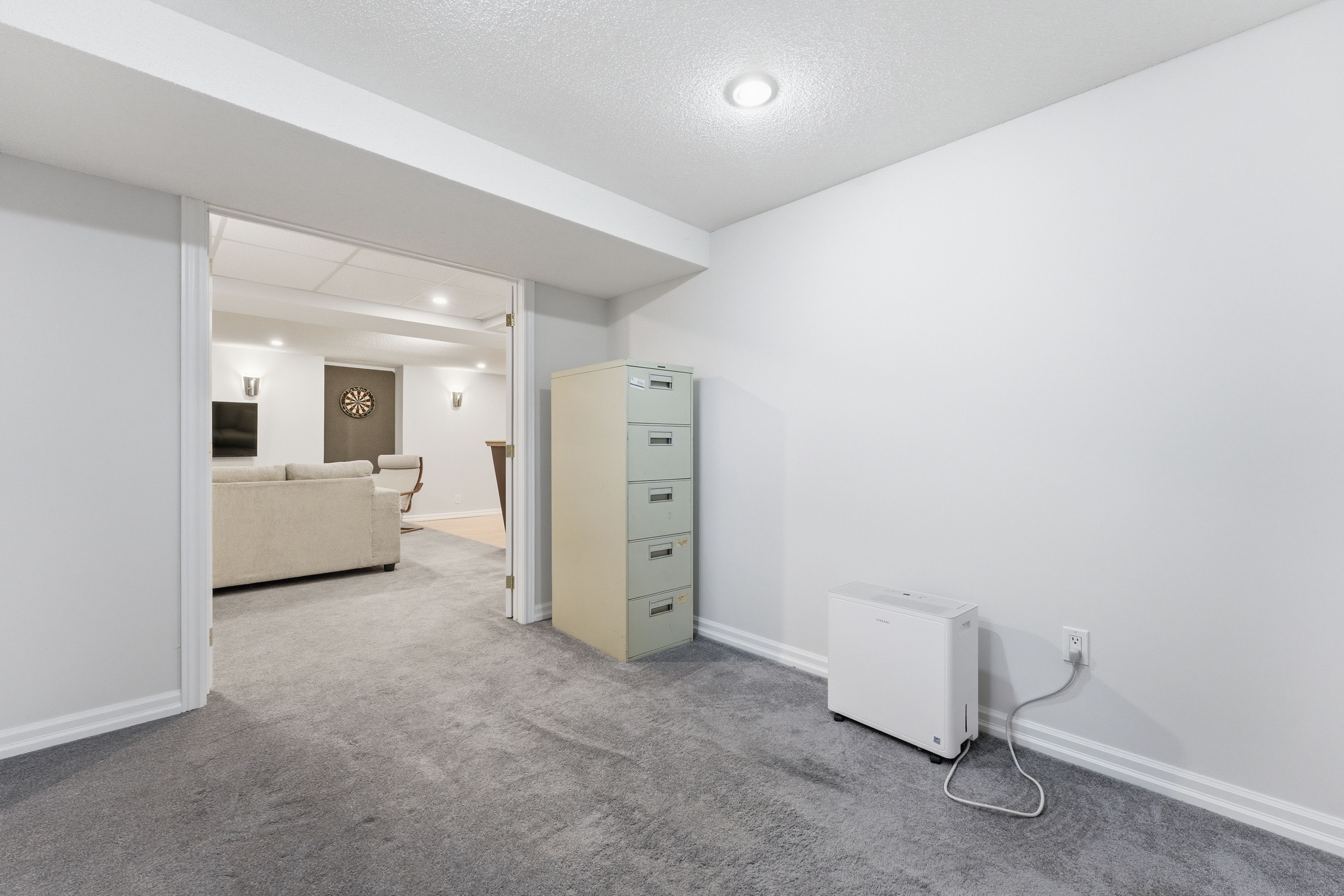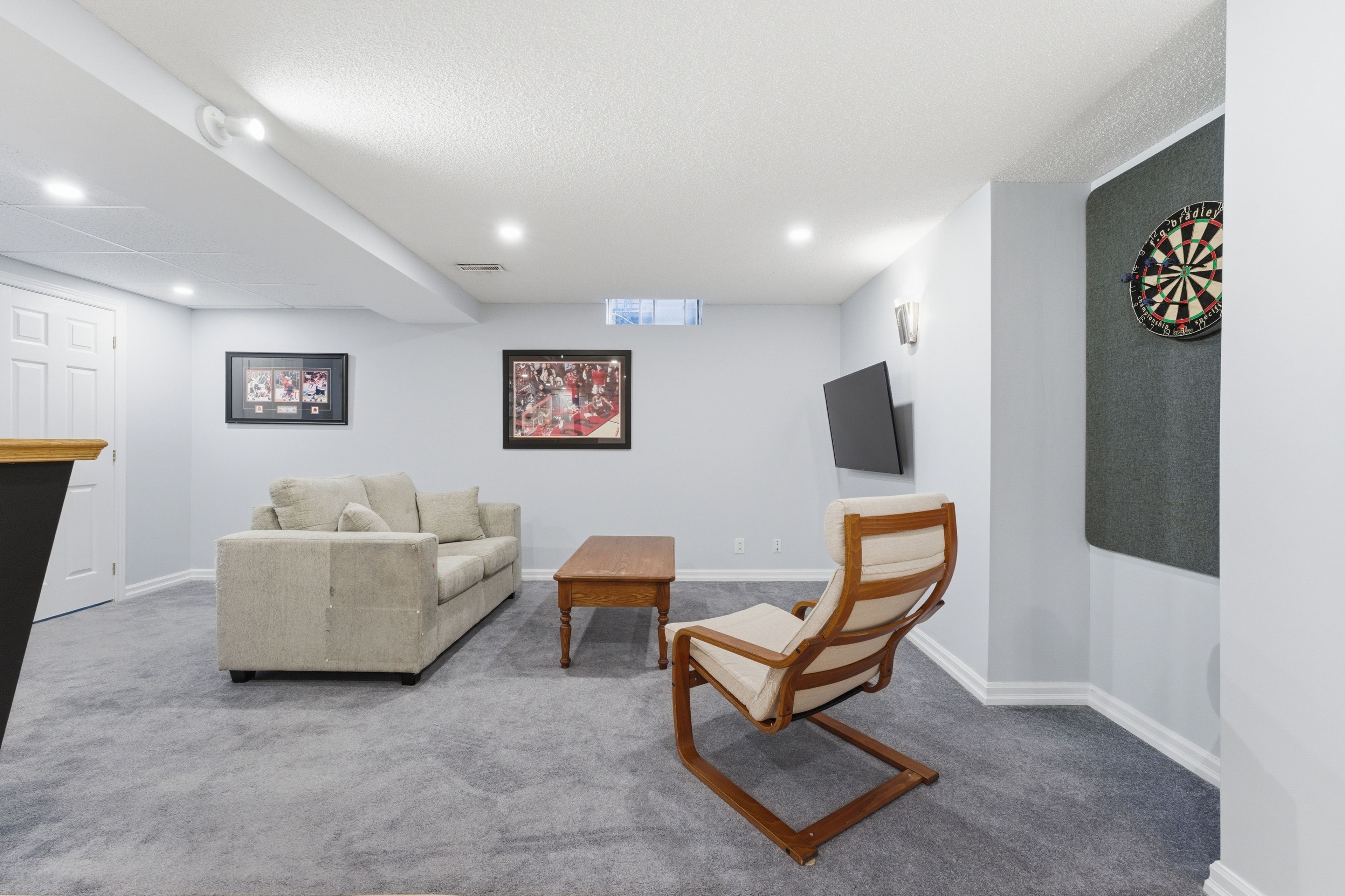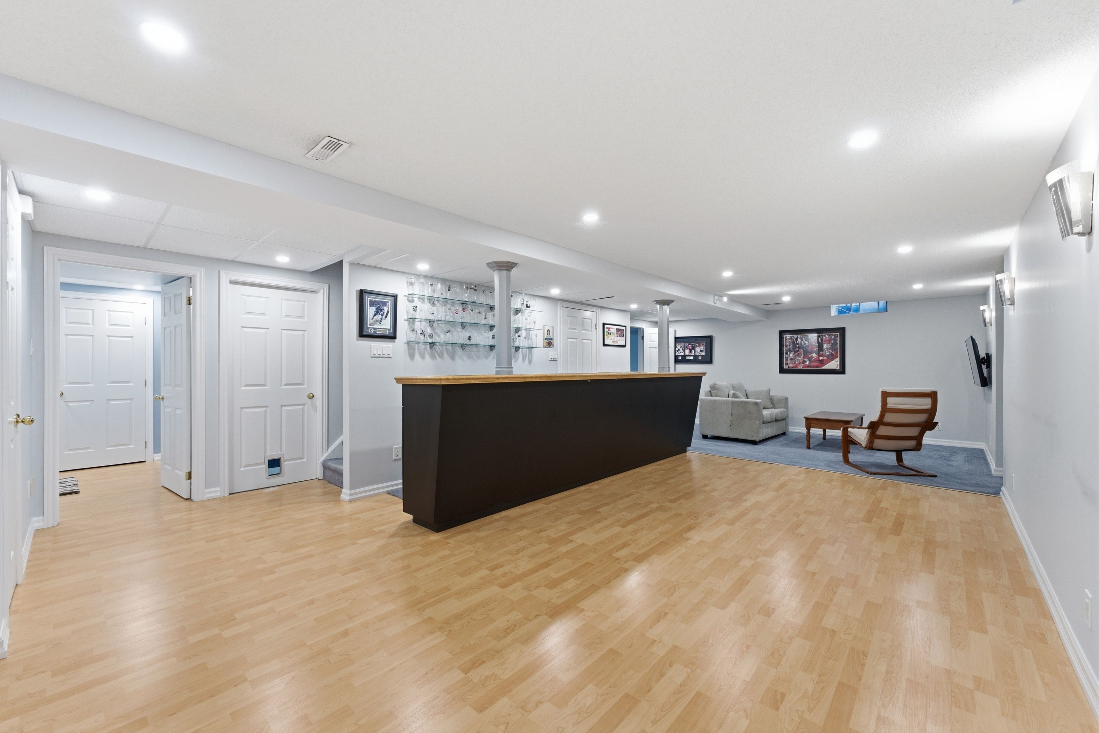 • Finished basement with recreation room, office, and dry bar.