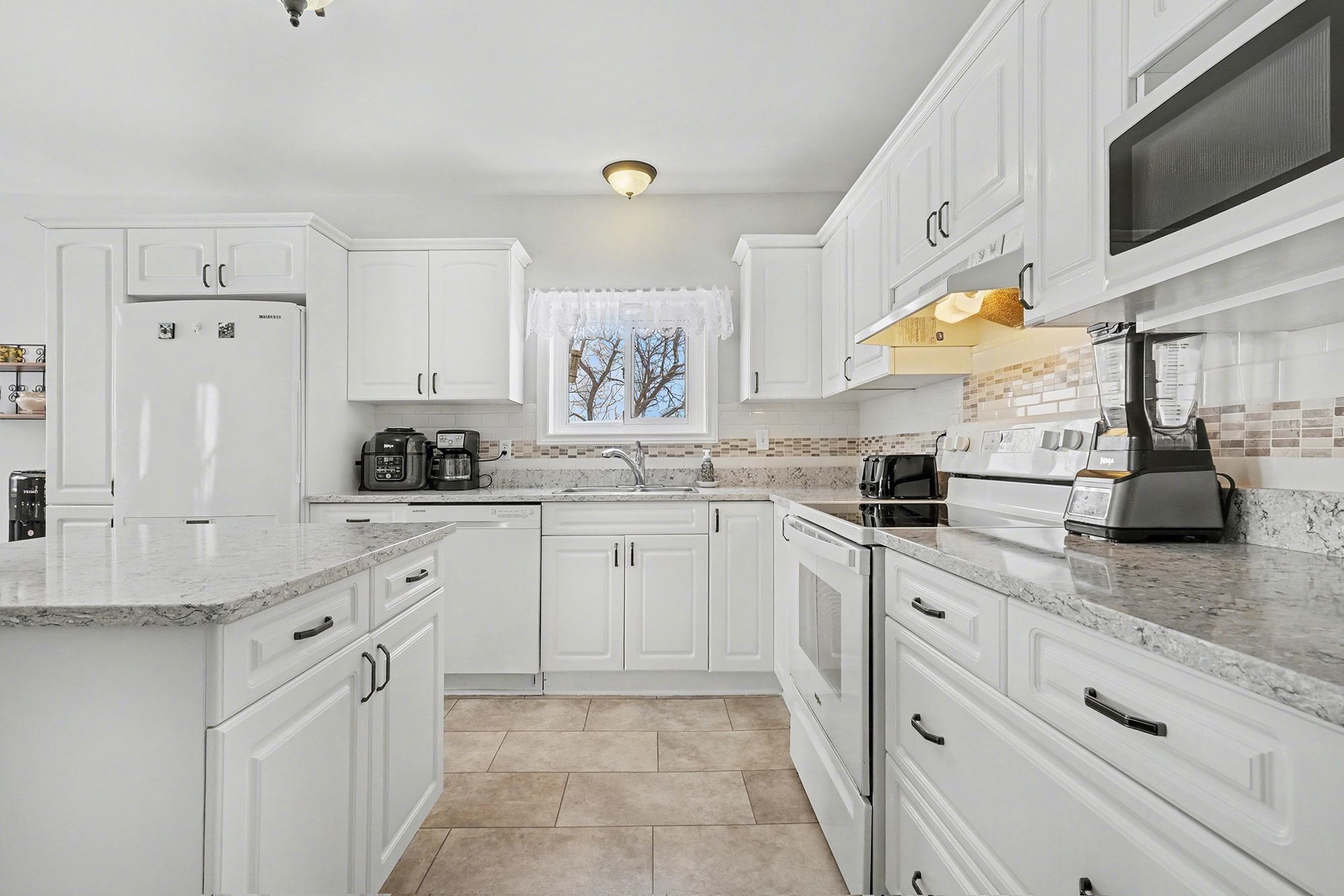 • Spacious kitchen features granite countertops, an island, and ample natural light.