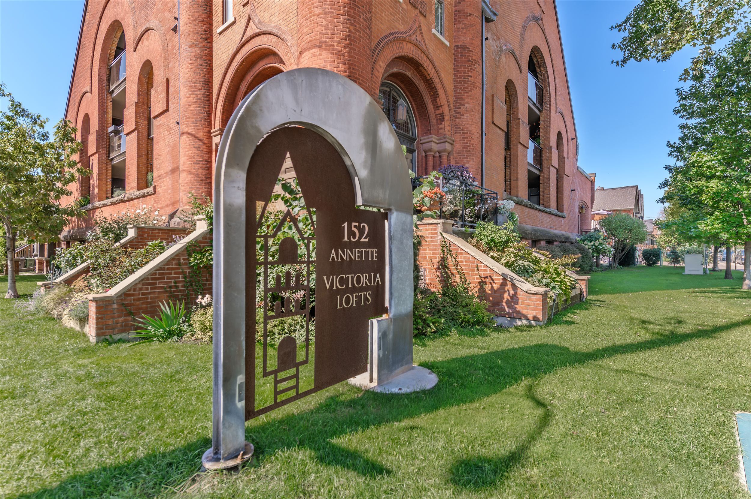 Award winning victoria lofts transformed a 19th century church and schoolhouse (formerly the victoria royce presbyterian church) into one of our city's most desired addresses at 152 annette while maintaining it's original heritage architecture and integrity. Sought after yet rarely offered, this 825 sf 1 bedroom + den features soaring ceilings of more than 10' throughout the principal living areas, large windows with lots of light and exposed duct work in an open concept hard loft with an 153 sf terrace ideal for a quiet city escape. Stainless steel appliances and a generous kitchen island afford lots of space for prepping your next great meal. As well, the terrace features a gas line hookup for bbq and summer dining. The grounds are well maintained with lush landscaping. Updates include new flooring and appliances. A block away, the junction neighbourhood offers a one stop destination for groceries, dining, antiques, clothing and much more. With highlights such as the sweet potato grocery store, botham's restaurant, coal miner's daughter womenswear and mrs. Huizinga's antiques. A short walk south takes you to high park, toronto's largest park with tennis courts, pools and the famous blooming cherry blossoms each spring. Easy access to transit and a near perfect walk score. This is a hidden gem perfect for the discerning eye that holds value well beyond it's price.