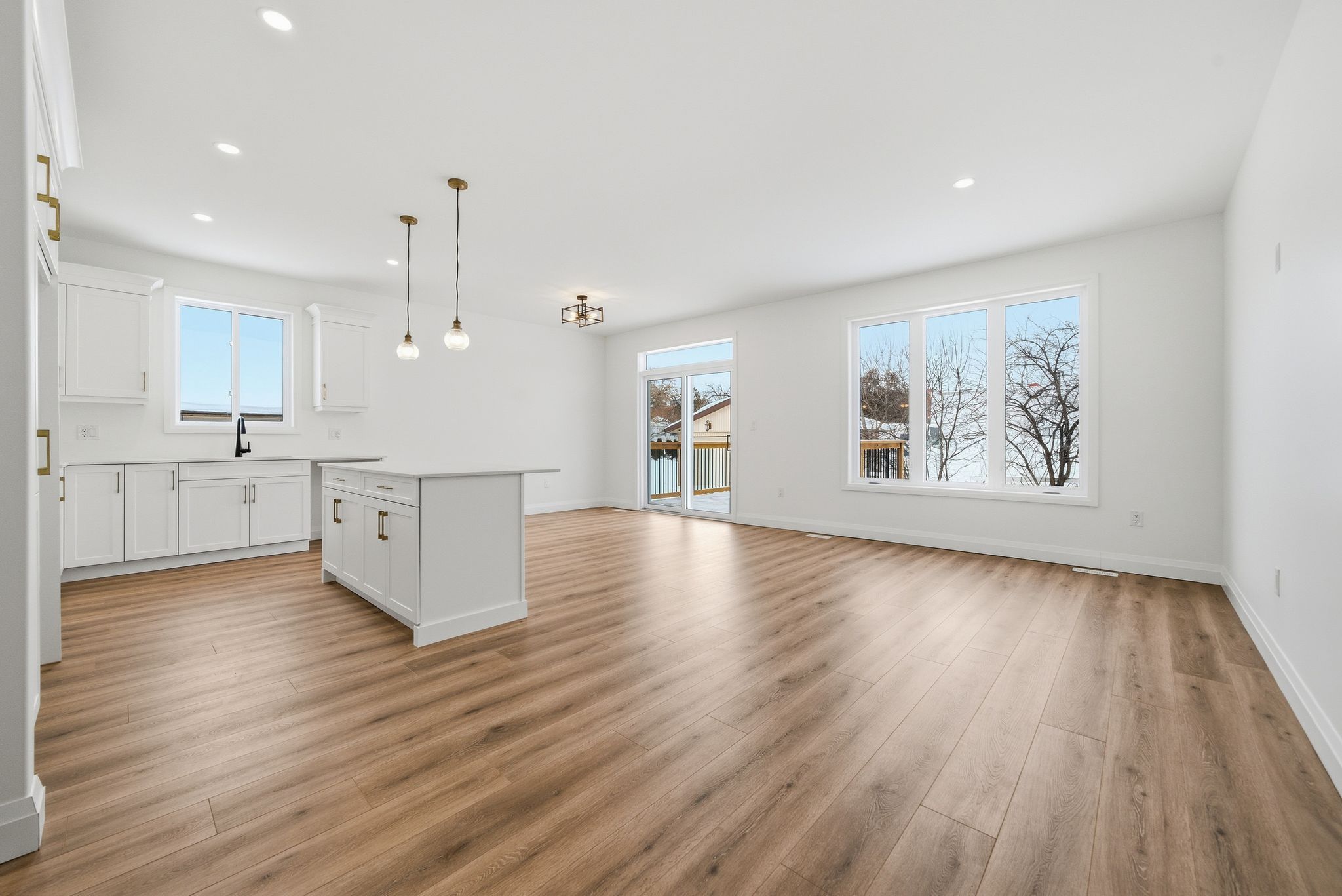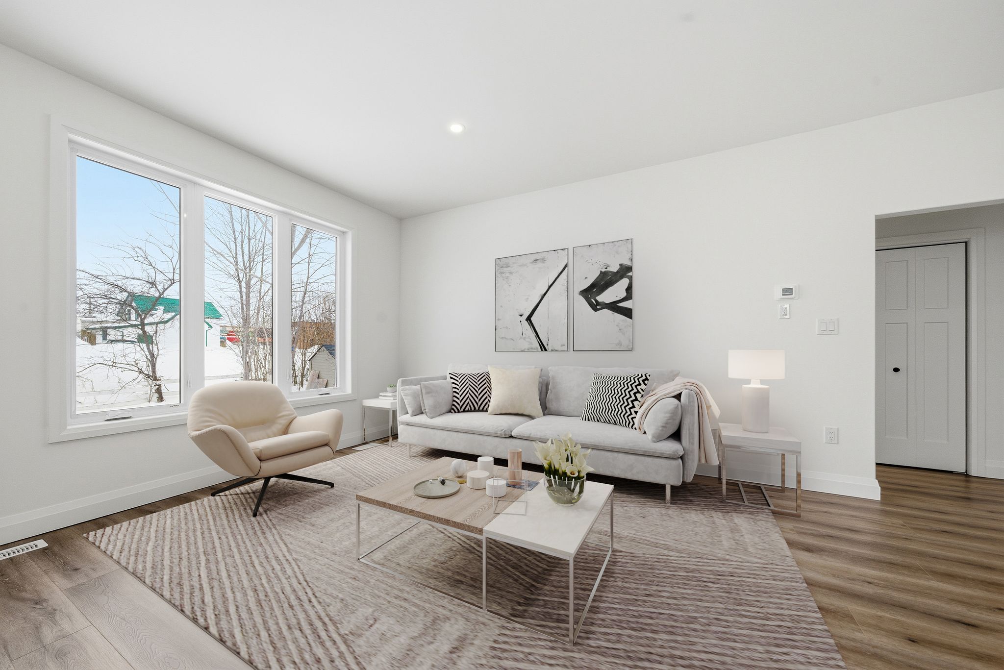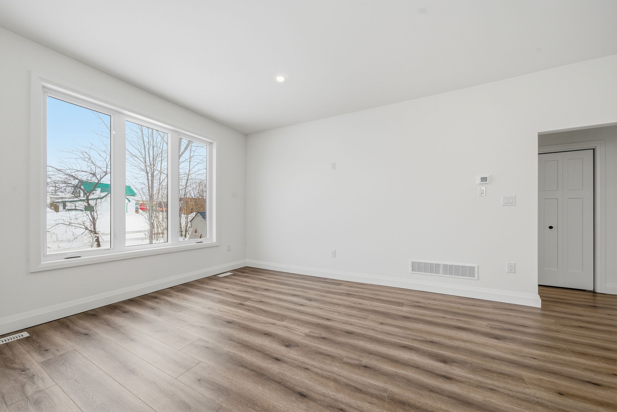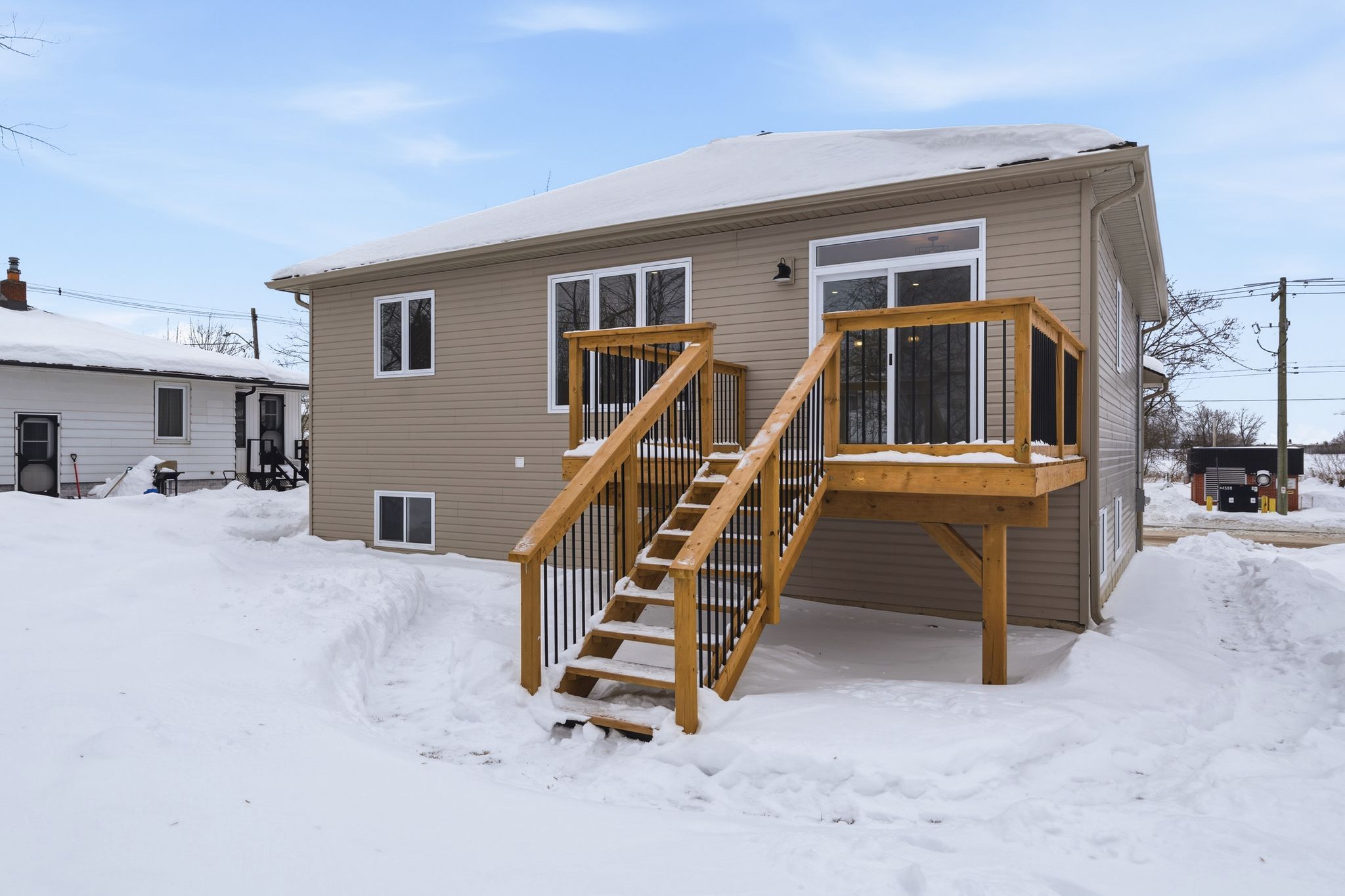 Situated in the heart of trenton within great walking distance to restaurants, shopping & centennial park offering children's play structure, baseball & soccer fields, open green space to roam & paved waterfront walking trails along the beautiful bay of quinte. Fardun group presents this tastefully finished brand new home with tarion warranty, available for immediate occupancy if desired. Convenient double drive to the front covered porch into the spacious foyer with 15 ft ceiling or enter via the attached 261 sq ft garage. Oak staircase & railing invites you to this bright open plan. Timeless finishing selections here with 9 ft ceilings & neutral durable laminate flooring throughout. Classic shaker style kitchen cabinets in natural white with popular dekton countertops, deep granite undermount sink & detached entertaining island overlooking the sun filled dining & pot lit living area through the double sliding doors with transom feature & triple elongated windows. The large primary bedroom is positioned to the rear with generously sized walk-in closet. This main level also provides a second bedroom, full bath & large linen closet. Additional square feet available in the full unspoiled basement with bathroom rough in & three large windows allowing flexibility for your future layout. Need a finished basement now? The builder is open to discussing! Bonus, this beauty comes with a 12x12 deck & stairs to the already established yard. 152 bay street combines the perfect blend of easy new build living & modern design. You're invited to view the many perks this home has to offer at the open house, saturday february 14th 12-1:30pm.