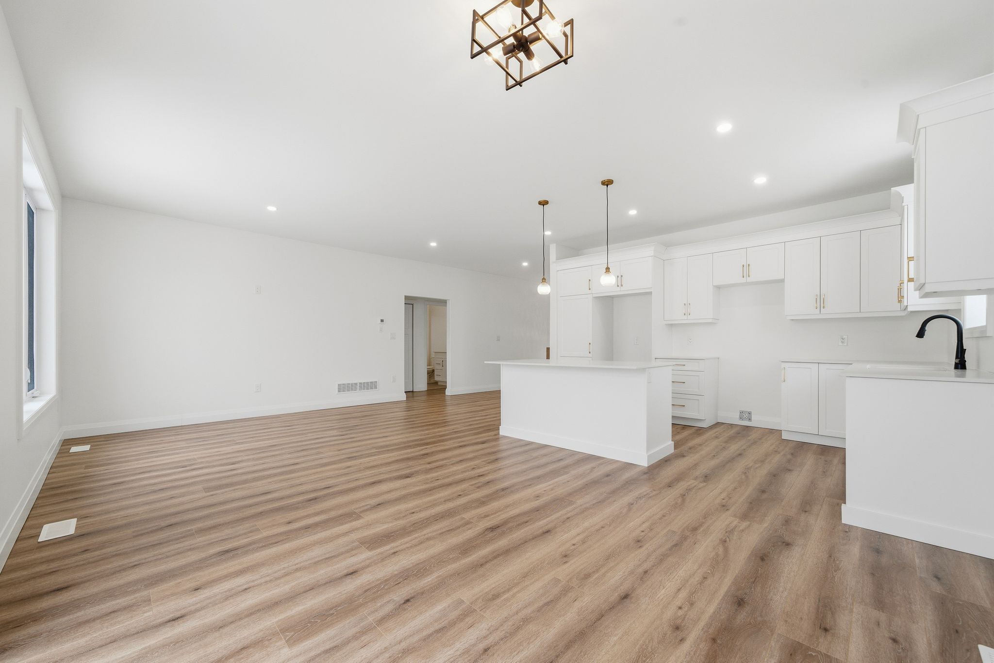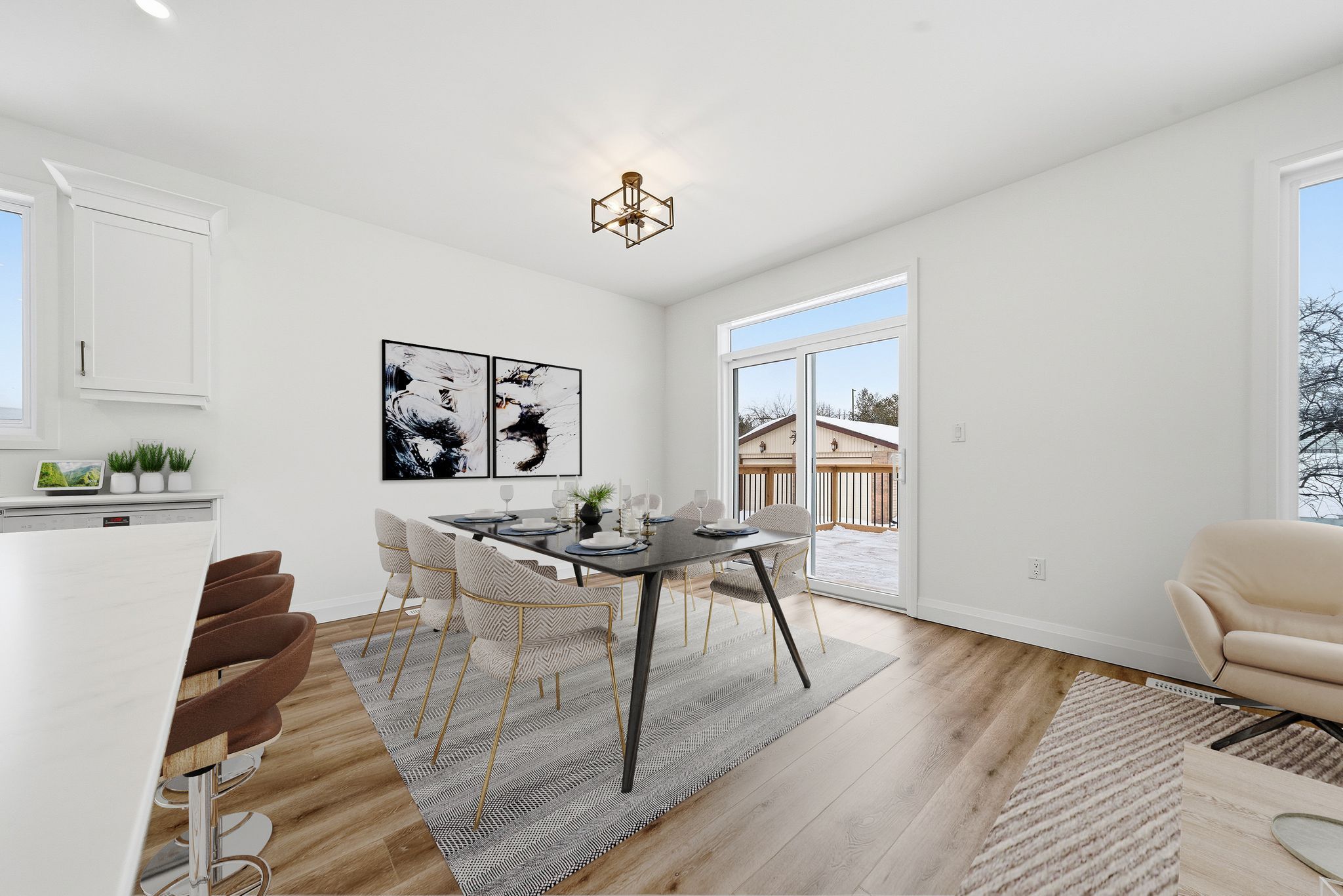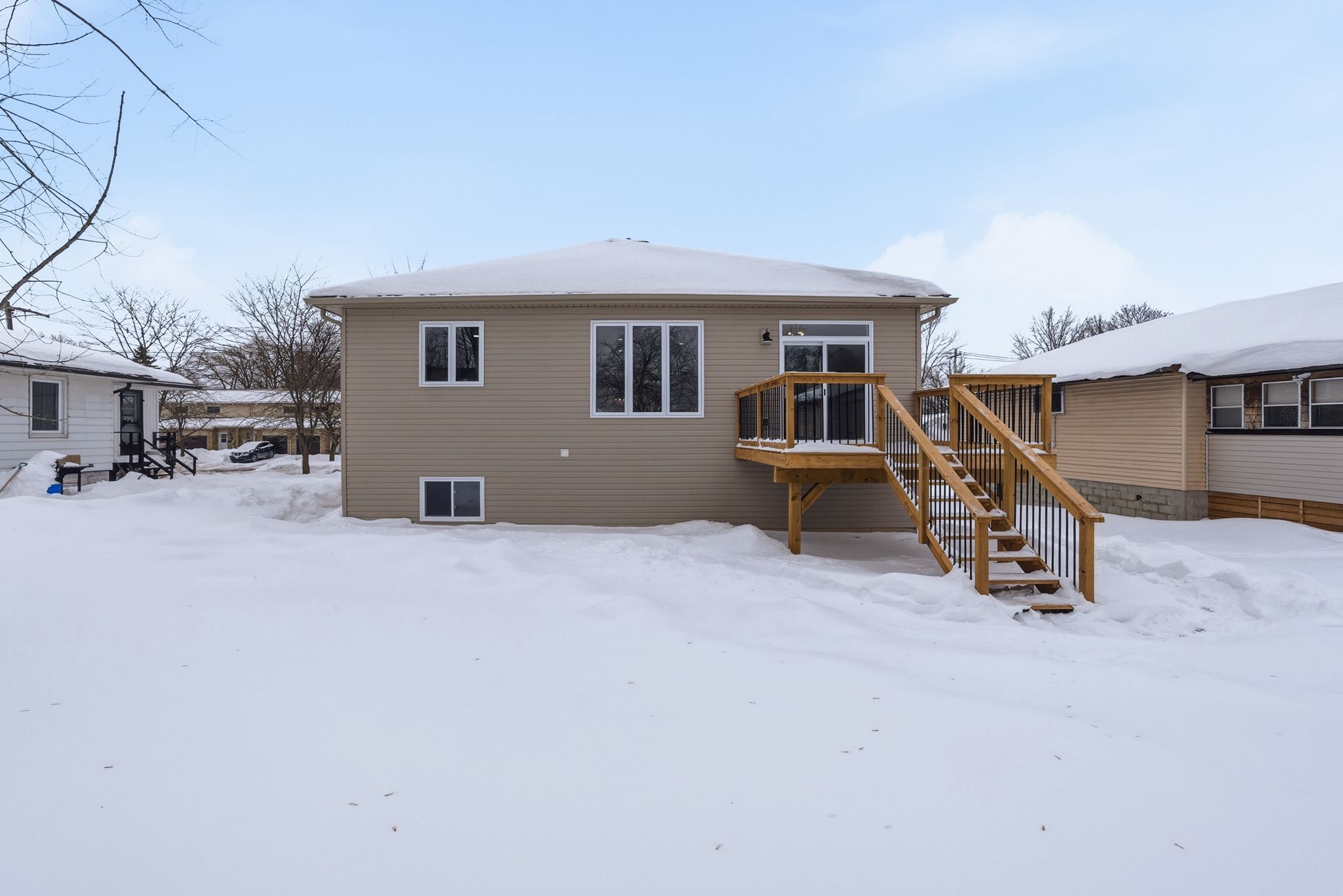 Situated in the heart of trenton within great walking distance to restaurants, shopping & centennial park offering children's play structure, baseball & soccer fields, open green space to roam & paved waterfront walking trails along the beautiful bay of quinte. Fardun group presents this tastefully finished brand new home with tarion warranty, available for immediate occupancy if desired. Convenient double drive to the front covered porch into the spacious foyer with 15 ft ceiling or enter via the attached 261 sq ft garage. Oak staircase & railing invites you to this bright open plan. Timeless finishing selections here with 9 ft ceilings & neutral durable laminate flooring throughout. Classic shaker style kitchen cabinets in natural white with popular dekton countertops, deep granite undermount sink & detached entertaining island overlooking the sun filled dining & pot lit living area through the double sliding doors with transom feature & triple elongated windows. The large primary bedroom is positioned to the rear with generously sized walk-in closet. This main level also provides a second bedroom, full bath & large linen closet. Additional square feet available in the full unspoiled basement with bathroom rough in & three large windows allowing flexibility for your future layout. Need a finished basement now? The builder is open to discussing! Bonus, this beauty comes with a 12x12 deck & stairs to the already established yard. 152 bay street combines the perfect blend of easy new build living & modern design. You're invited to view the many perks this home has to offer at the open house, saturday february 14th 12-1:30pm.