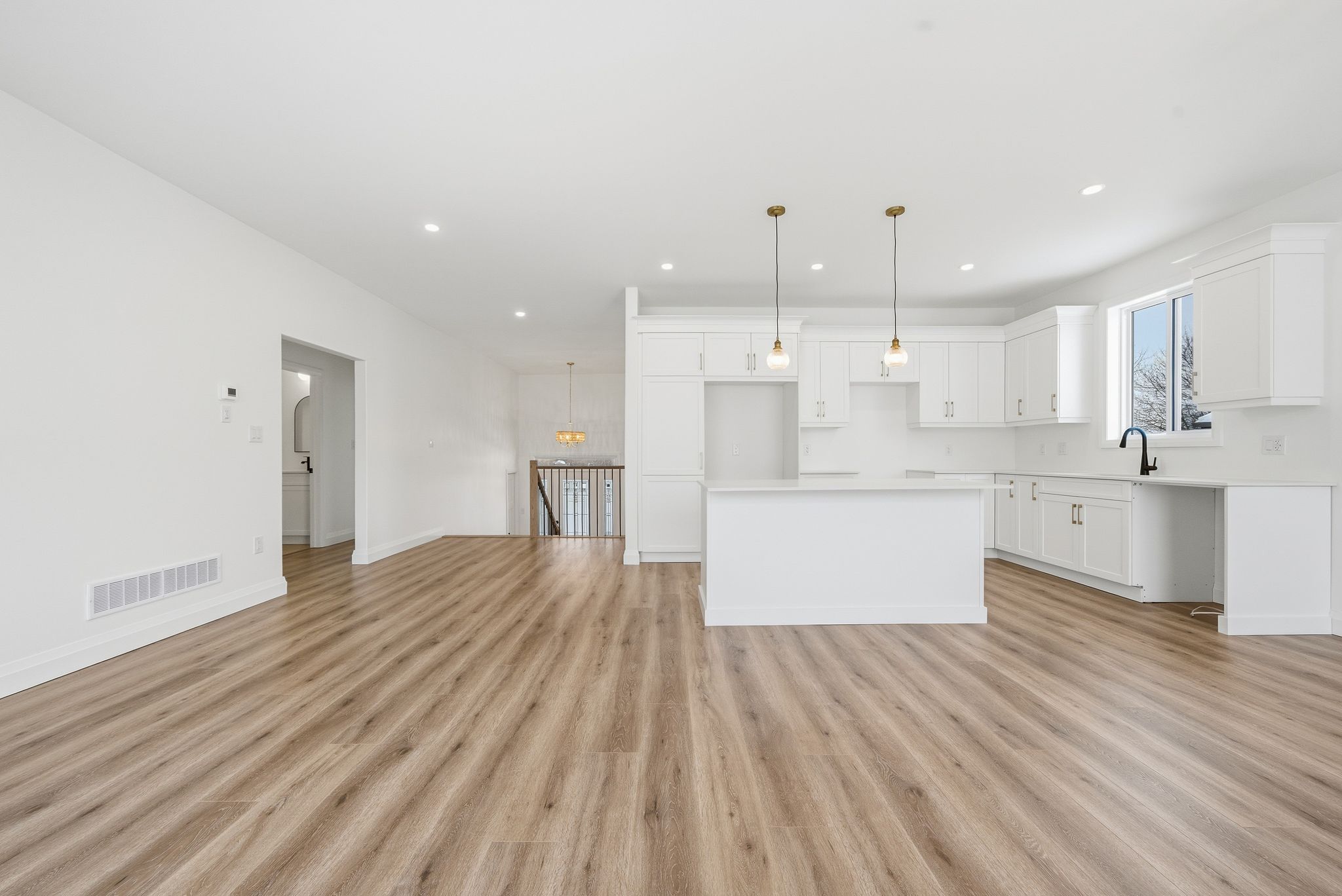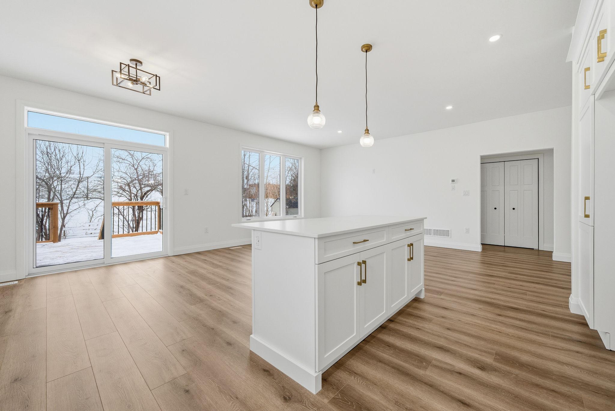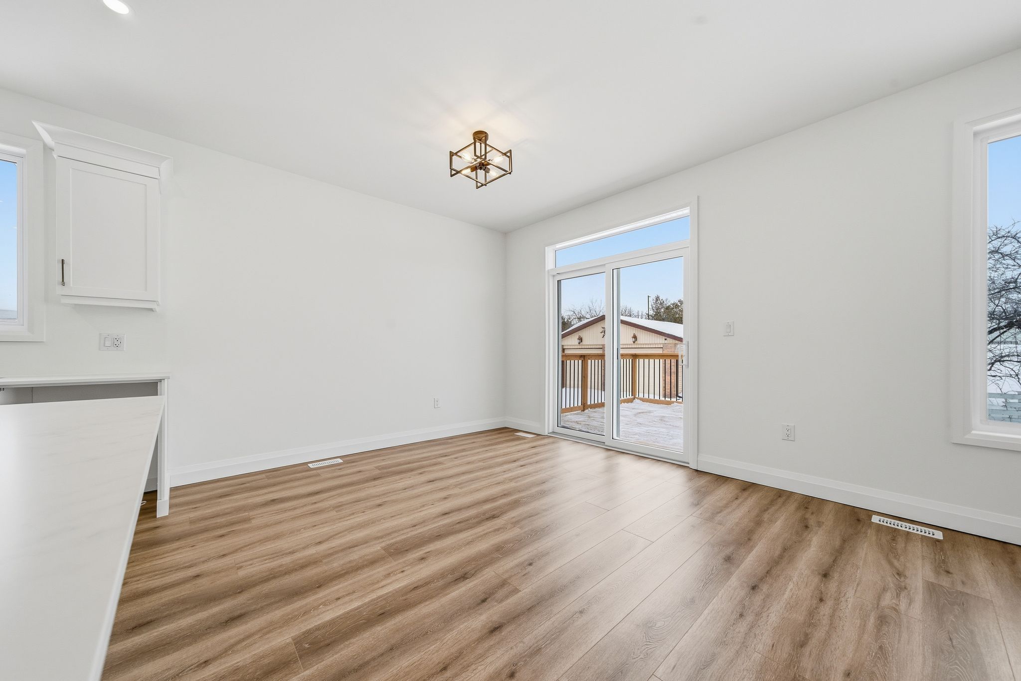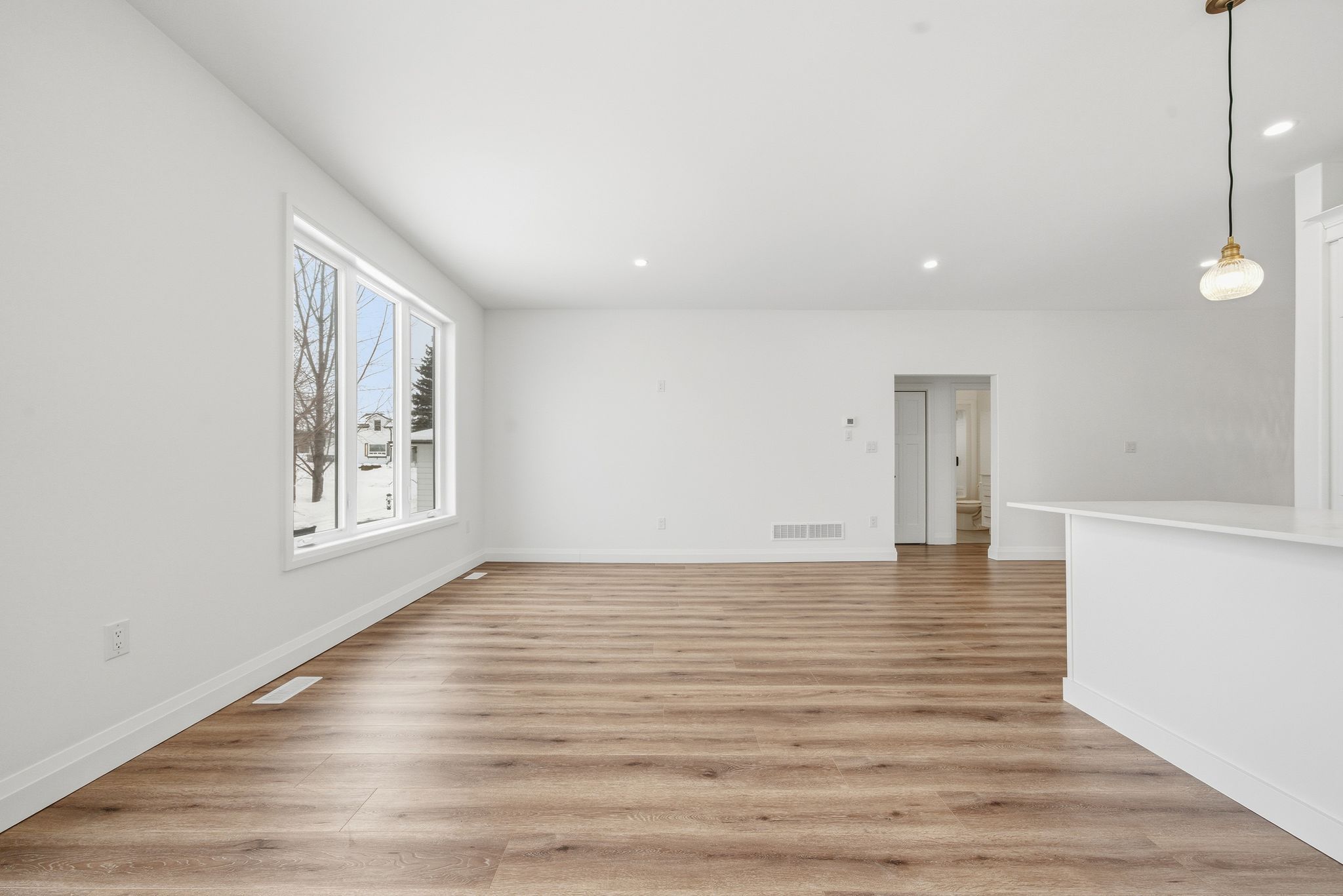 Situated in the heart of trenton within great walking distance to restaurants, shopping & centennial park offering children's play structure, baseball & soccer fields, open green space to roam & paved waterfront walking trails along the beautiful bay of quinte. Fardun group presents this tastefully finished brand new home with tarion warranty, available for immediate occupancy if desired. Convenient double drive to the front covered porch into the spacious foyer with 15 ft ceiling or enter via the attached 261 sq ft garage. Oak staircase & railing invites you to this bright open plan. Timeless finishing selections here with 9 ft ceilings & neutral durable laminate flooring throughout. Classic shaker style kitchen cabinets in natural white with popular dekton countertops, deep granite undermount sink & detached entertaining island overlooking the sun filled dining & pot lit living area through the double sliding doors with transom feature & triple elongated windows. The large primary bedroom is positioned to the rear with generously sized walk-in closet. This main level also provides a second bedroom, full bath & large linen closet. Additional square feet available in the full unspoiled basement with bathroom rough in & three large windows allowing flexibility for your future layout. Need a finished basement now? The builder is open to discussing! Bonus, this beauty comes with a 12x12 deck & stairs to the already established yard. 152 bay street combines the perfect blend of easy new build living & modern design. You're invited to view the many perks this home has to offer at the open house, saturday february 14th 12-1:30pm.