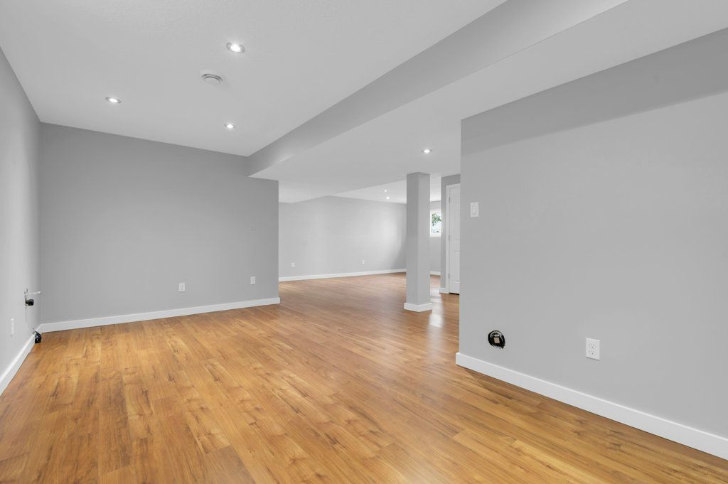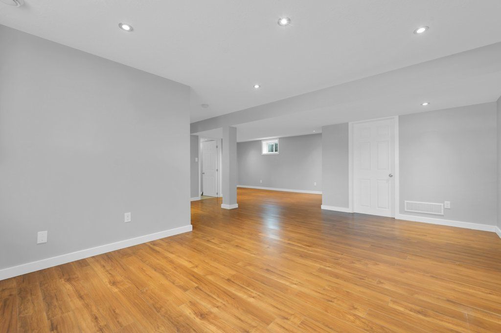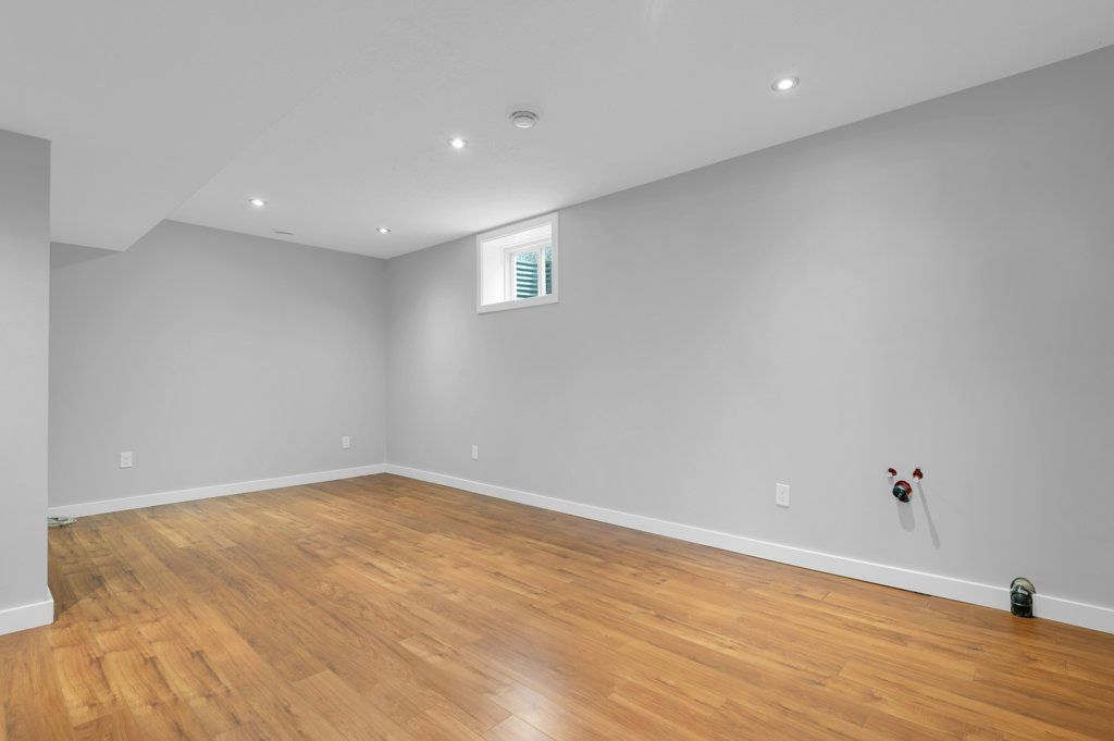 • Finished basement with plumbing ready for a kitchenette installation.