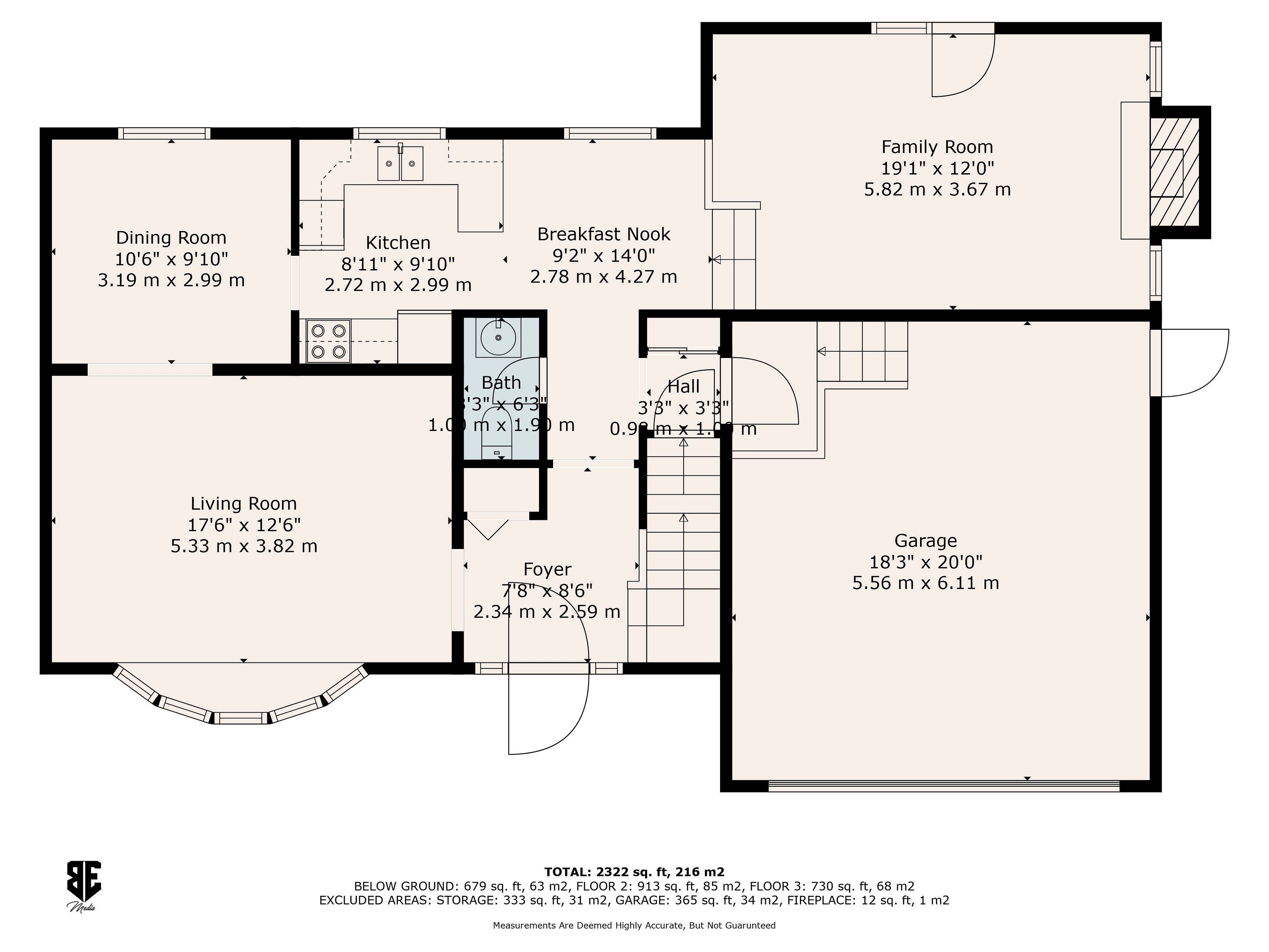 • Convenient main floor layout with kitchen, family, and living rooms.