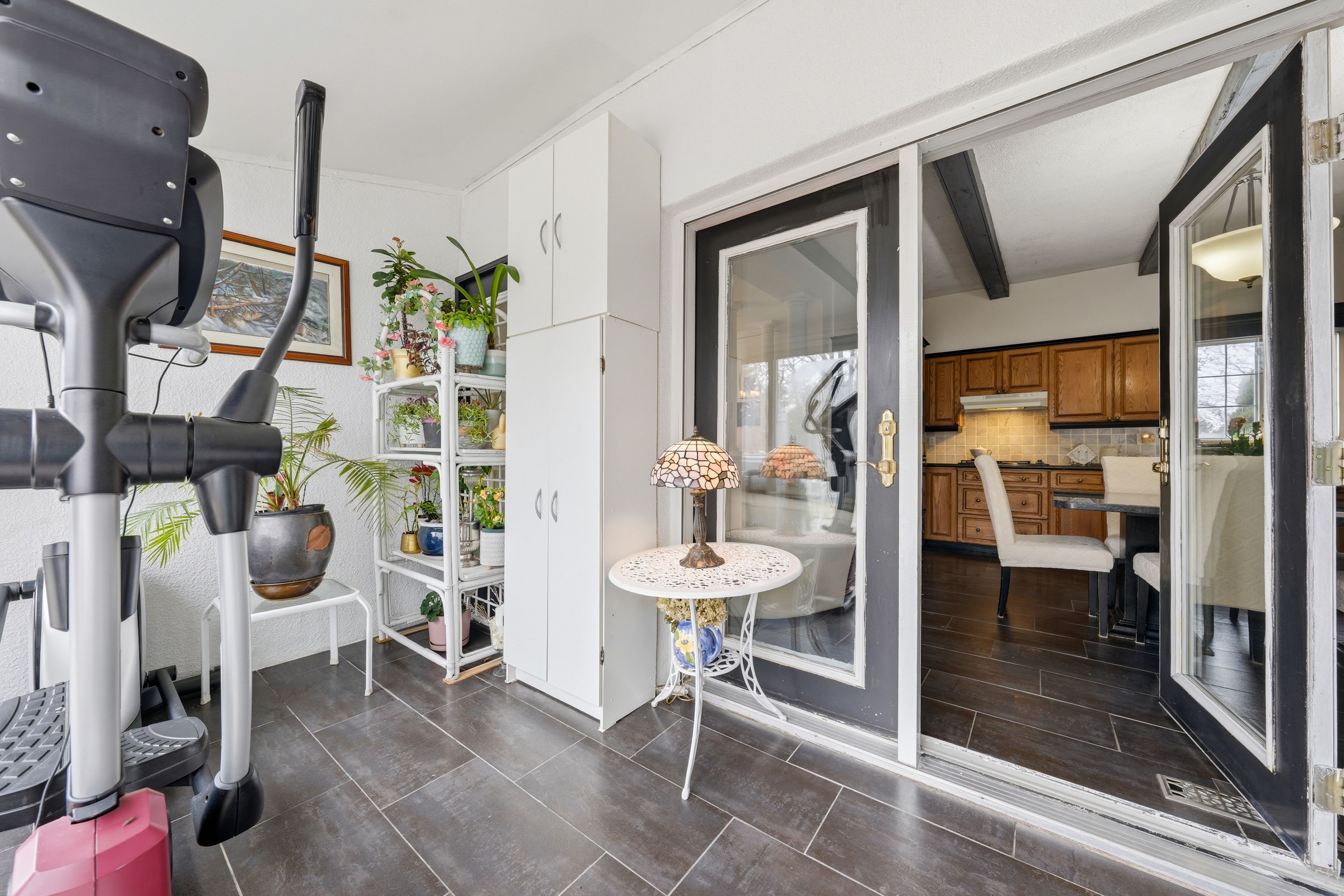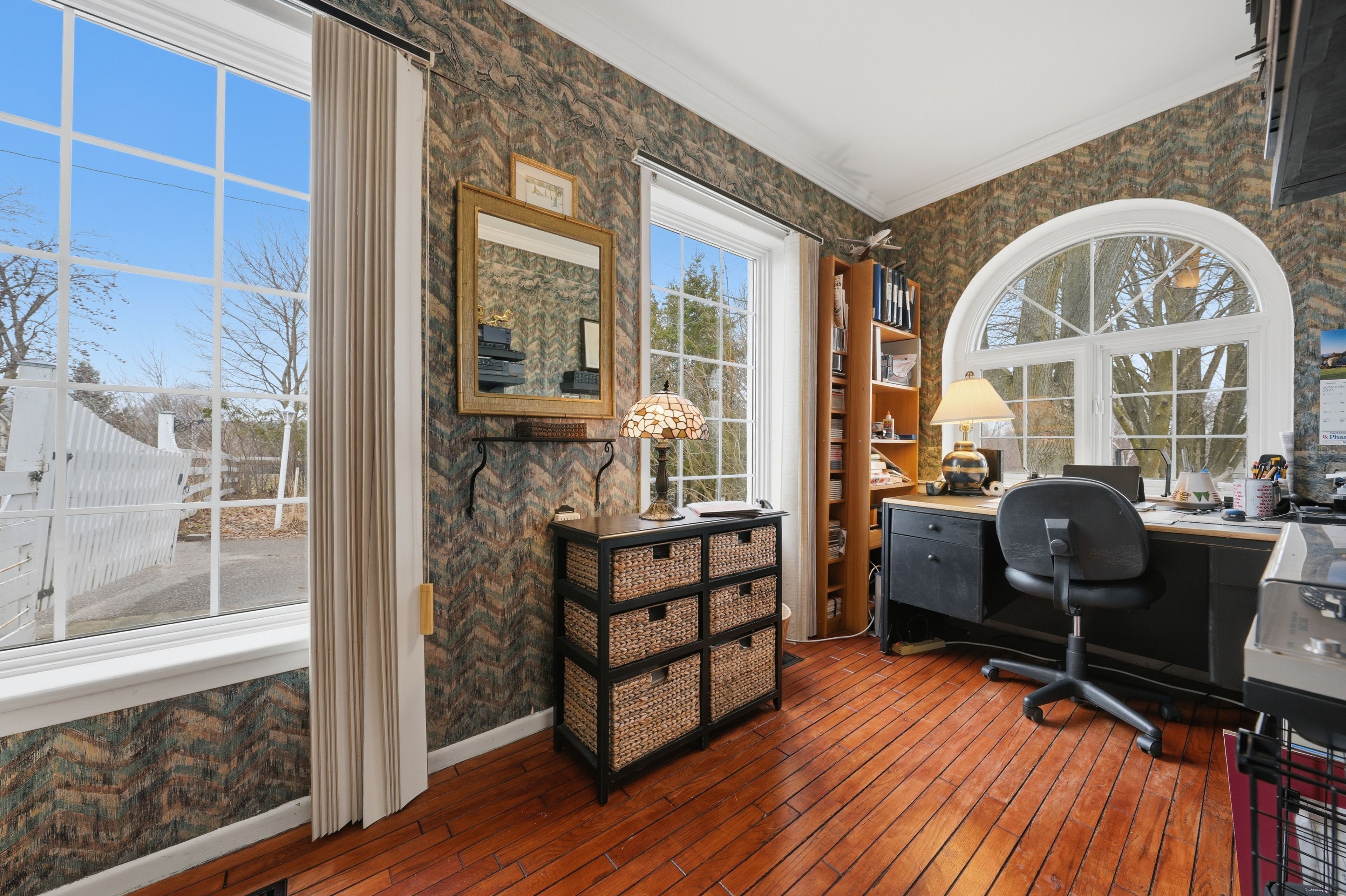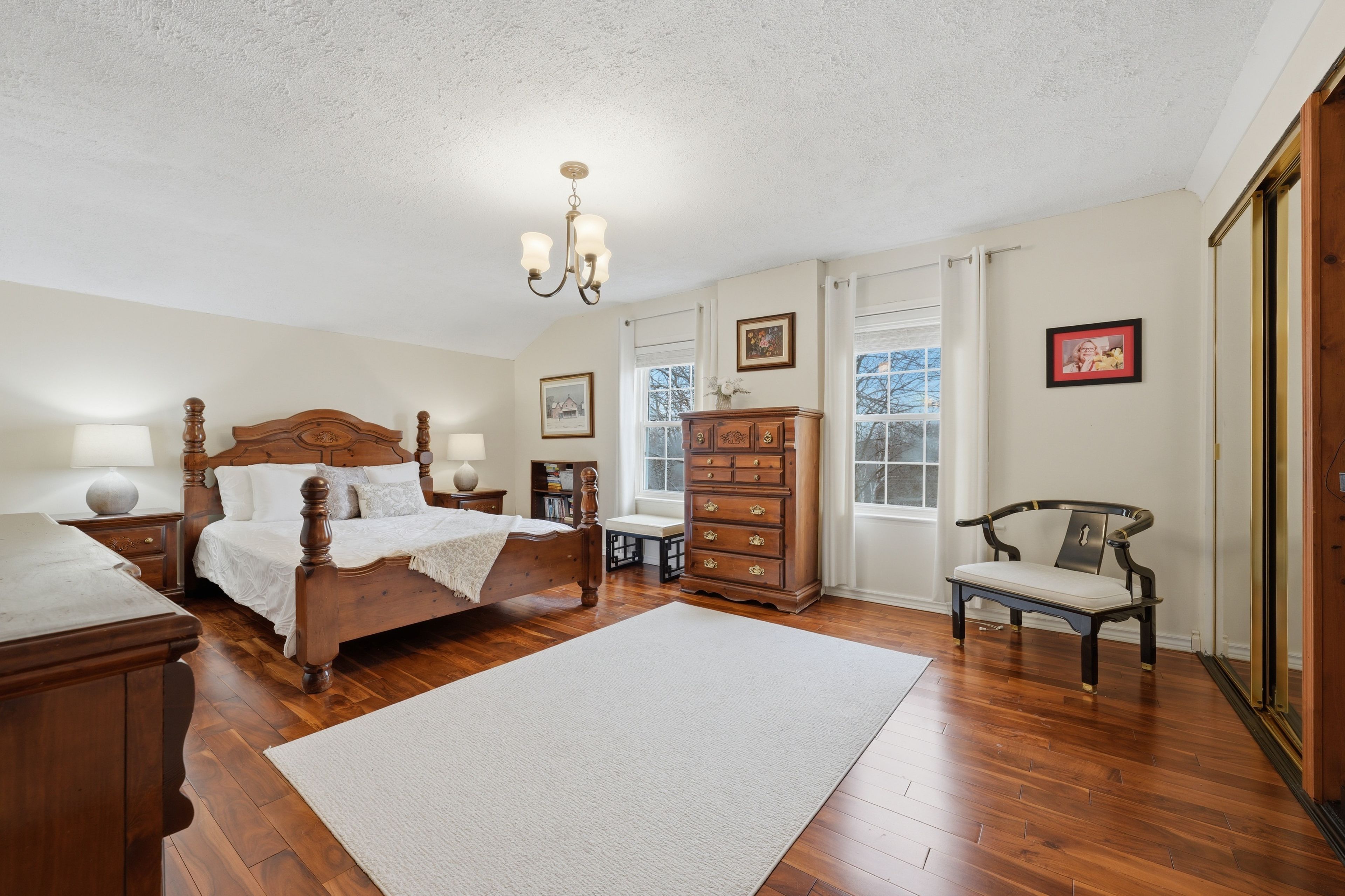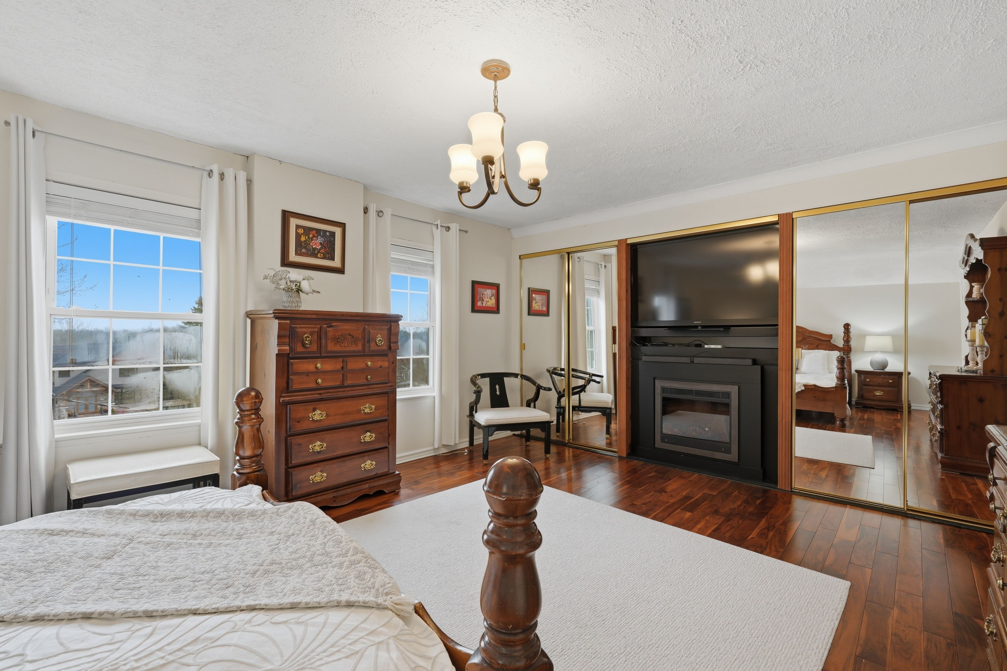 • Bright family room with hardwood flooring and open layout.