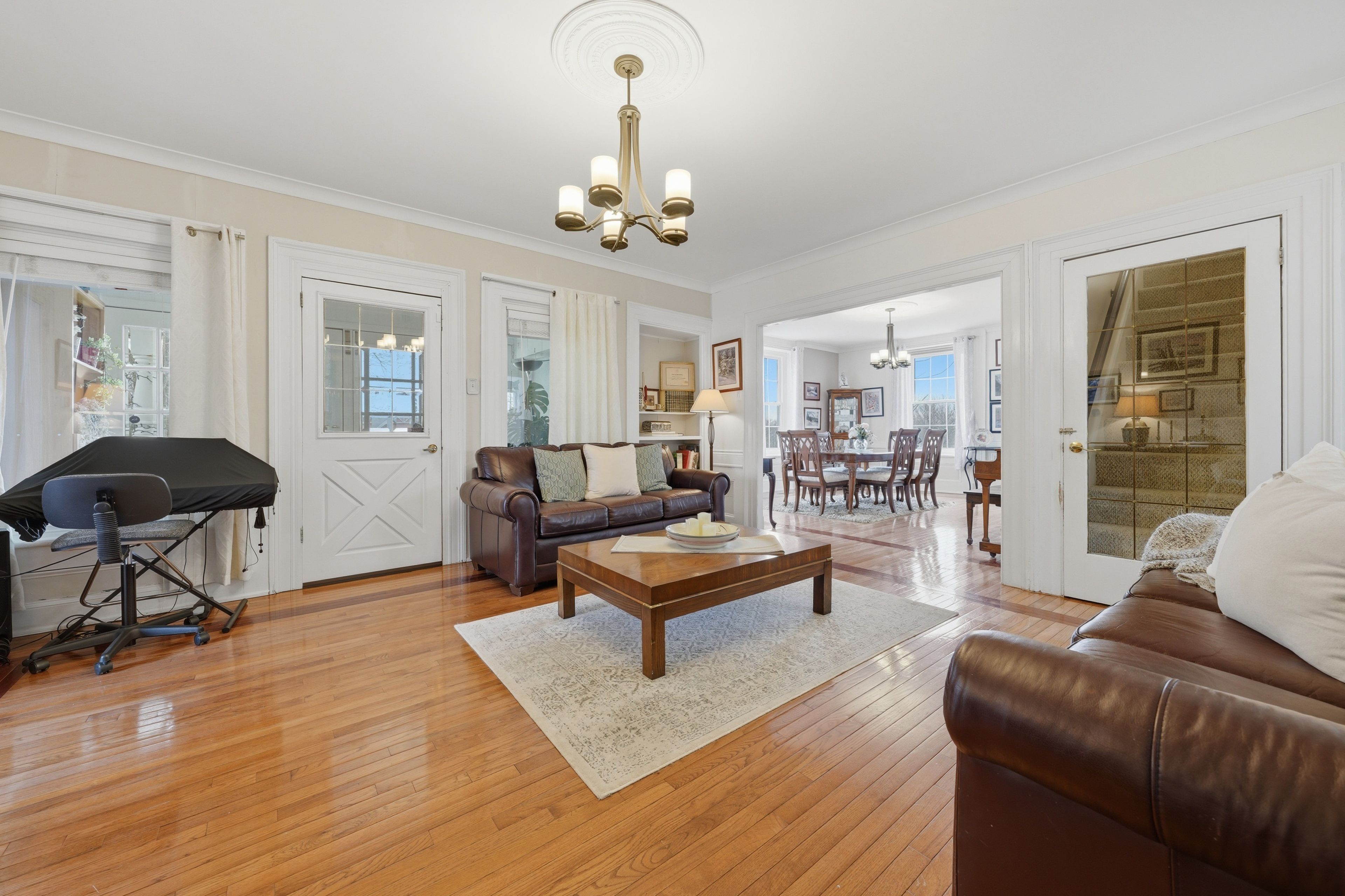 • Bright open family room features hardwood floors, crown moulding, and gas fireplace.
