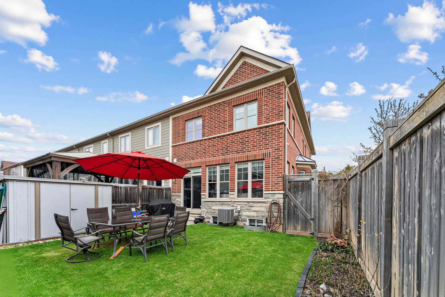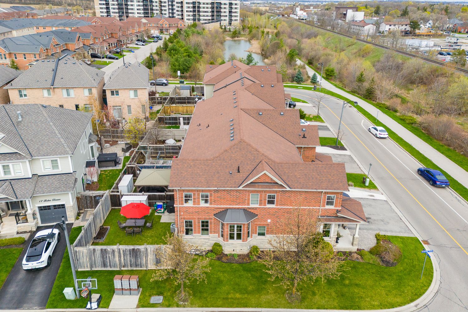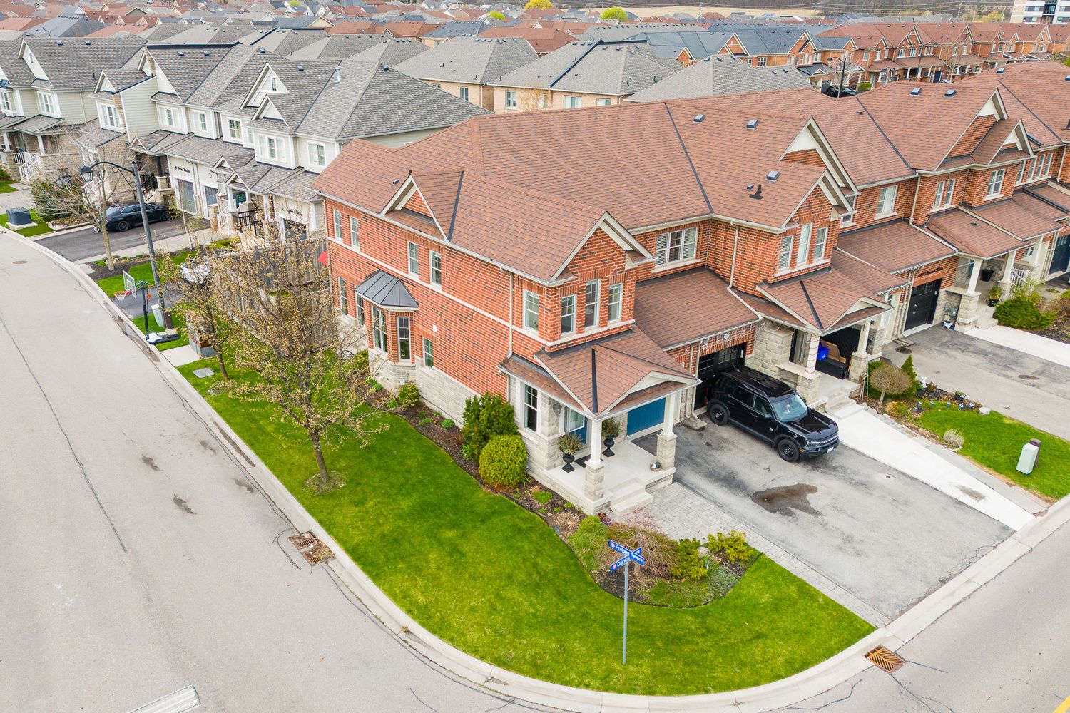 This house has the potential to brighten your mood! This beautiful corner-lot townhouse is flooded with natural sunlight from dawn to dusk thanks to wrap-around windows, offering breathtaking vistas of the majestic milton escarpment. Located in the heart of one of milton's most desirable neighborhood, this stunning home features hardwood floors in the living room and a walk-out to a large backyard. The fabulous chef's kitchen is equipped with granite countertops, a stylish backsplash, stainless steel appliances, and a large sit-up island with pot drawers. The beautifully finished basement provides a private space for recreation, featuring high-quality laminate floors and a finished bathroom with a shower. Experience a maintenance-free winter with no sidewalk to shovel. Modern convenience is at your fingertips with keyless door entry and garage door control-all managed through the telus home security app-and direct garage access from inside the house. Transit: steps to schools and major highways including the 401, 407, and the future hwy 413 construction. Amenities: close proximity to downtown milton (5 min), milton district hospital (4 min), and wilfrid laurier university (7 min). Convenience: ample visitor parking is available nearby