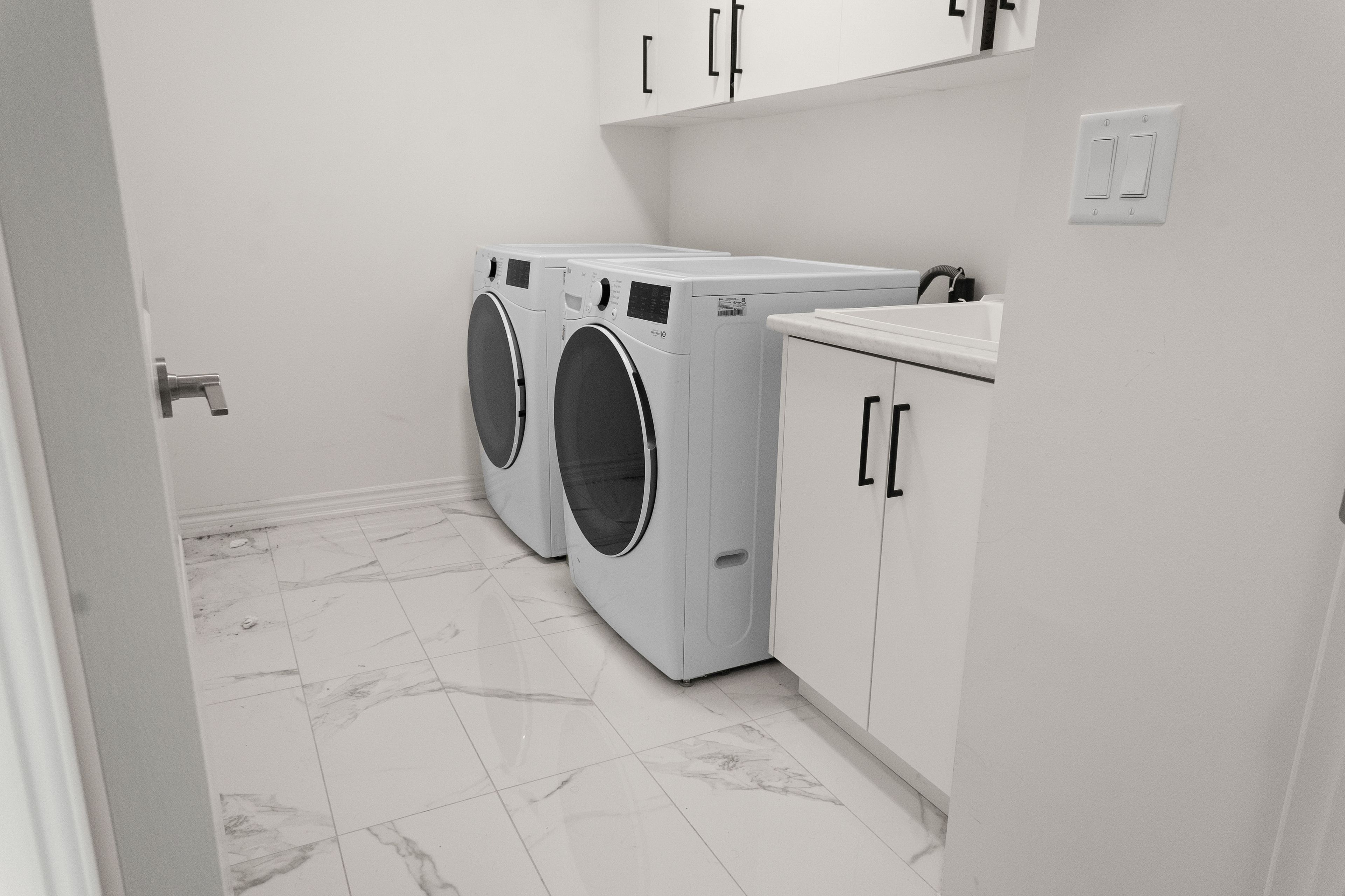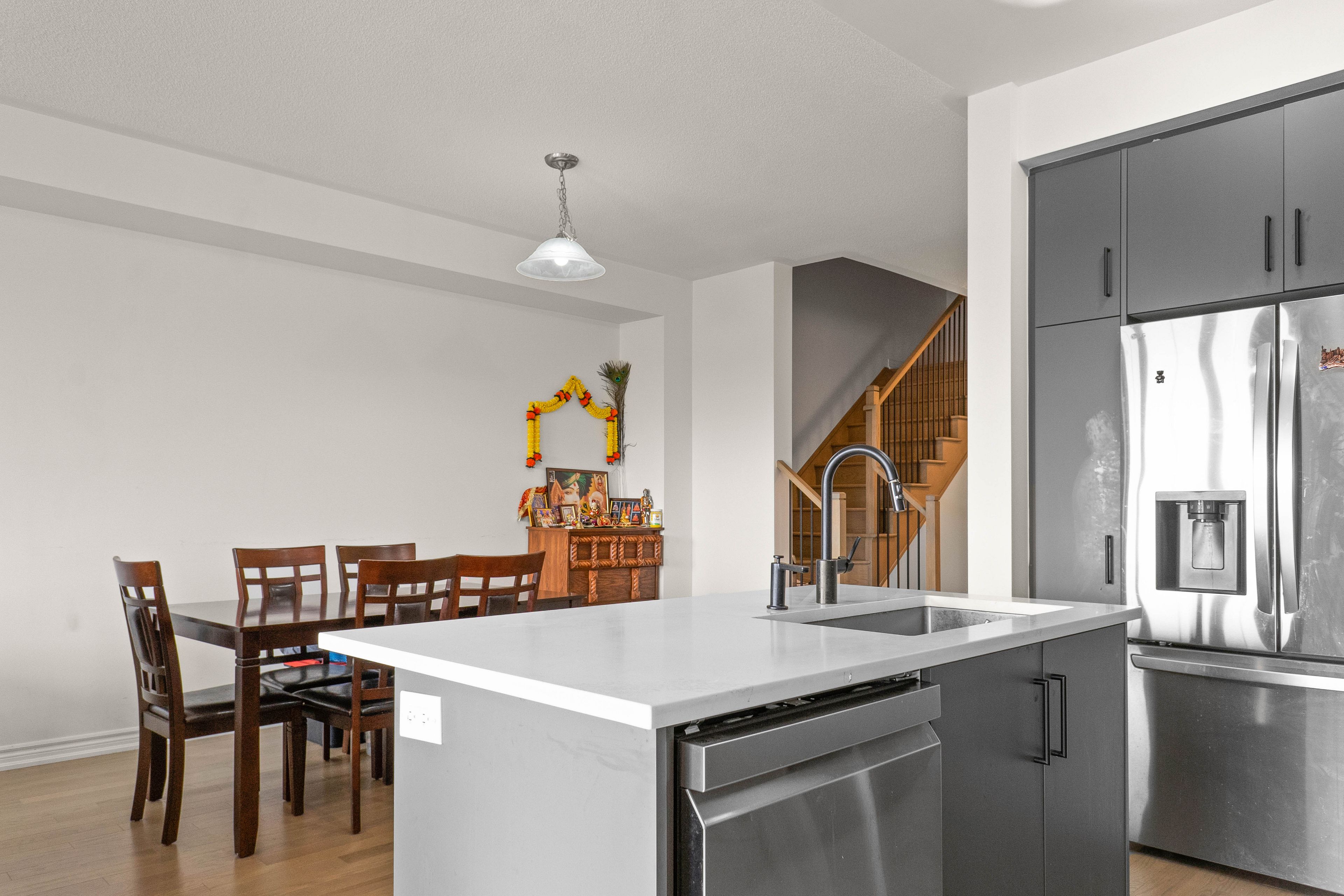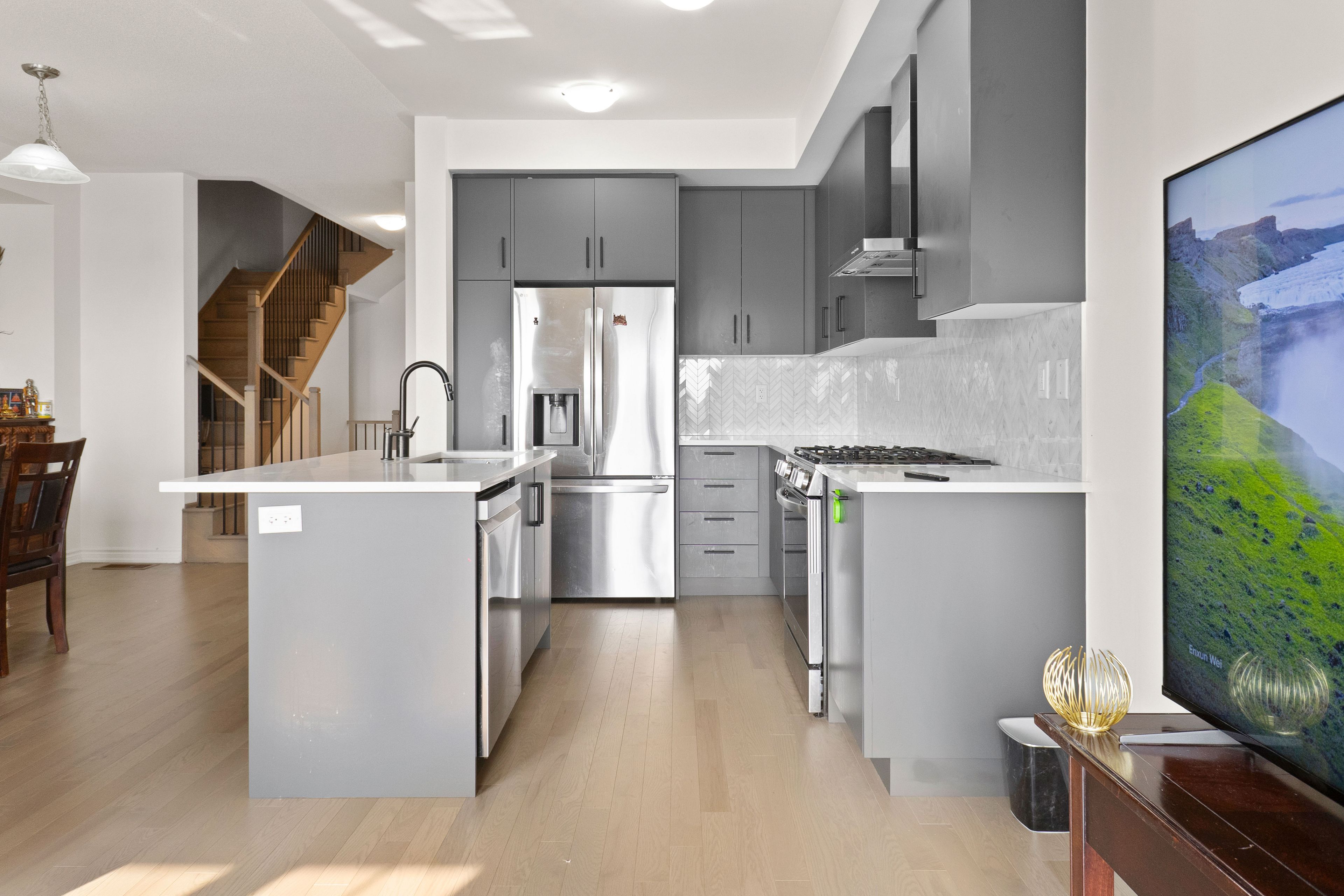 Stunning 1-year-old, 1985 sq ft townhouse at 152 greer st, featuring over $66,000 in premium builder upgrades and 9 ft ceilings on the main floor. The chef-inspired kitchen showcases sleek slate grey qtk cabinets, luxurious calacatta nuvo quartz countertops, a cyclone chimney hood, and an elegant oriental white marble chevron backsplash. Stainless steel appliances, a blanco undermount sink, and custom cabinetry with a 3-bin pull-out recycling unit and magic corner cabinet combine style with smart storage. The spacious main floor features an open-concept great room with upgraded hardwood flooring and an abundance of natural light, as well as a large dining area. The main-floor laundry includes extended cabinetry for added comfort and convenience. The unfinished look-out basement features a bathroom rough-in and a 200-amp electrical service, offering excellent future development potential. Upstairs are three bright bedrooms and a large loft with a walk-in closet-ideal for a home office or extra living space. The primary bedroom features his and her walk-in closets, hardwood floors, and a 3-piece ensuite. Secondary bedrooms also offer hardwood flooring, ample closet space, and oversized windows. Bathrooms throughout include concrete countertops, raised vanities, and modern hardware for a polished finish. Located just minutes from barrie south go station (2-minute drive/15-minute walk), with quick access to shopping, grocery stores (costco, metro, walmart, sobeys, zehrs), restaurants, schools, parks, golf, highway 400, and friday harbour. This move-in-ready home offers a perfect blend of style, function, and location-don't miss this exceptional opportunity!