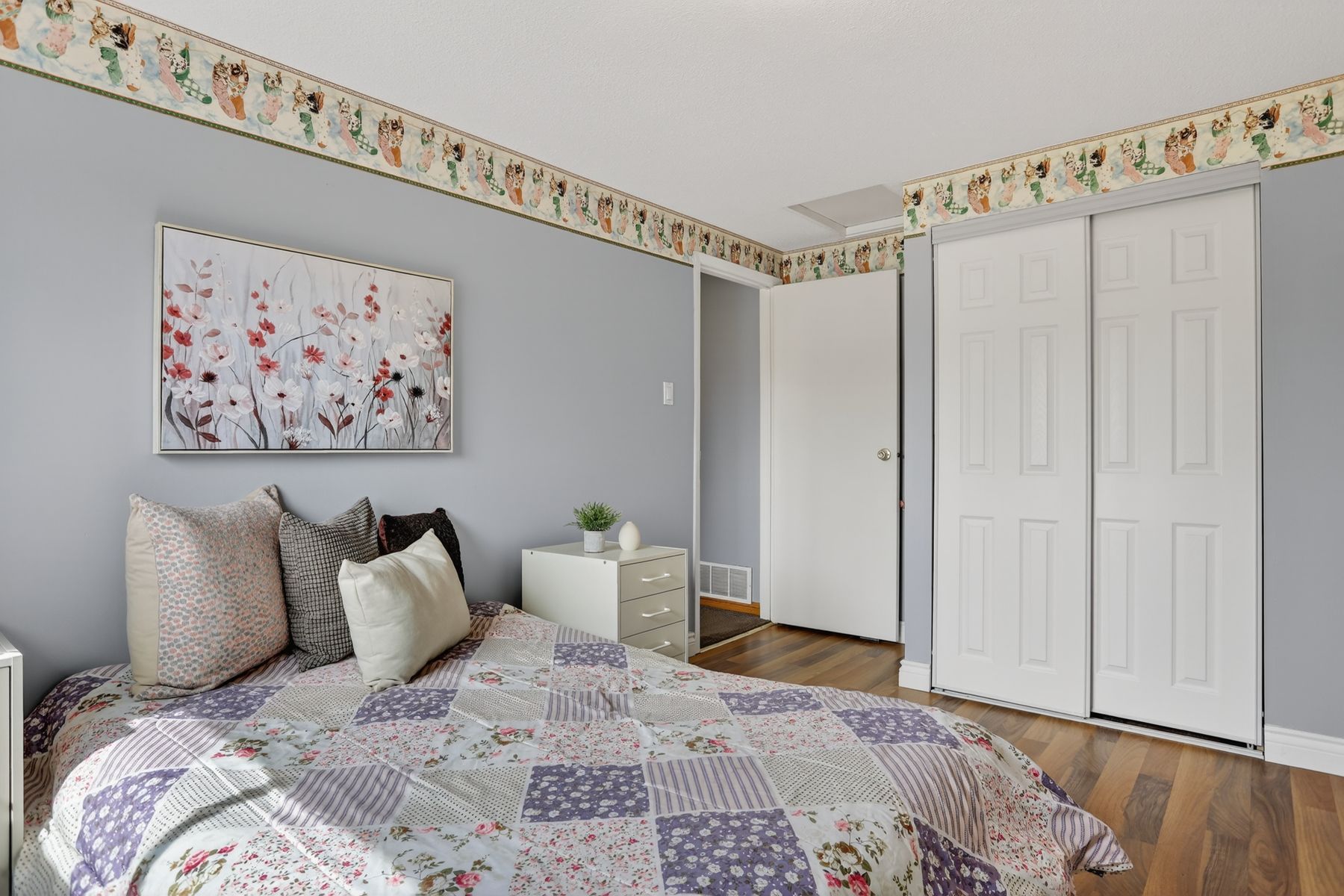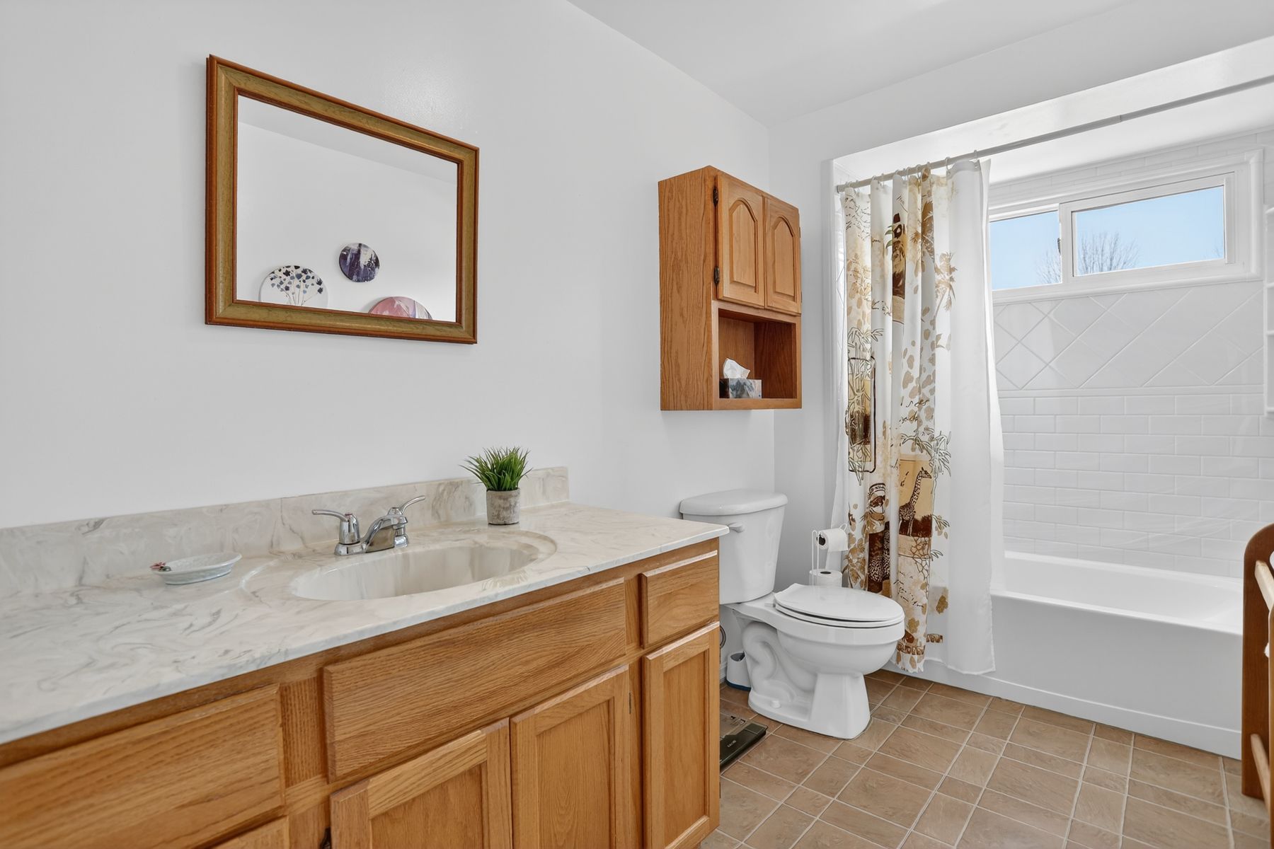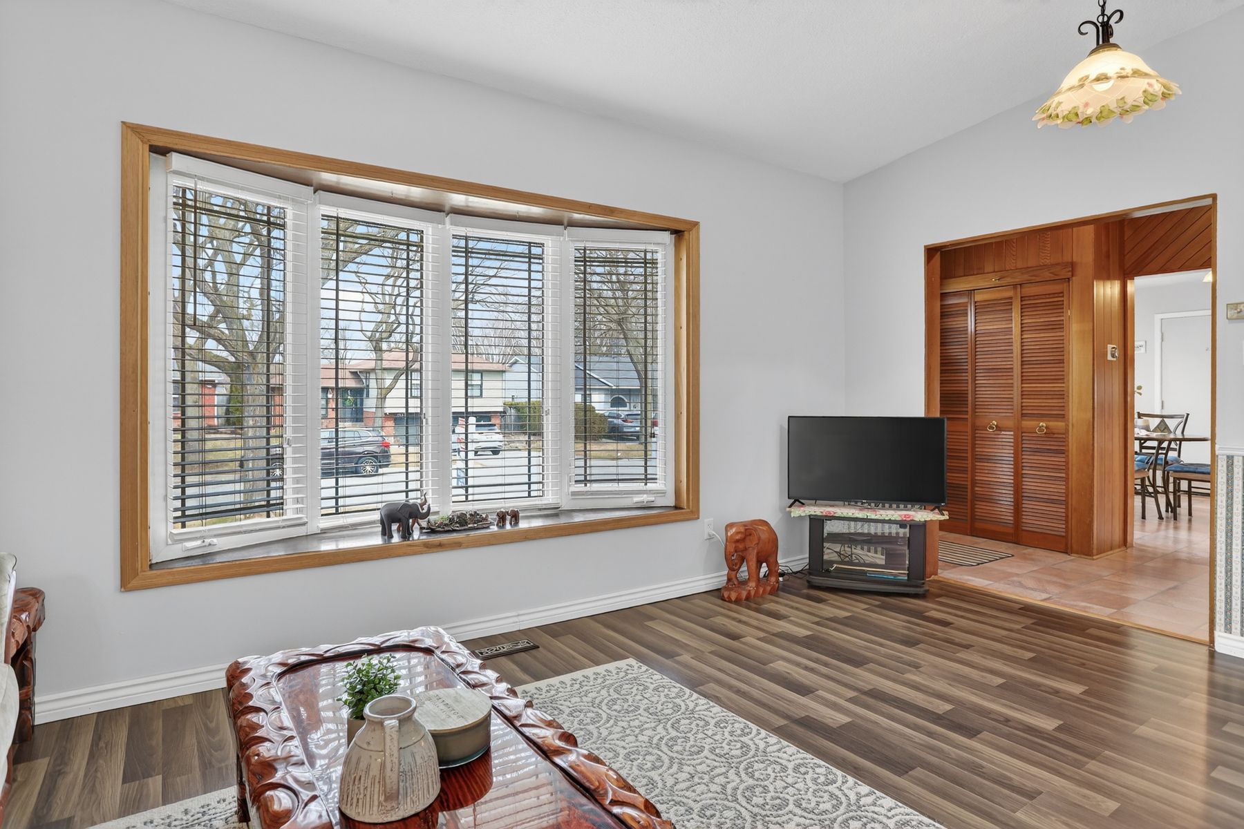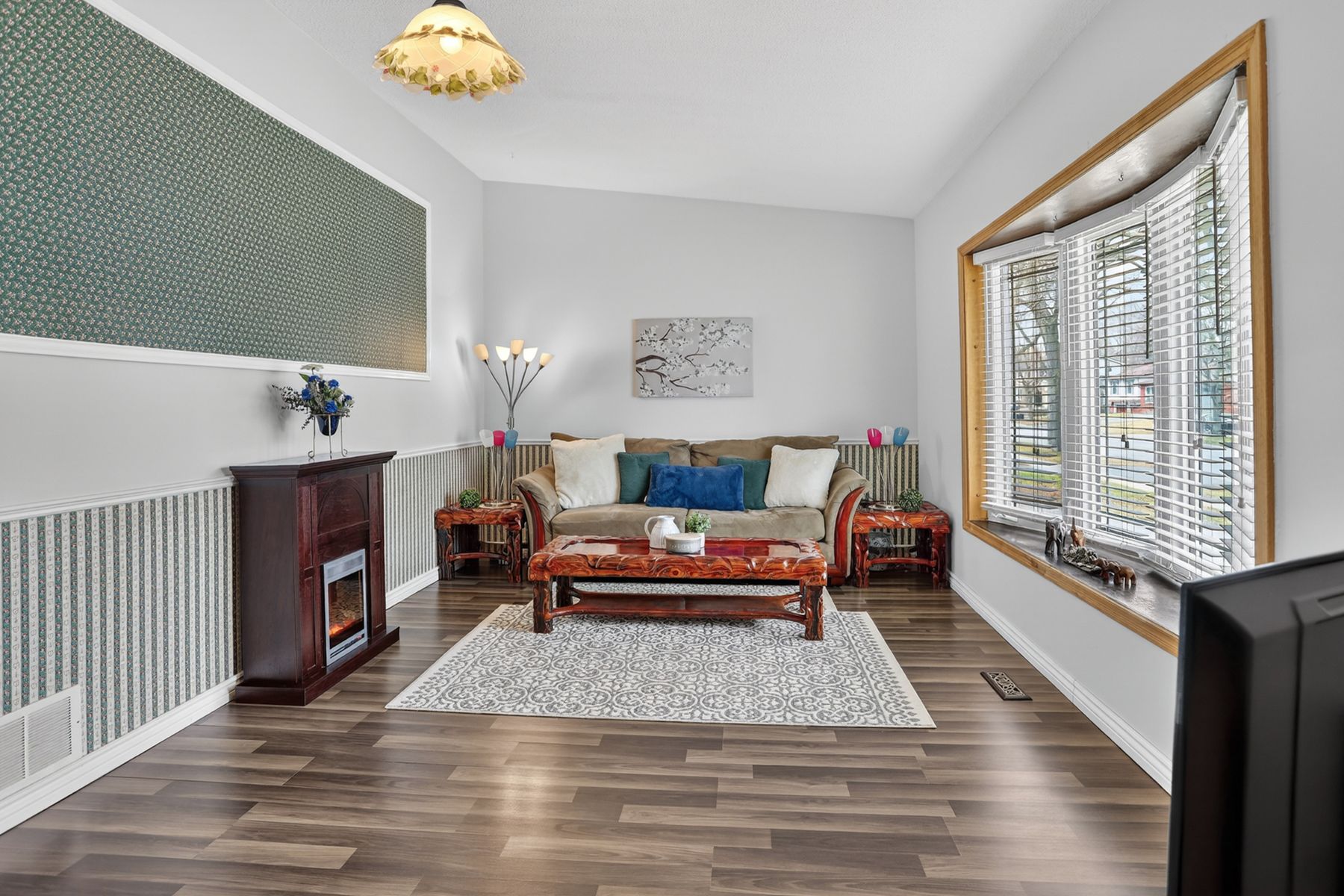 • Sunny eat-in kitchen and spacious living room with bay window.