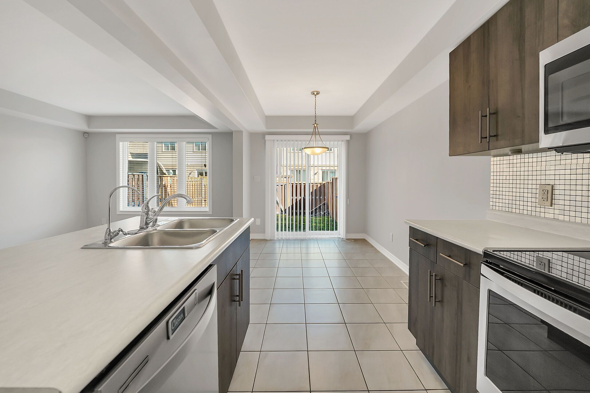 Welcome to 152 heron street in the beautiful town of welland! Enjoy carefree living with no condo fees!!! This freehold townhome is located in the sought after family friendly neighbourhood, close to most amenities. As you enter the home you will find it warm and inviting featuring an open concept main level with modern eat in kitchen, living room with walk out to large rear yard. There is a convenient two-piece bath on the main level. The bedroom level boasts three spacious bedrooms including the primary bedroom with three-piece ensuite bath, and an additional four-piece bath and laundry room. The lower level offers additional living space with a good size recroom, three-piece bath, storage and utility. There is an attached garage with inside entry. Nothing to do but move in and enjoy! Quick possession available!