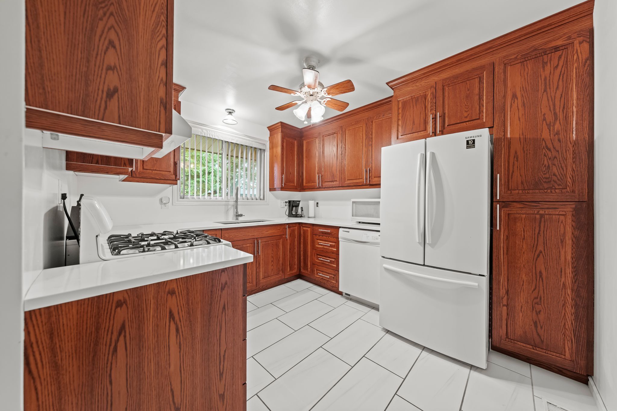 • Upper unit features three spacious bedrooms and bright, airy living spaces.