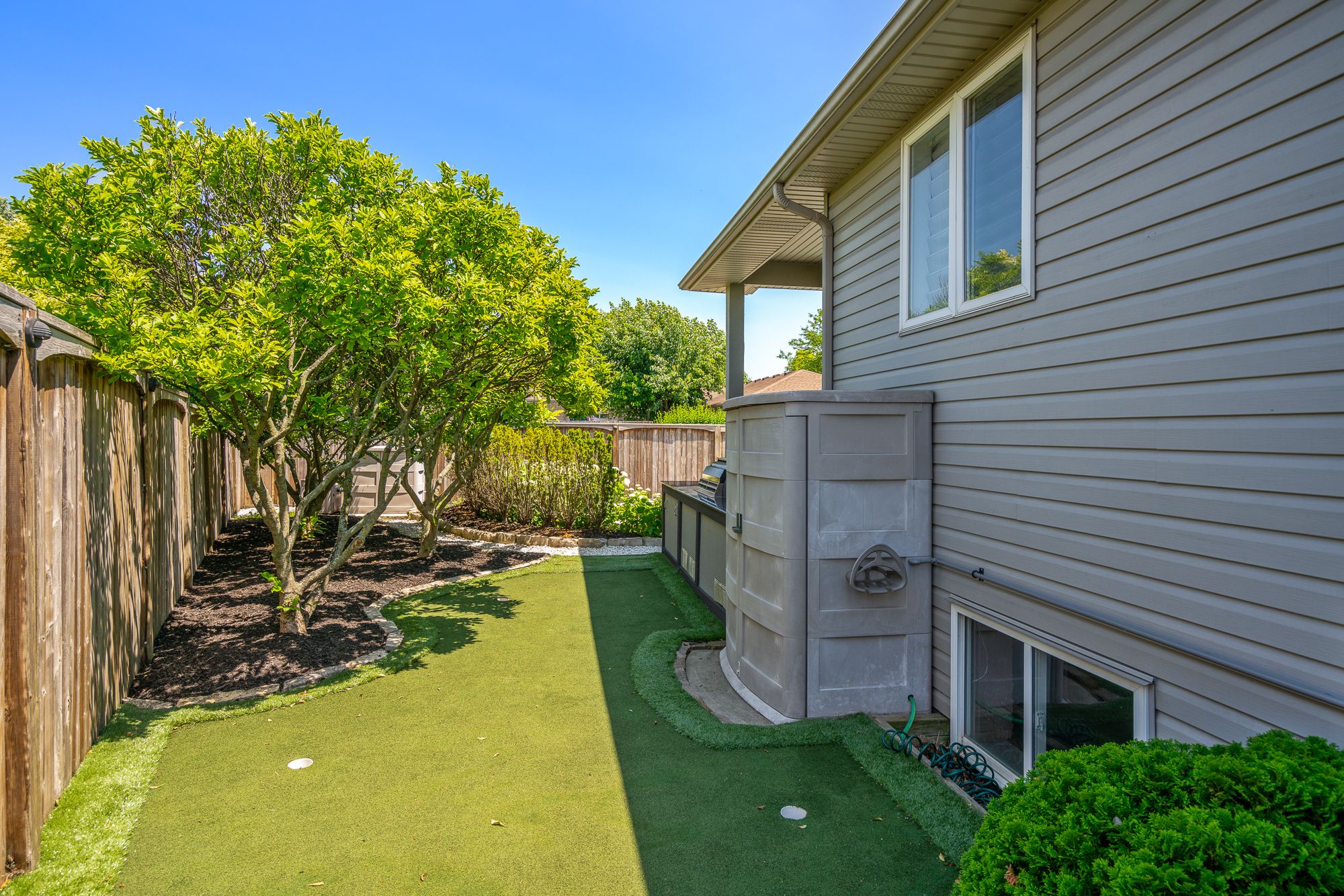 • Backyard oasis with a heated pool, outdoor kitchen, and putting green.