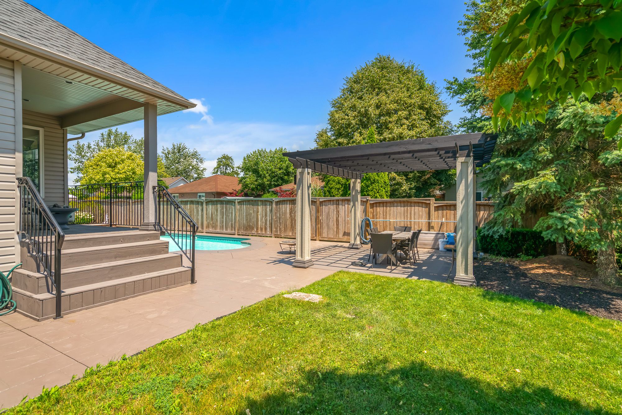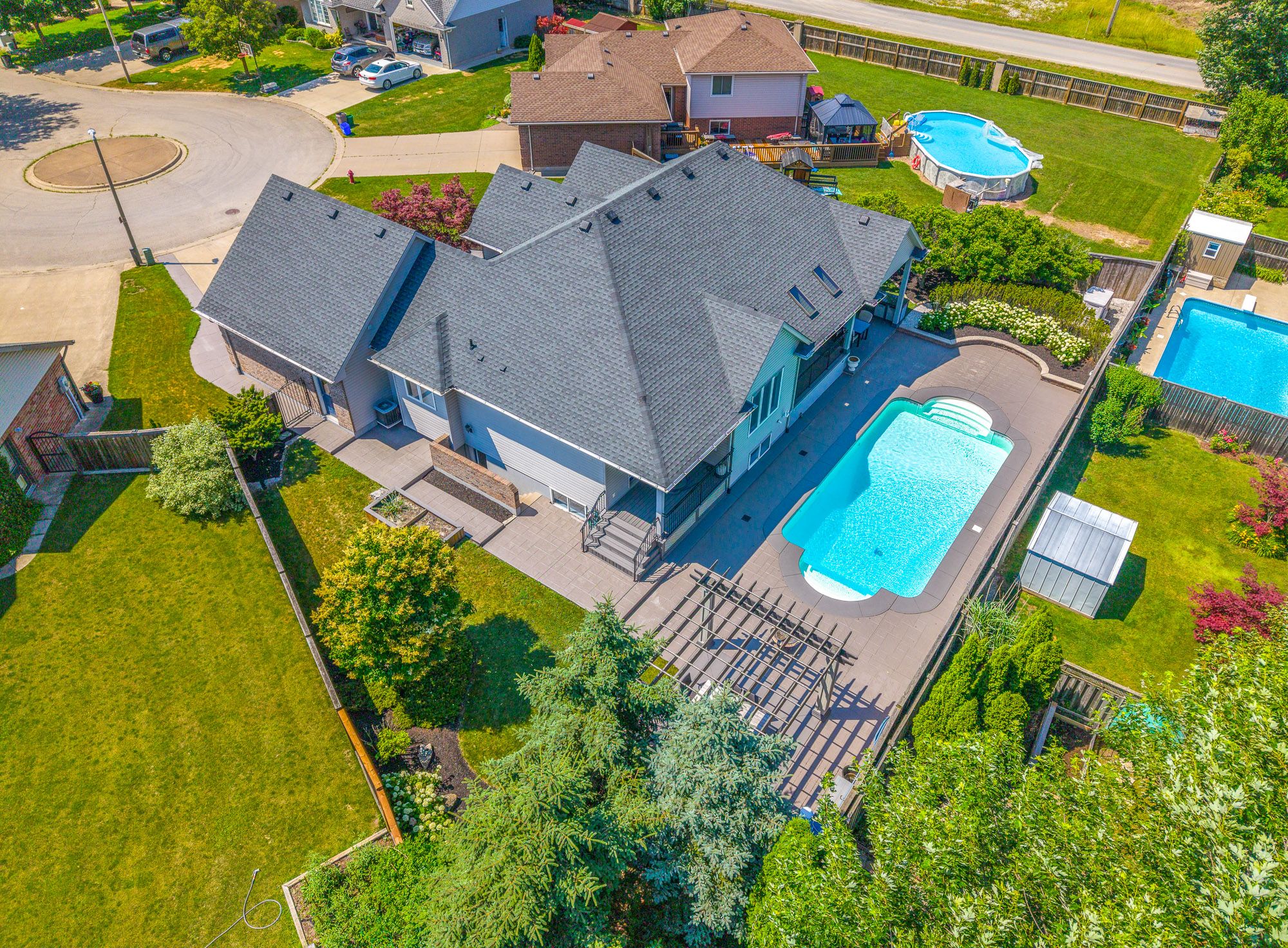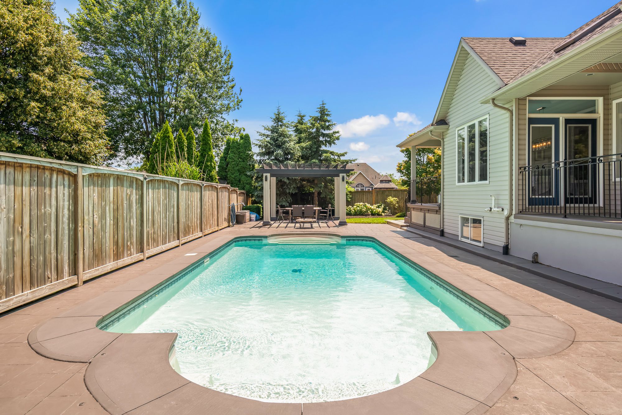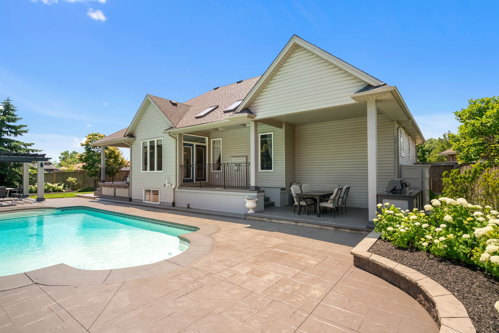 Large executive bungalow situated at the end of a quiet cul de sac on extensively landscaped, private pie shaped lot on the fonthill/welland border. This fabulous family home provides close to 4000 sq ft of top quality finished space loaded with luxurious materials and upgrades including 9' and cathedral ceilings, hardwood floors, upgraded trim, 2 gas fp's, hard surface counters and in-line back up generator. 3+ 2 bedrooms, including spacious master w/ ensuite bath, his & her walk in closets & garden doors to private covered deck , 3 baths, formal dining room & fully finished lower level with walk out / separate entrance, custom office suite, 2 additional bedrooms and amazing 600 sq ft rec room/ entertainment room w/ gas fp, custom built in's & wet bar. The incredible backyard oasis features 3 covered decks, outdoor kitchen w/ b/i bbq, i/g heated pool, synthetic turf putting green & custom built pergola ( pre-wired for hot tub ). Fabulous location in highly sought after north welland neighbourhood, close to schools, shops, niagara college & welland's recreation waterway & trails.