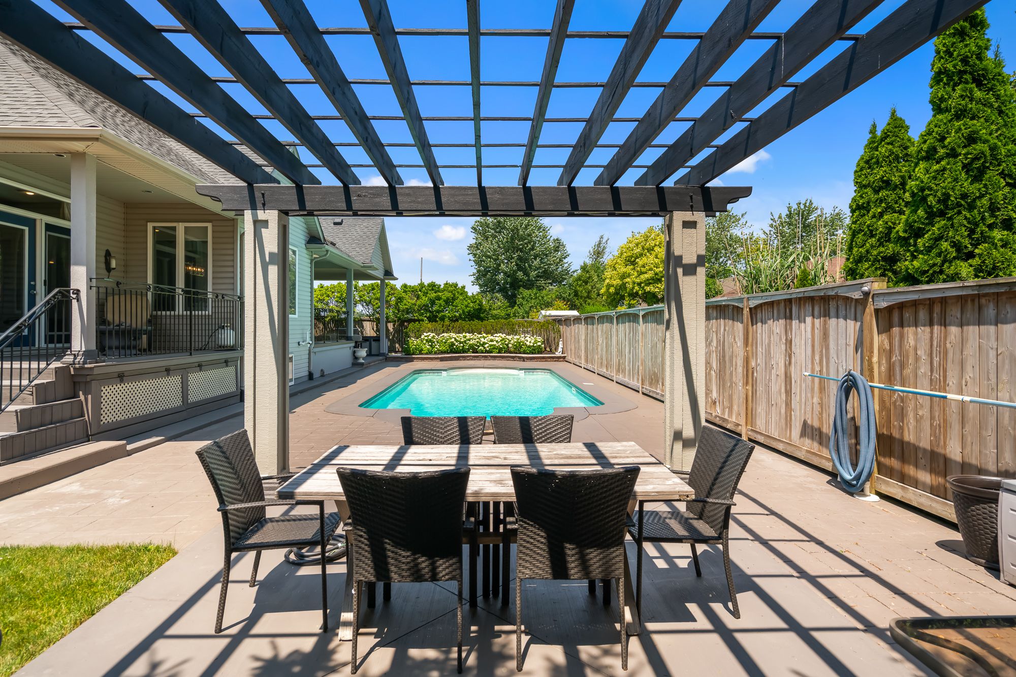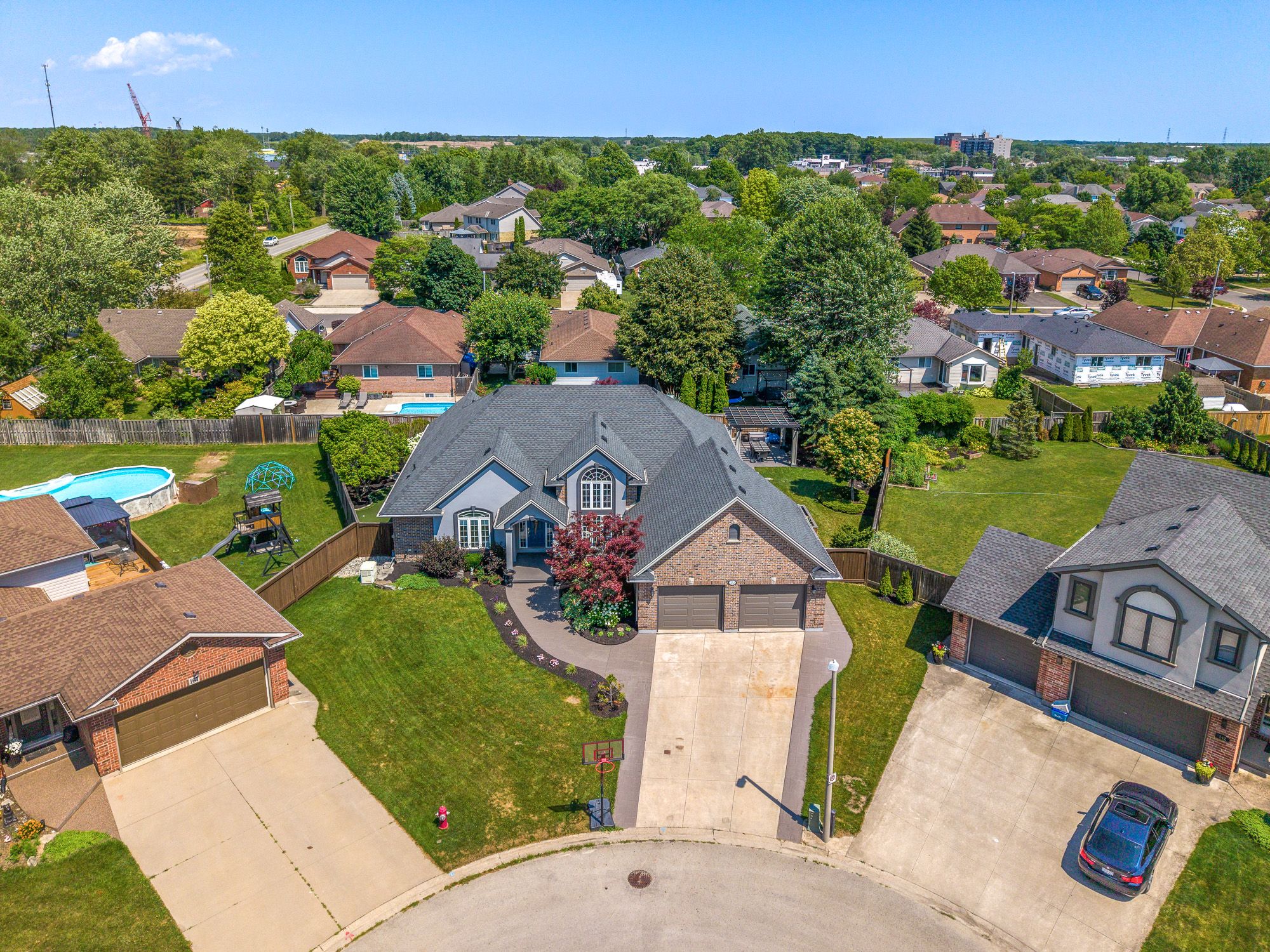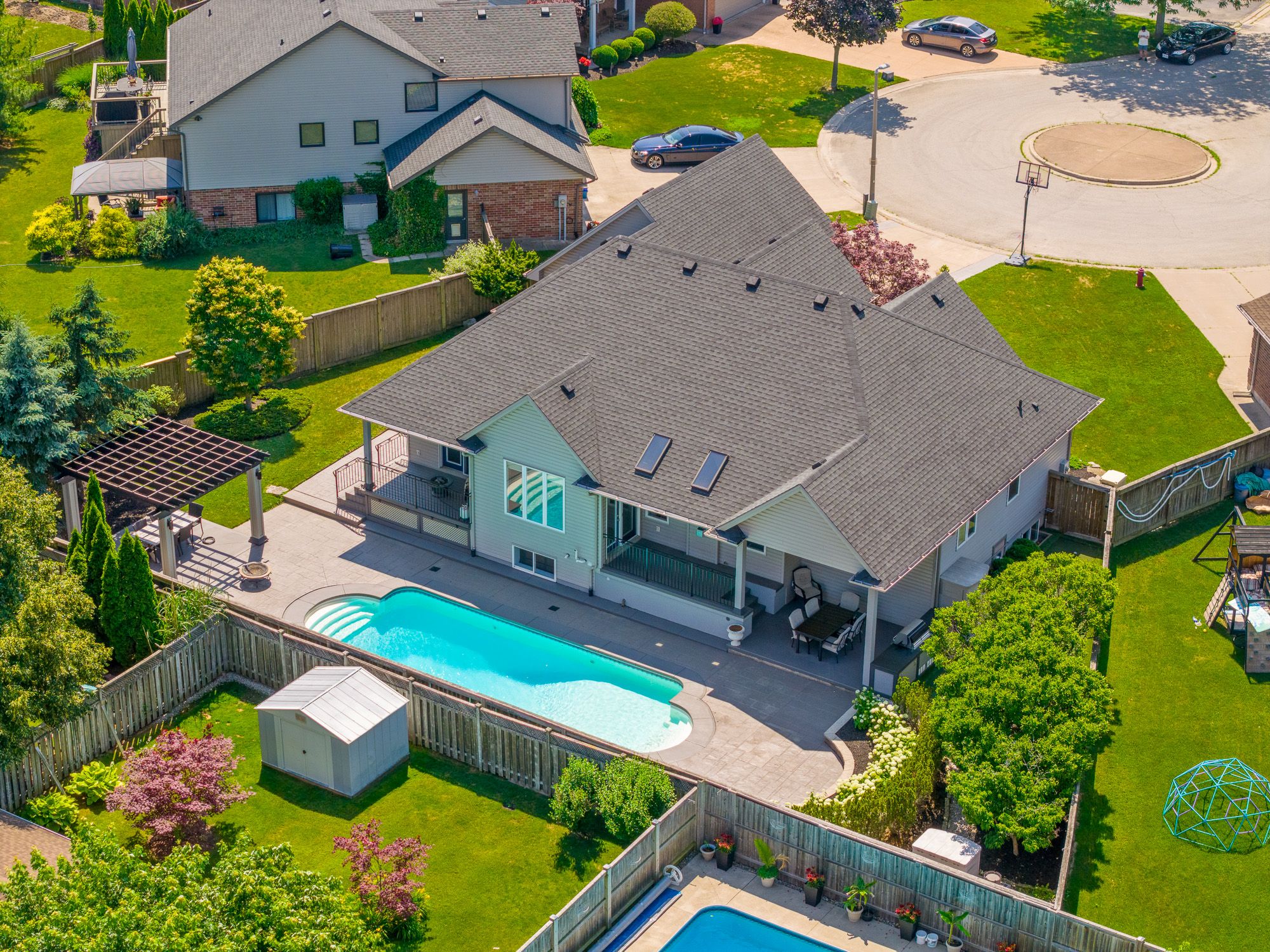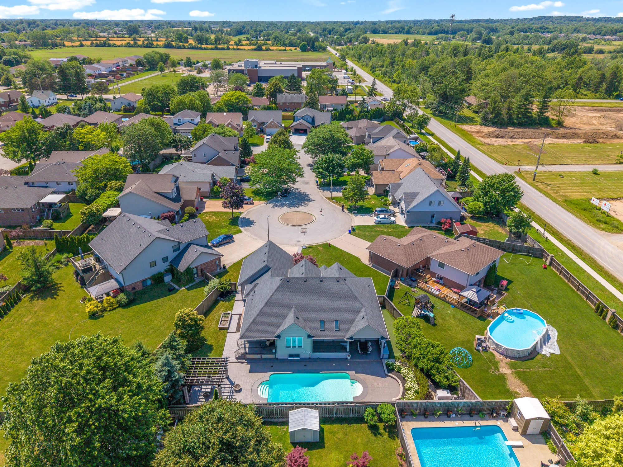 Large executive bungalow situated at the end of a quiet cul de sac on extensively landscaped, private pie shaped lot on the fonthill/welland border. This fabulous family home provides close to 4000 sq ft of top quality finished space loaded with luxurious materials and upgrades including 9' and cathedral ceilings, hardwood floors, upgraded trim, 2 gas fp's, hard surface counters and in-line back up generator. 3+ 2 bedrooms, including spacious master w/ ensuite bath, his & her walk in closets & garden doors to private covered deck , 3 baths, formal dining room & fully finished lower level with walk out / separate entrance, custom office suite, 2 additional bedrooms and amazing 600 sq ft rec room/ entertainment room w/ gas fp, custom built in's & wet bar. The incredible backyard oasis features 3 covered decks, outdoor kitchen w/ b/i bbq, i/g heated pool, synthetic turf putting green & custom built pergola ( pre-wired for hot tub ). Fabulous location in highly sought after north welland neighbourhood, close to schools, shops, niagara college & welland's recreation waterway & trails.