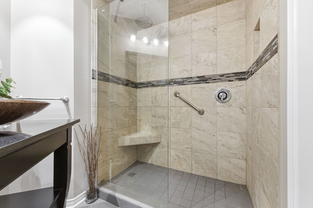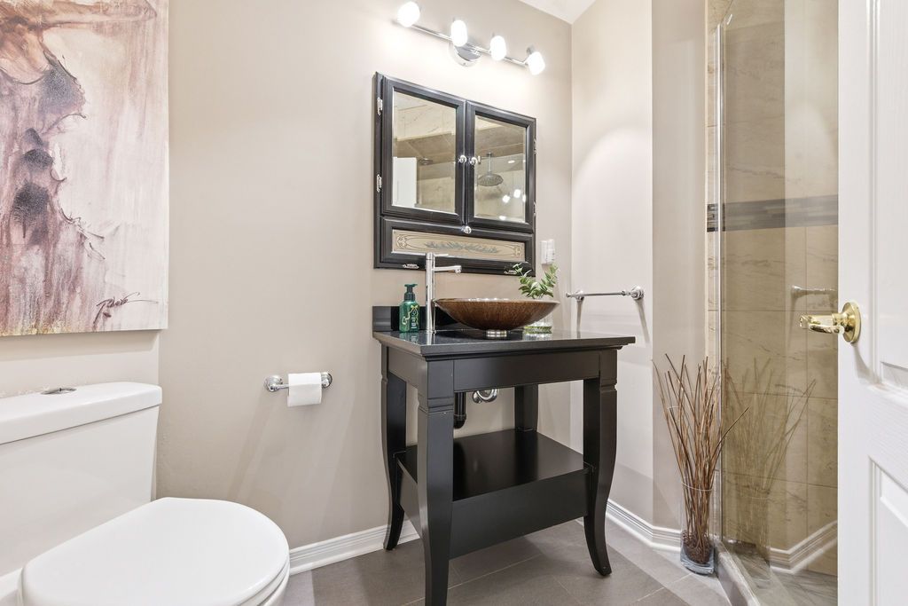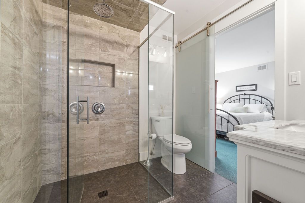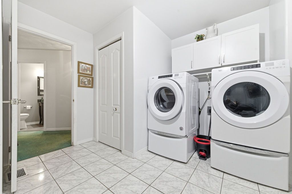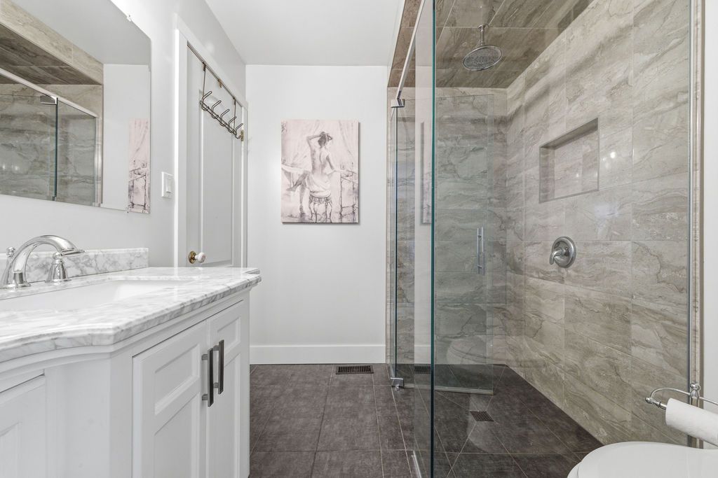 • Triple car garage with extra storage and heated bathroom.