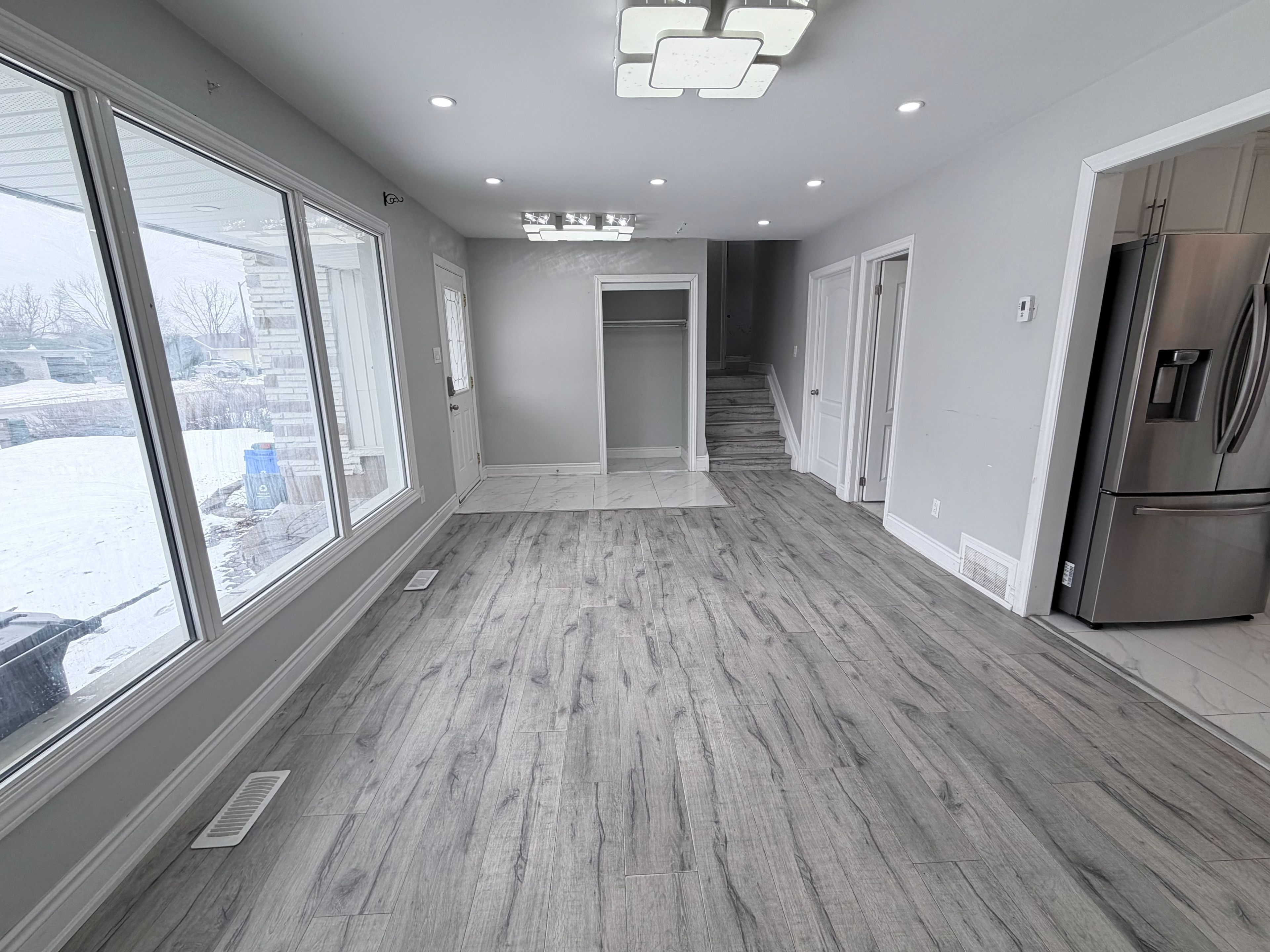 Welcome to this bright main-level unit located in the highly sought-after north end of barrie. This spacious side-split home offers an ideal layout for families or professionals alike, featuring three generous bedrooms and one and a half bathrooms. The interior is finished with modern touches, including sleek flooring and a contemporary kitchen equipped with stainless steel appliances, ample cabinetry, and a stylish backsplash. The living area is bathed in natural light from large windows, creating a warm and inviting atmosphere for relaxation or entertaining. Residents will enjoy the convenience of two dedicated parking spaces and access to shared laundry facilities. The property also boasts a large shared backyard, perfect for enjoying the outdoors. The location of this home is truly exceptional, offering quick access to hwy 400 for commuters and close proximity to essential amenities including georgian college, the royal victoria regional health centre, various schools, and local shopping centres. The tenant is responsible for 2/3 of the total utility costs and the hot water heater rental.