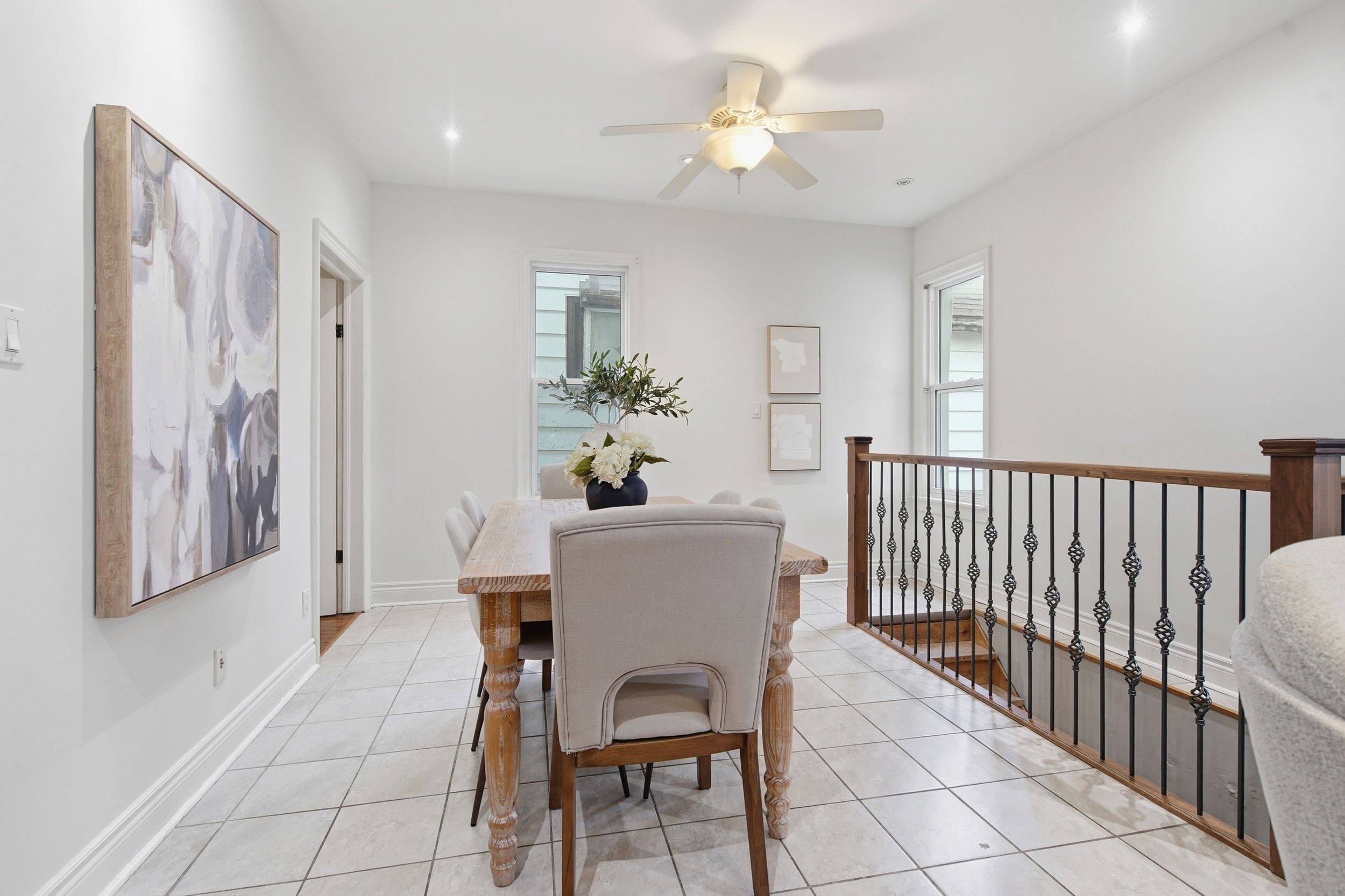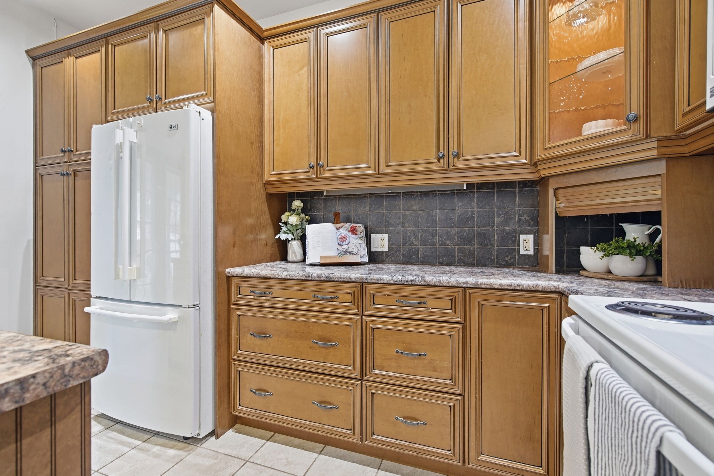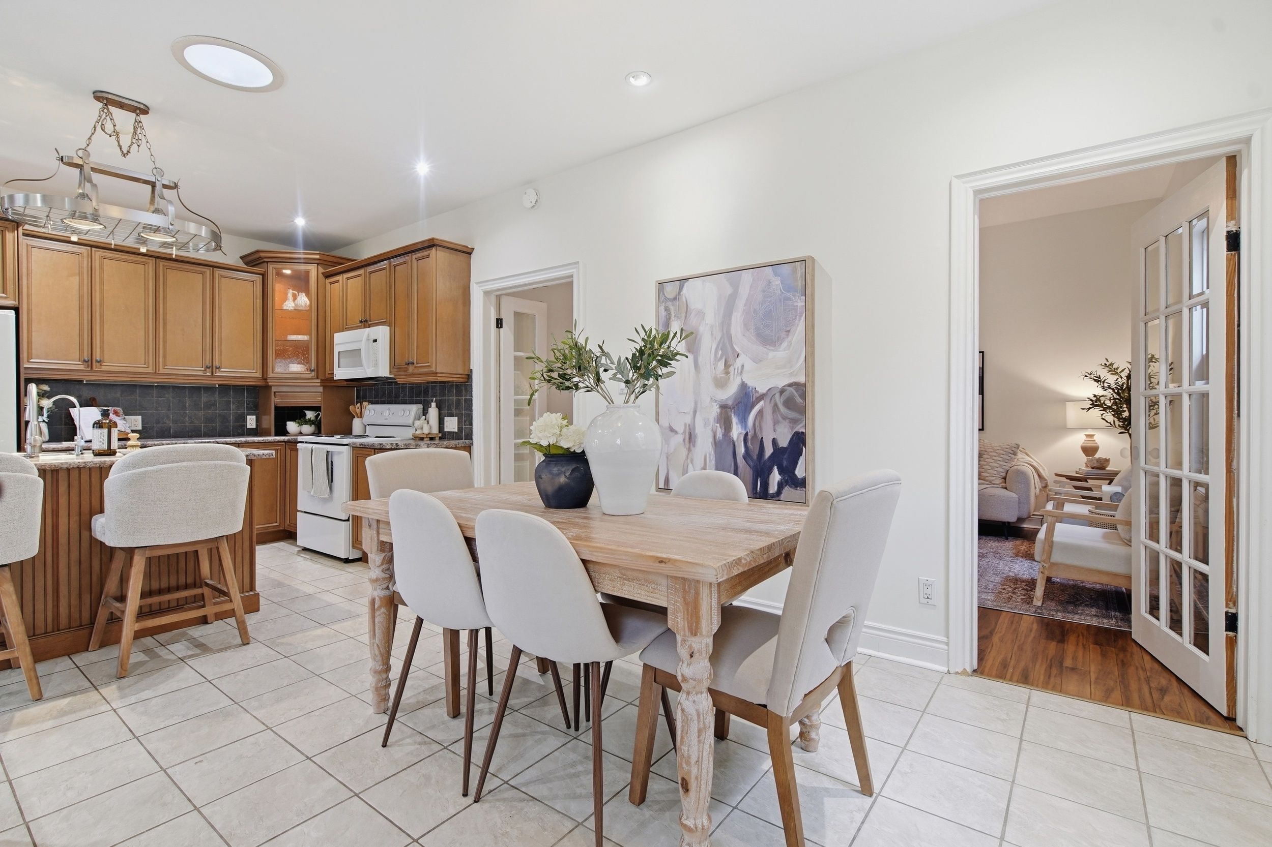 • Spacious eat-in kitchen features a center island and opens to the backyard.