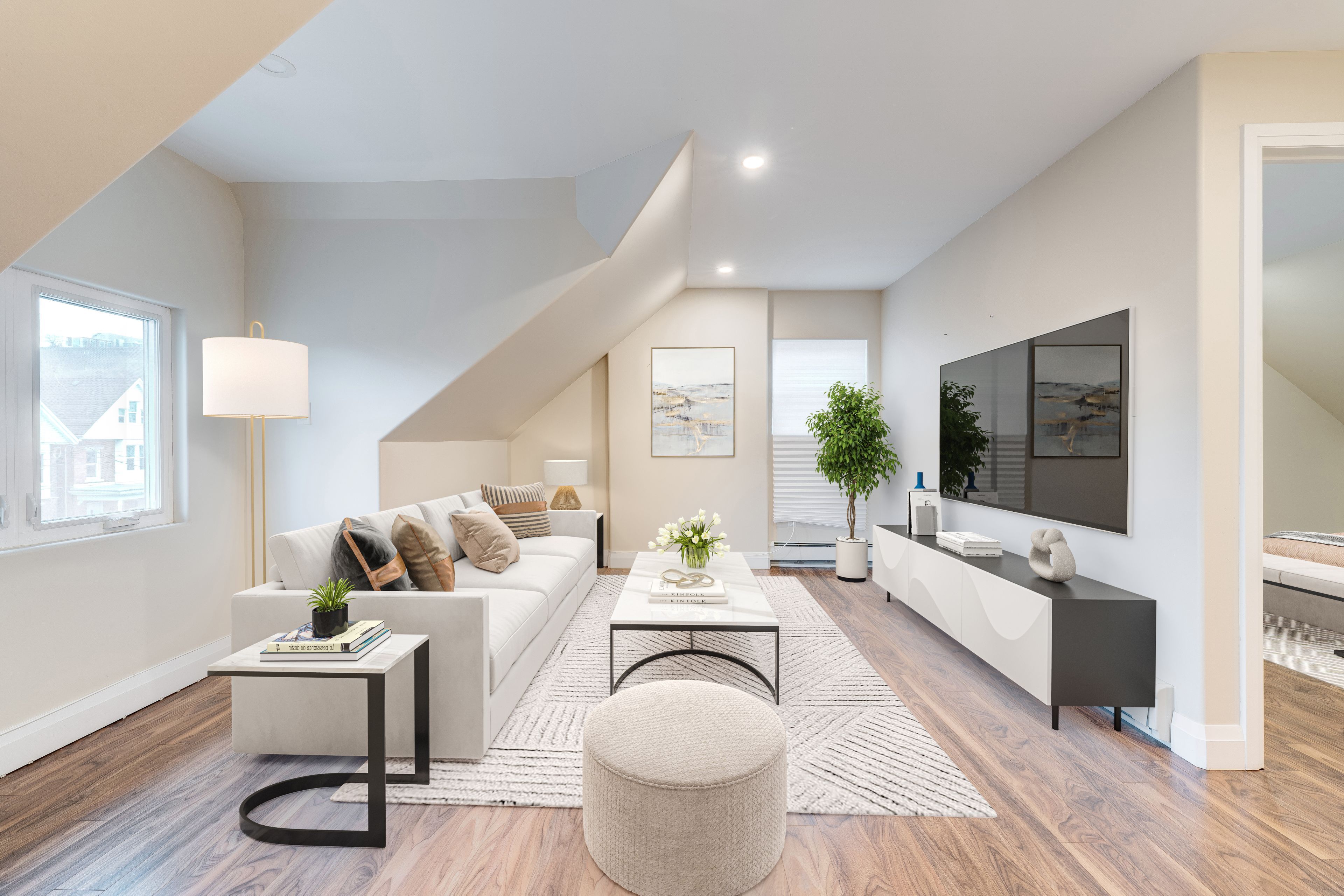 • Upper-level has flexible oversized living room for relaxation or work.