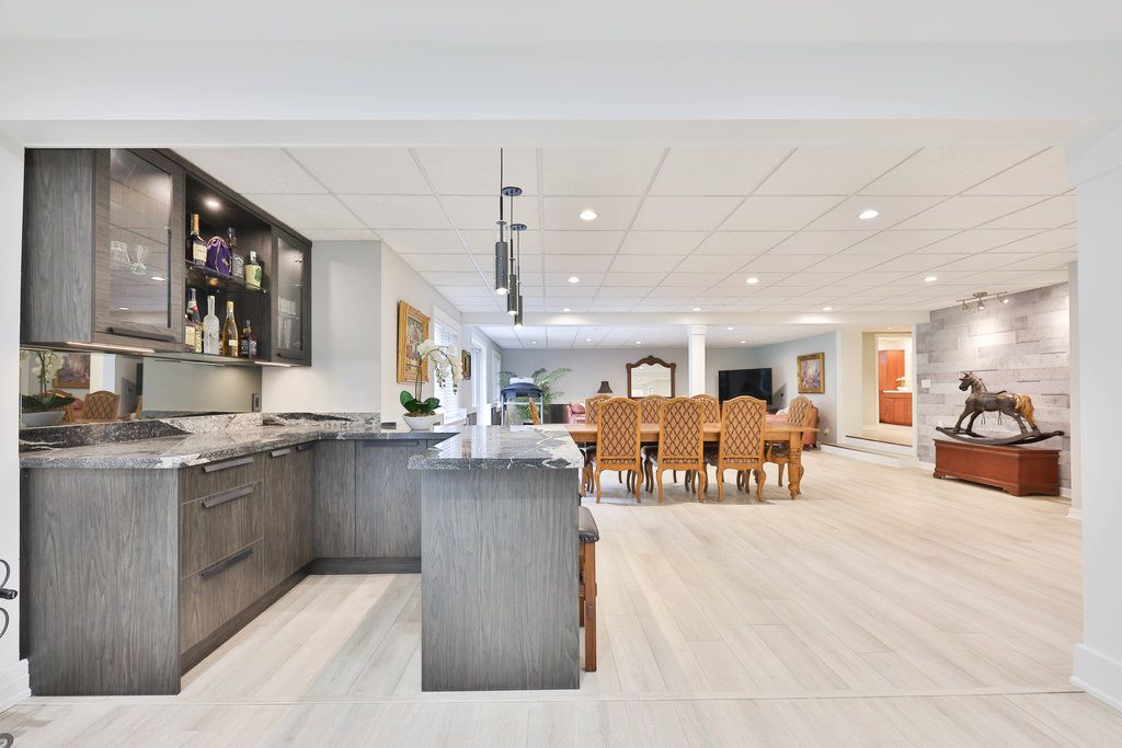 • Expansive lower level includes a rec room and wet bar for versatility.