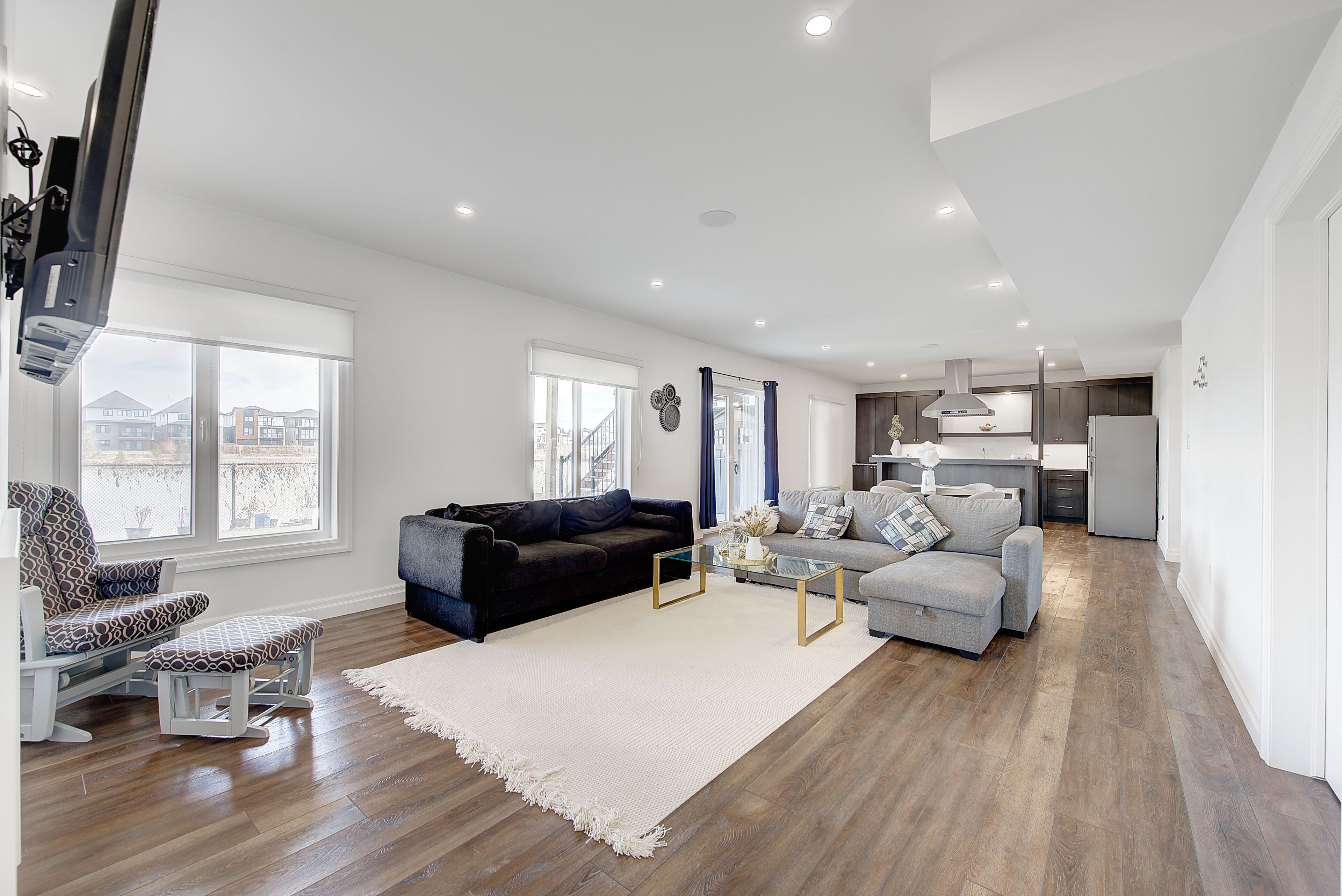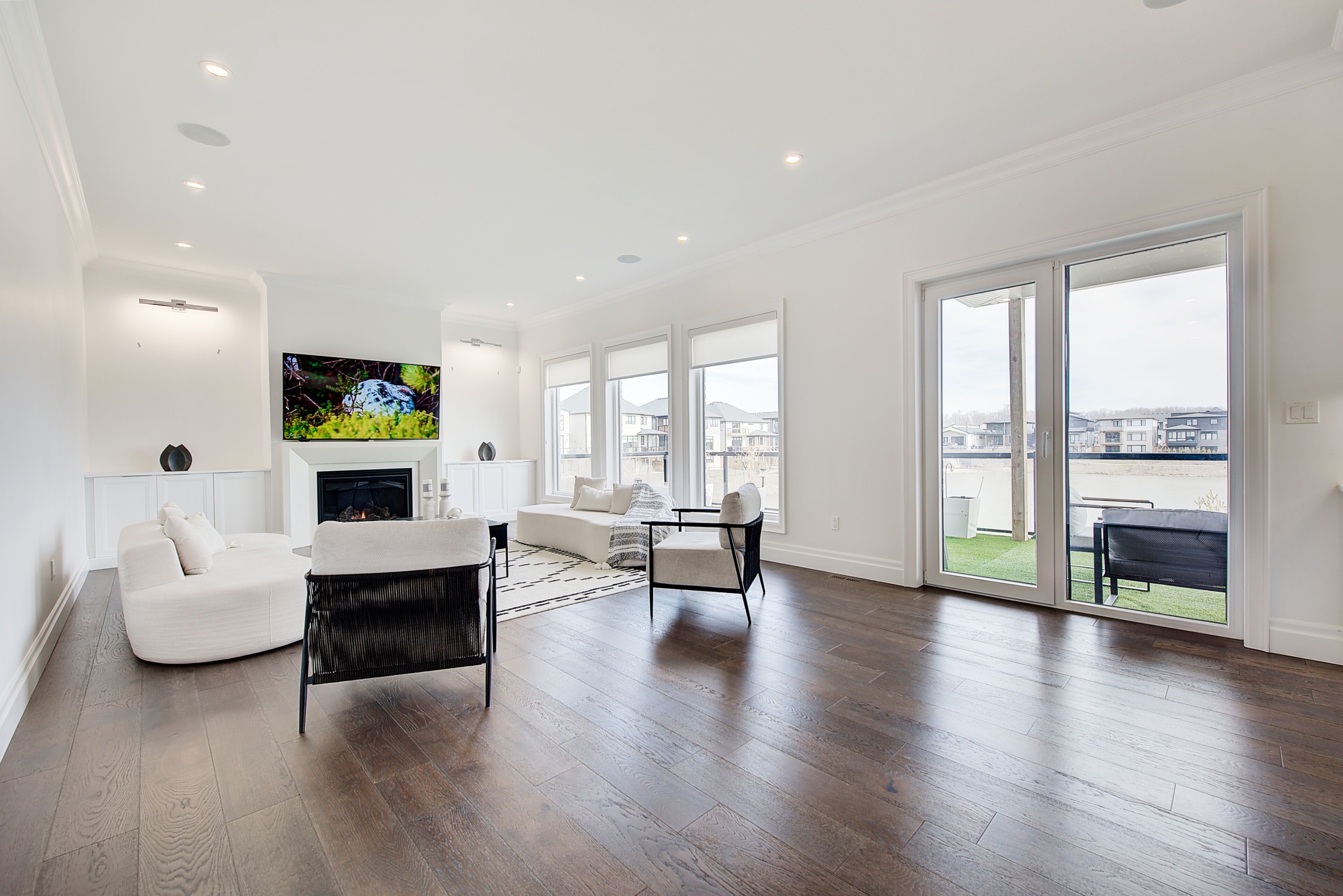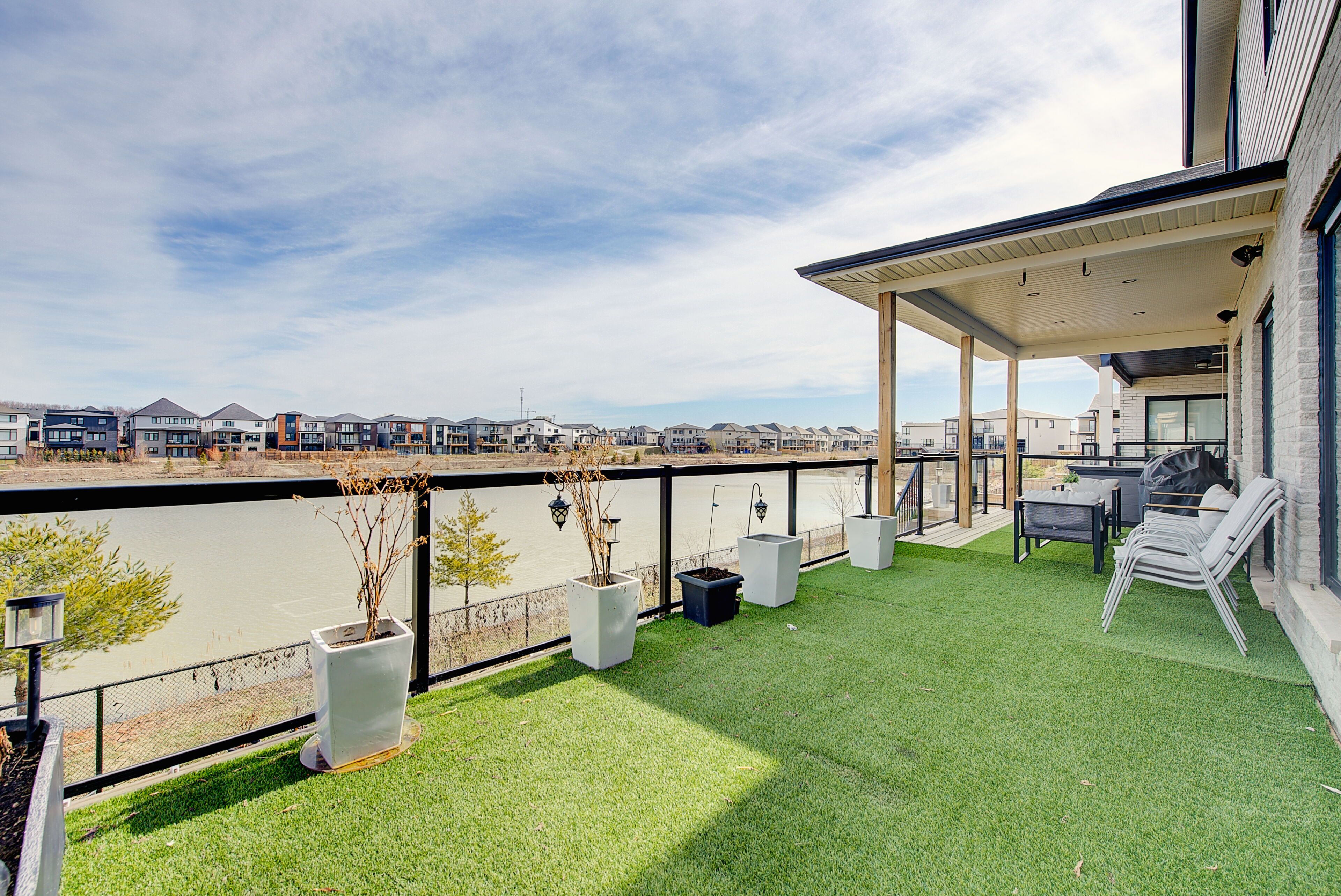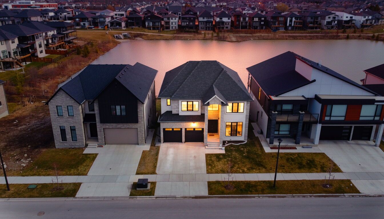 Experience luxury living in this stunning home offering 3,840 sq. Ft. Above grade plus a 1,356 sq. Ft. Finished walkout basement, beautifully backing onto a serene pond. The main level features 10 ft ceilings, while the second floor offers 9 ft ceilings, creating an open and elegant feel throughout. The home showcases a designer limestone fireplace surround, commercial-size appliances, built-in speakers, and a private office. Enjoy the comfort of heated floors in all bathrooms, the mudroom, and laundry areas, adding warmth and convenience throughout the home. The second level offers 4 spacious bedrooms, each with its own ensuite, including a luxurious primary retreat featuring a large custom built-in closet and an oversized spa-inspired ensuite. The laundry room includes custom built-ins for added functionality and organization. Step outside to a half-covered, half-sun deck overlooking the pond, perfect for relaxing or entertaining while enjoying the peaceful views. The walkout basement offers a fully functional in-law suite complete with a separate kitchen, bedroom, additional room, and its own laundry, providing excellent flexibility for extended family living or multi-generational use. A rare opportunity to own a beautifully designed home combining luxury finishes, exceptional space, and breathtaking pond views.