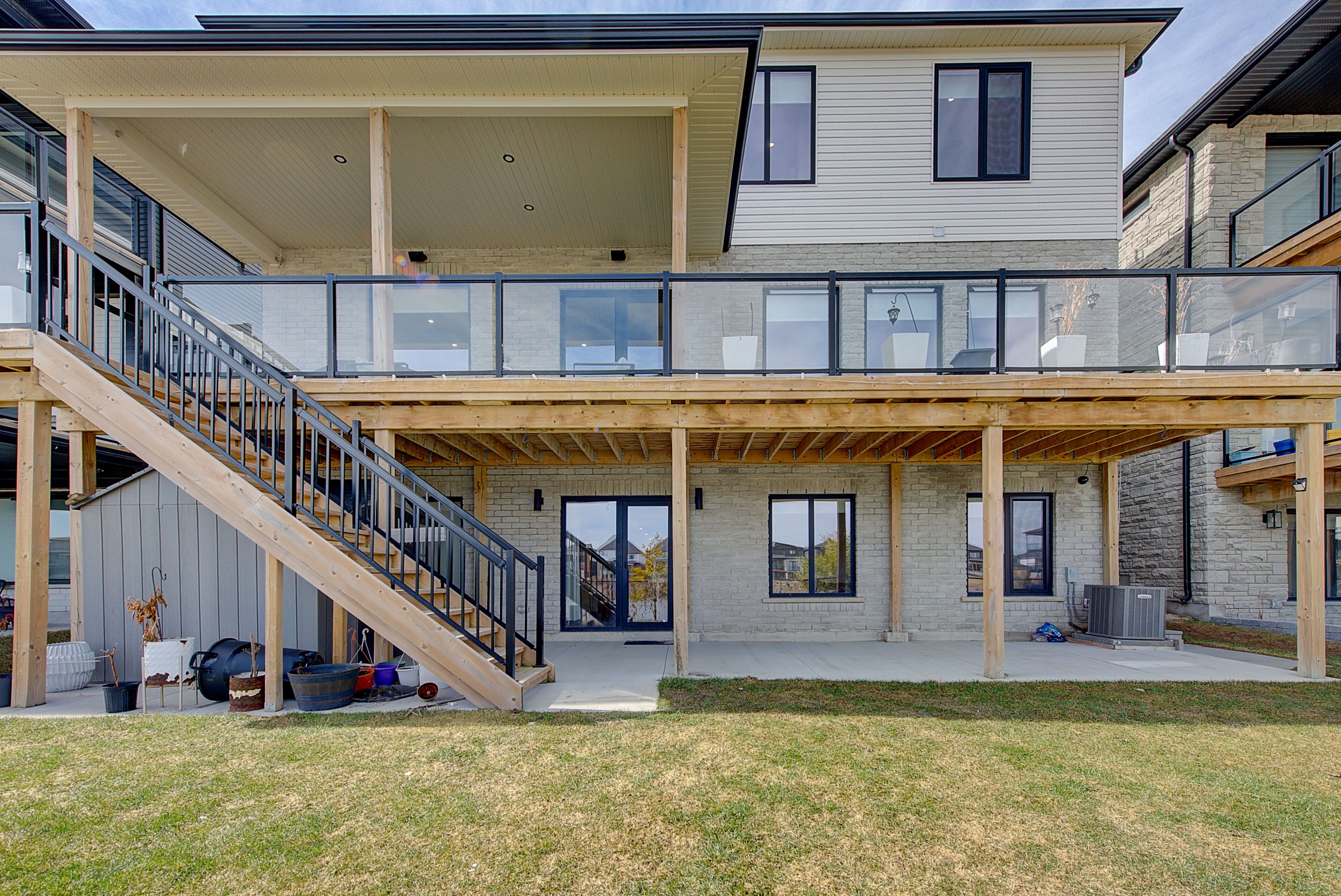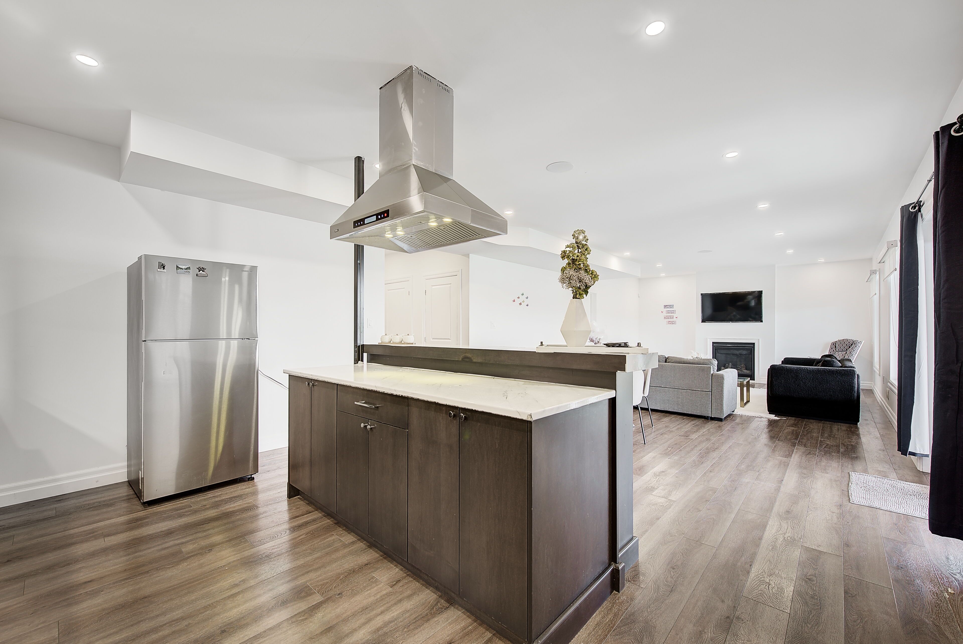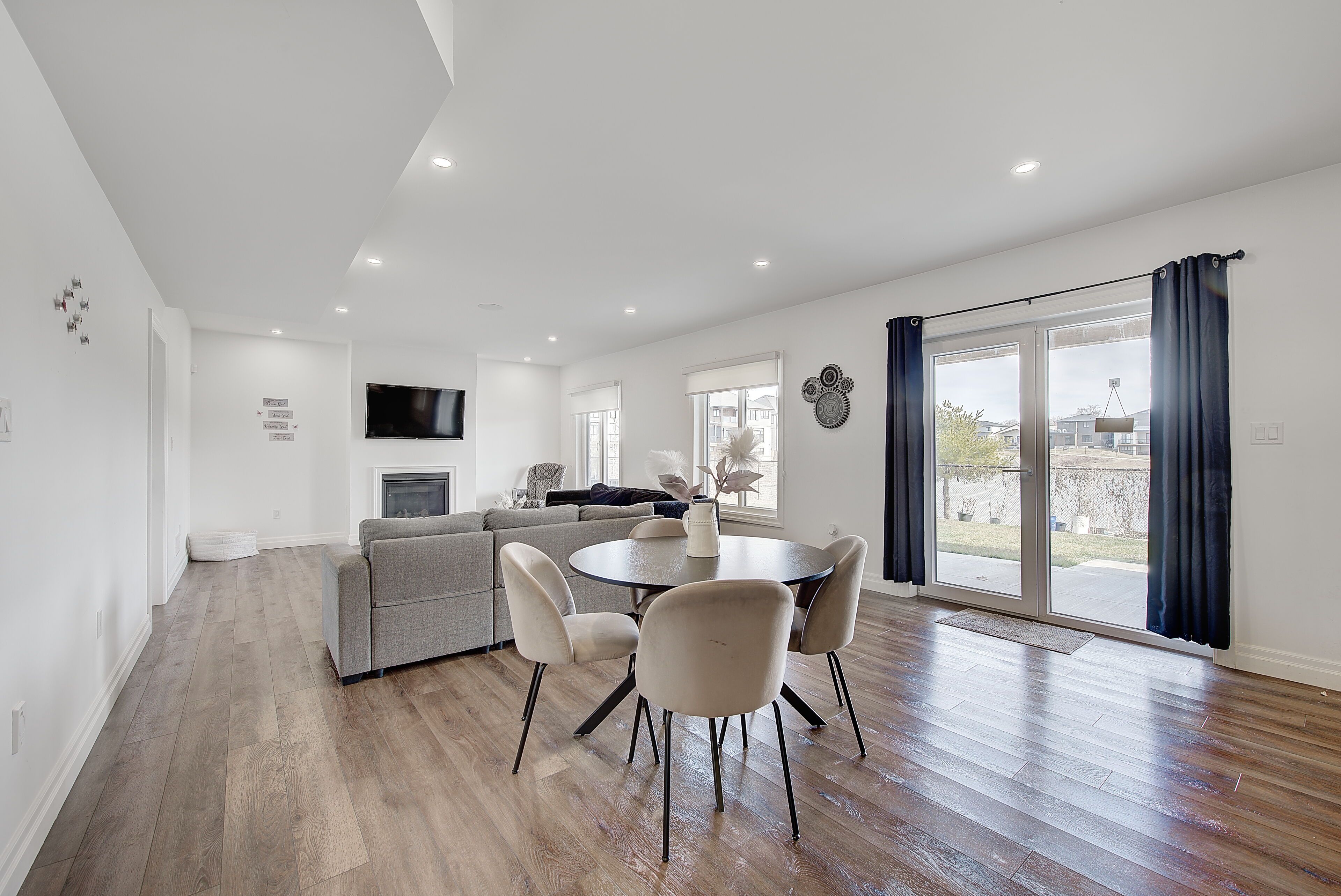 Experience luxury living in this stunning home offering 3,840 sq. Ft. Above grade plus a 1,356 sq. Ft. Finished walkout basement, beautifully backing onto a serene pond. The main level features 10 ft ceilings, while the second floor offers 9 ft ceilings, creating an open and elegant feel throughout. The home showcases a designer limestone fireplace surround, commercial-size appliances, built-in speakers, and a private office. Enjoy the comfort of heated floors in all bathrooms, the mudroom, and laundry areas, adding warmth and convenience throughout the home. The second level offers 4 spacious bedrooms, each with its own ensuite, including a luxurious primary retreat featuring a large custom built-in closet and an oversized spa-inspired ensuite. The laundry room includes custom built-ins for added functionality and organization. Step outside to a half-covered, half-sun deck overlooking the pond, perfect for relaxing or entertaining while enjoying the peaceful views. The walkout basement offers a fully functional in-law suite complete with a separate kitchen, bedroom, additional room, and its own laundry, providing excellent flexibility for extended family living or multi-generational use. A rare opportunity to own a beautifully designed home combining luxury finishes, exceptional space, and breathtaking pond views.