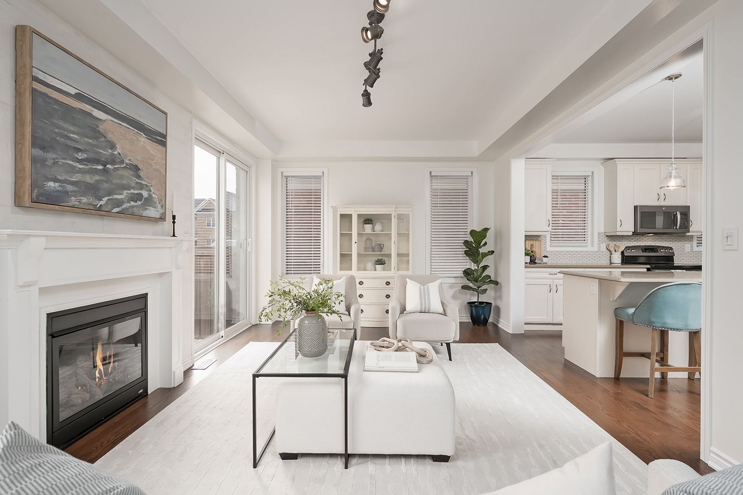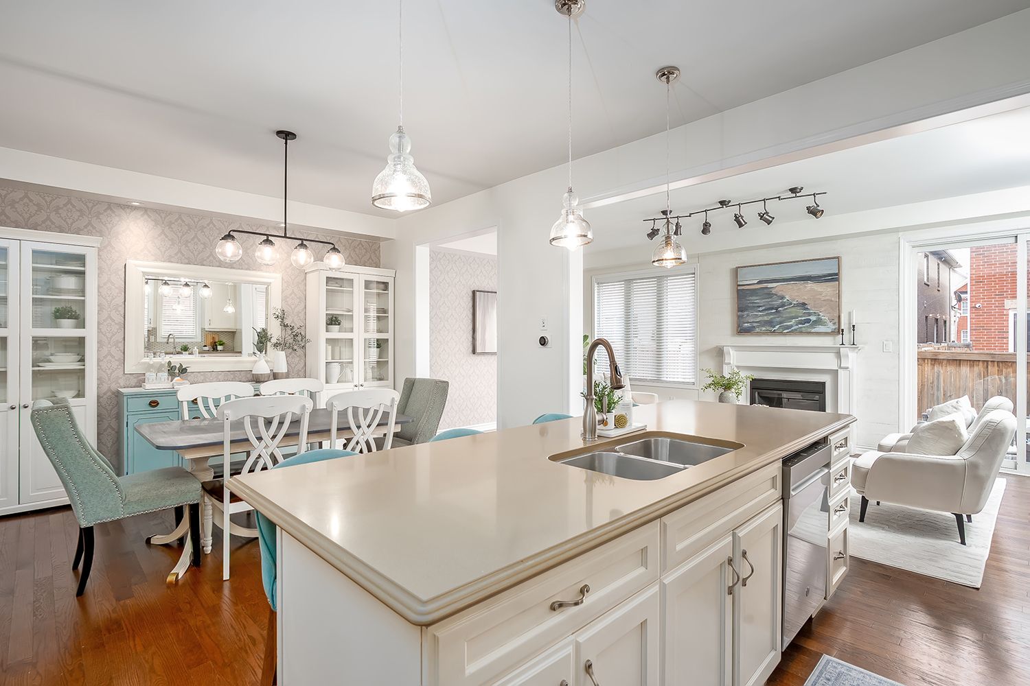 • Sun-filled great room with gas fireplace and walk-out to patio.