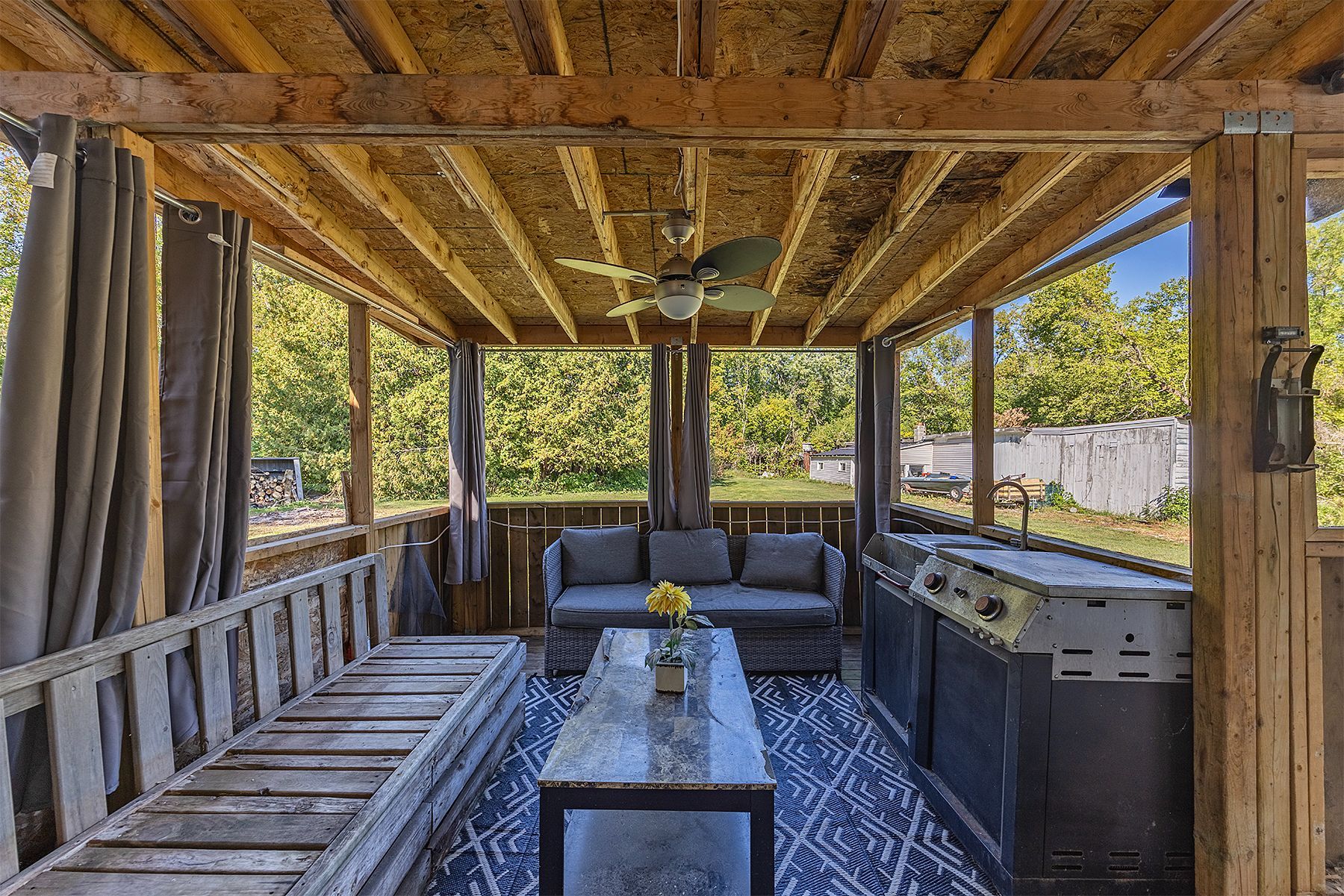• Outdoor covered deck and hot tub for relaxation and entertaining.
