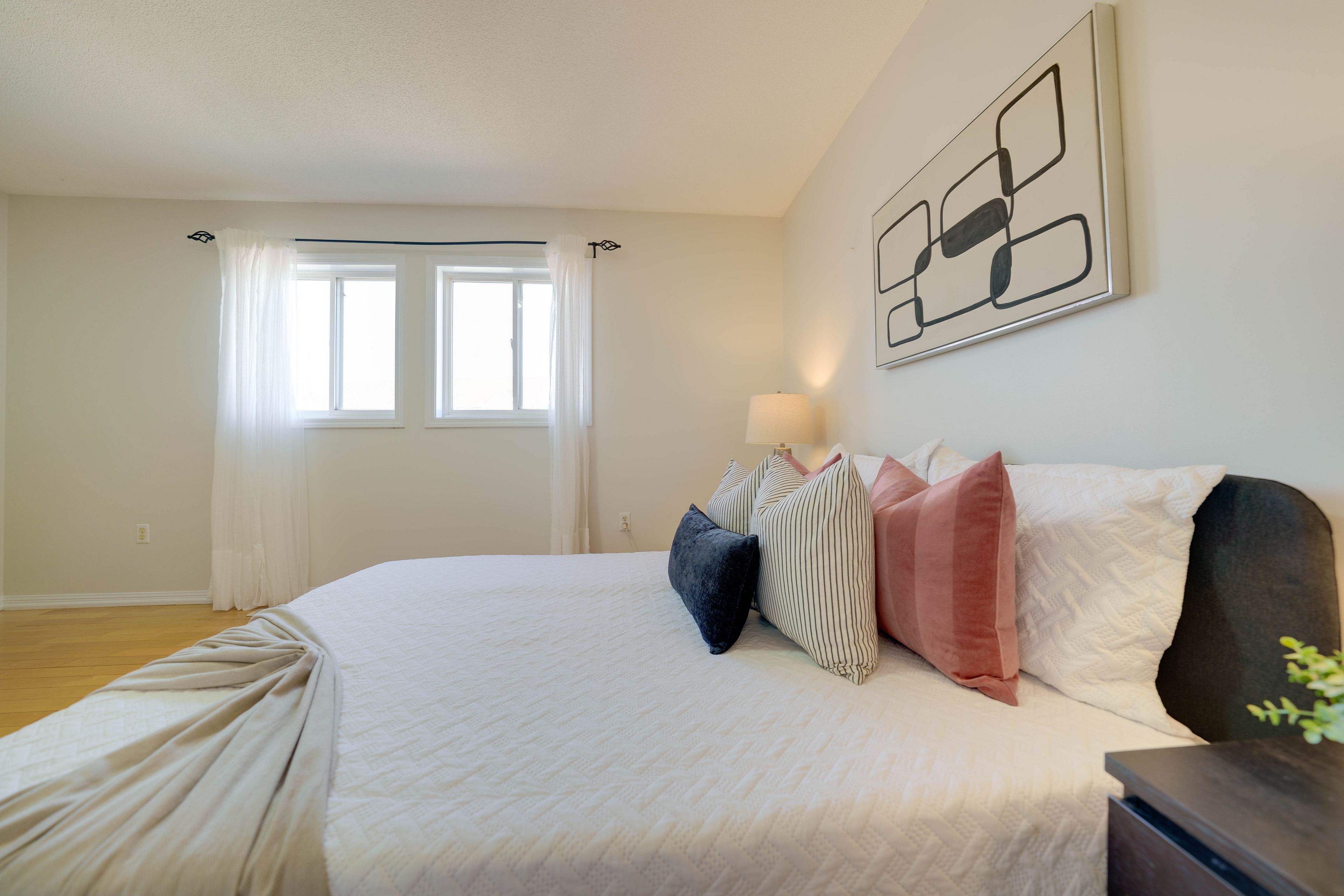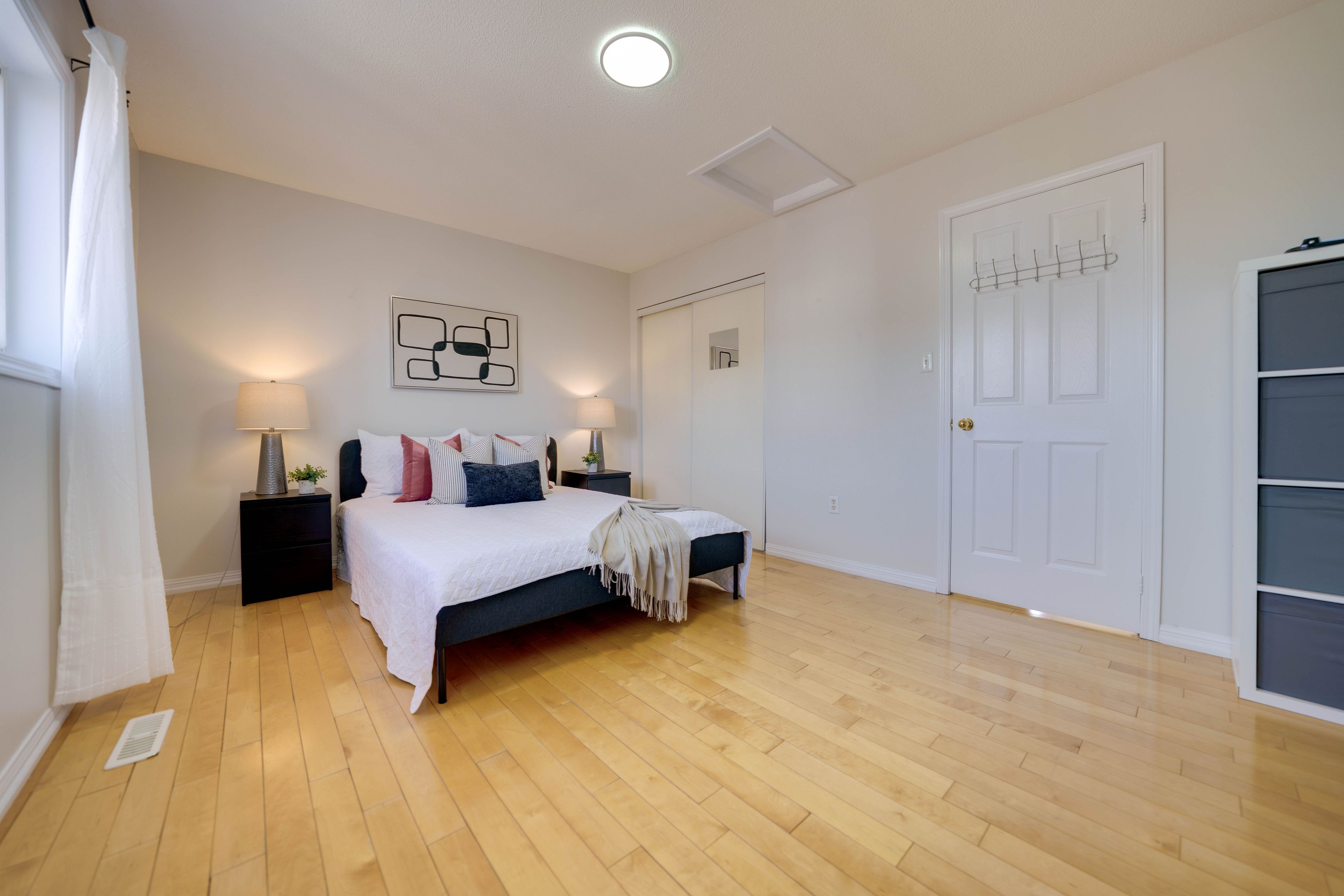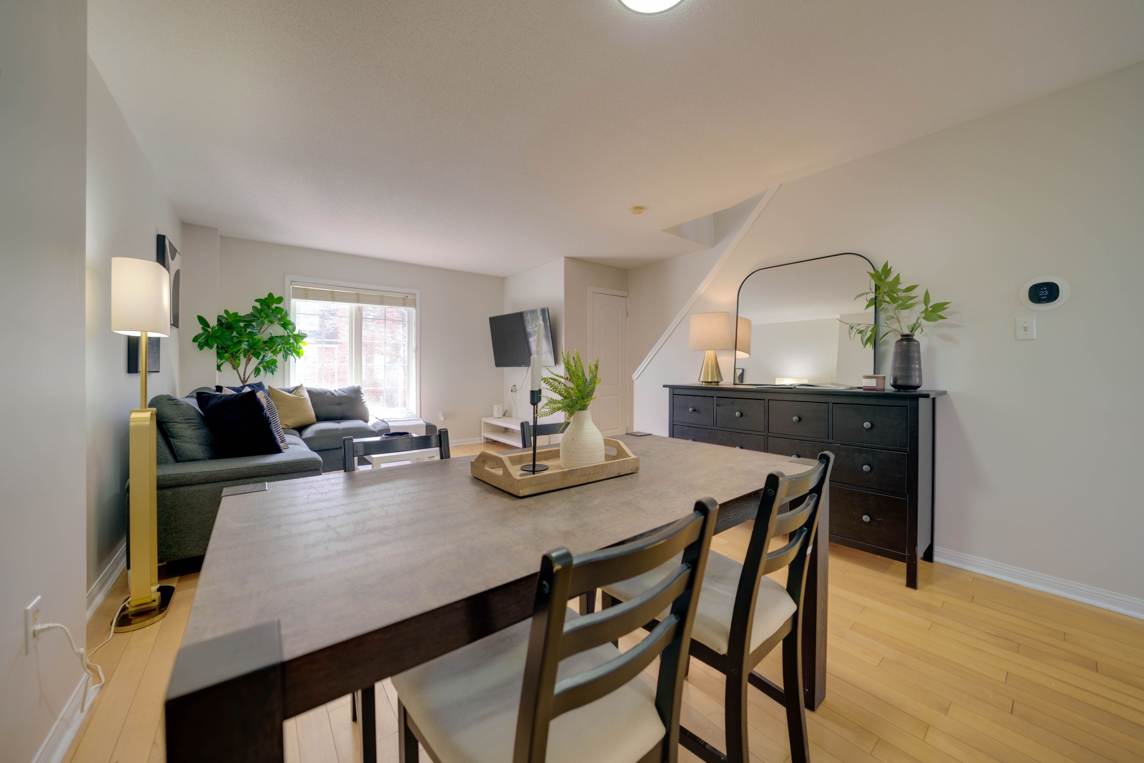 Imagine living in a townhome right in the heart of central mississauga, all for just a $195 condo fee!! And it's nestled in a top-rated school district! ***as a first time homebuyer, this one checks all your boxes.*** here's what you'll love about this place: **there's a main floor bedroom with a full bathroom, perfect for extended family or a teenager who craves their own space or you can rent out for extra cash. **not to mention, it's got a beautiful open concept kitchen adorned with quartz counters, sleek white maple cabinets, stainless steel appliances + gas stove & gorgeous chimney hood, and a modern new backsplash. **picture yourself sipping coffee on the large balcony, or relaxing with friends in the fully fenced backyard patio. **this home doesn't just stop at good looks. It's practical too with hardwood flooring throughout, no carpets in sight! **the wrought iron staircase adds a touch of elegance, and the king-sized bedrooms come with a renovated bathroom that ticks the modern box. **updated lighting fixtures, fresh new paint, a powder room and inside access to the attached garage make this home move-in ready. **with a neighborhood park next door and easy access to erin mills town centre, highway 403, the hospital, local plazas, movie theaters, and restaurants, you'll be living in the midst of convenience without sacrificing peace and quiet. Don't miss this is a one of a kind designer elegance!
