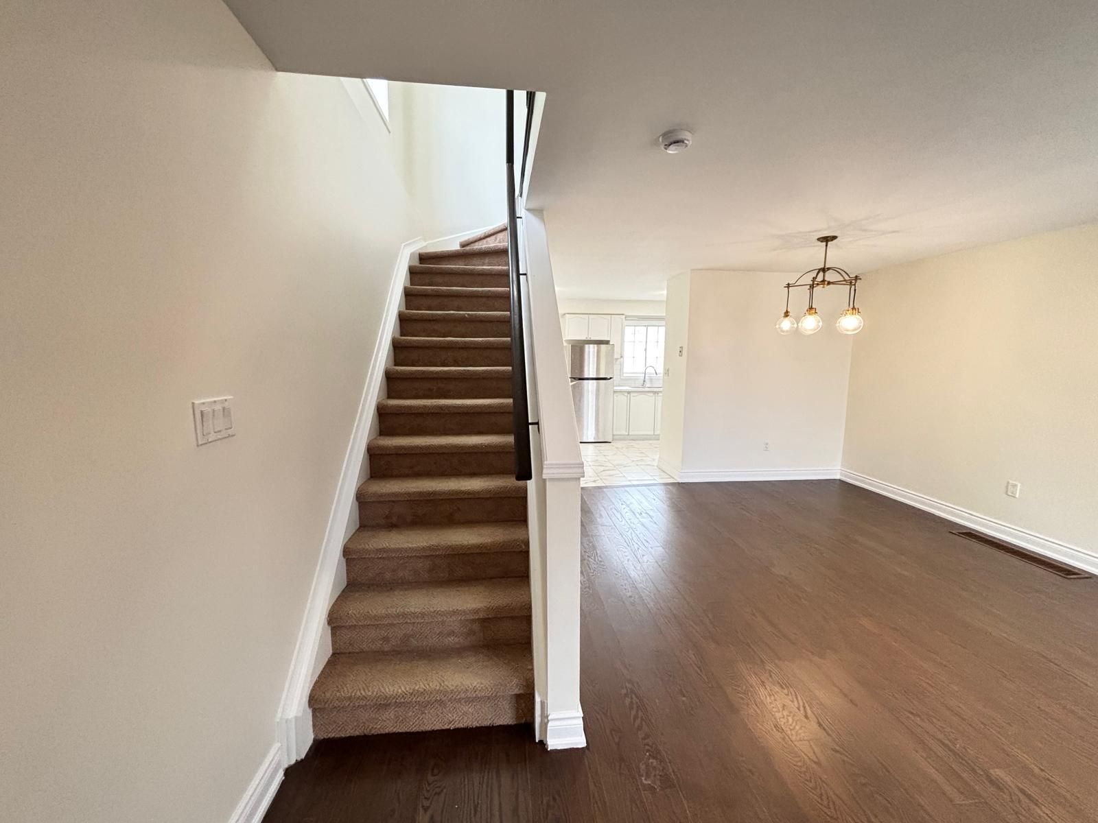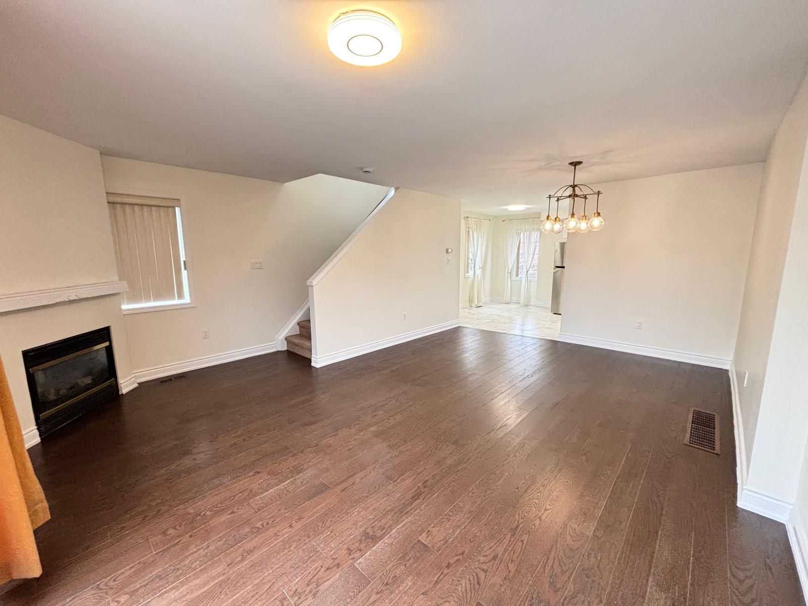 Experience premium urban living in this freshly painted executive end unit townhome situated in a prime mississauga enclave. This sophisticated residence features a modern kitchen with granite countertops and a stylish backsplash, complemented by beautiful flooring and a sun drenched interior. The versatile main floor flex space offers the perfect layout for an additional bedroom, home office, or kids play area, while the extra large family room with a cozy fireplace on the second floor provides an ideal space for relaxation. Retreat to the primary bedroom featuring a spacious walk in closet for ample storage and organization. Step out onto the expansive private balcony to enjoy a tranquil retreat surrounded by mature trees and professional landscaping. For ultimate convenience, this home includes two dedicated parking spaces with direct interior garage entry and is located steps away from visitor parking for your guests. Perfectly balanced between nature and transit, you are just a short walk from the erindale go station and the riverwood conservancy. Professionally managed by condo1 property management inc. Some photos have been virtually staged for visualization purposes only.