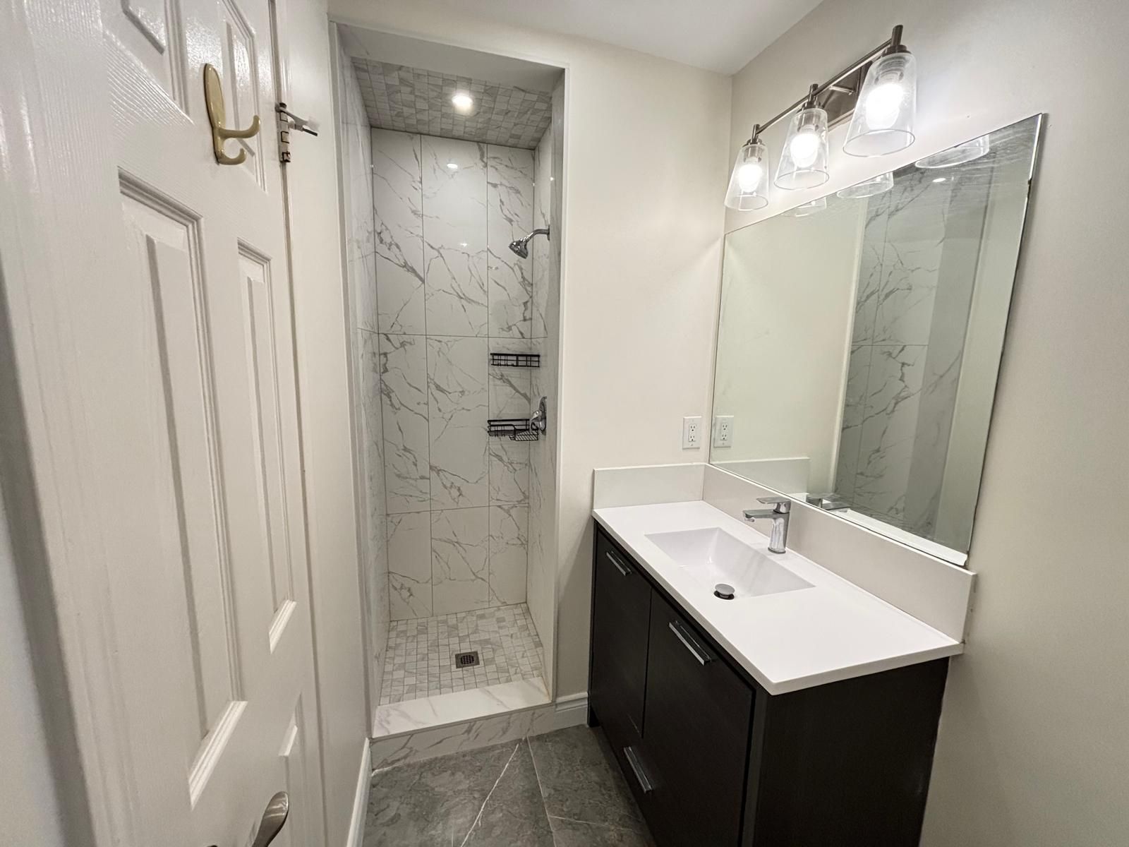 • Modern kitchen with granite countertops and stylish backsplash for an upscale feel.