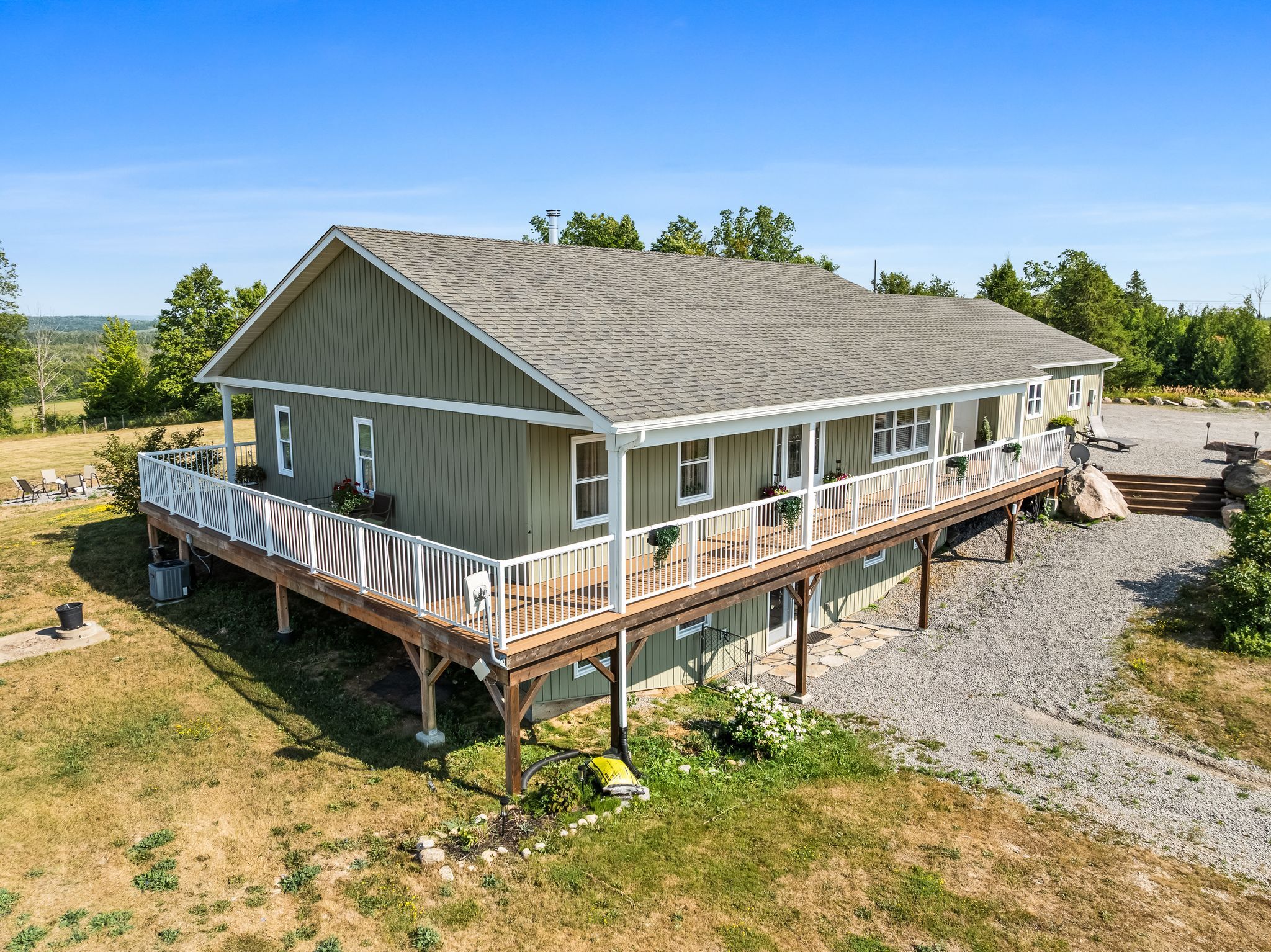 Incredible opportunity 273 acres with agricultural & industrial zoning on the otonabee river. A rare and versatile offering! Set on an expansive 273-acre parcel with over 2,000 feet of frontage along the scenic otonabee river, this property combines agricultural and industrial zoning ideal for a wide range of uses. While agriculture is central, you could also establish a riverside campground, horse stables, a commercial kennel, or many industrial permitted uses such as the current auto recycling business. The property features a modern 2,124 sq ft commercial building (built in 2020), a spacious 3,650 sq ft barn, and a beautifully designed bungalow constructed approximately 10 years ago. This stunning home offers about 3,000 sq ft of finished living space, including a fully finished walkout lower level. Enjoy high-end finishes throughout, with hardwood flooring on the main level and in-floor radiant heated vinyl flooring downstairs. The bright and spacious lower level offers in-law suite potential, featuring a second kitchen, laundry, and a walkout to the backyard. The homes warm farmhouse charm is enhanced by a custom trex wraparound deck, perfect for taking in breathtaking panoramic views. Ideal for a hobby farm, boating enthusiasts, horseback riding, or exploring the private trails for hiking, atv'ing, or dirt biking, this one-of-a-kind property truly offers something for everyone.