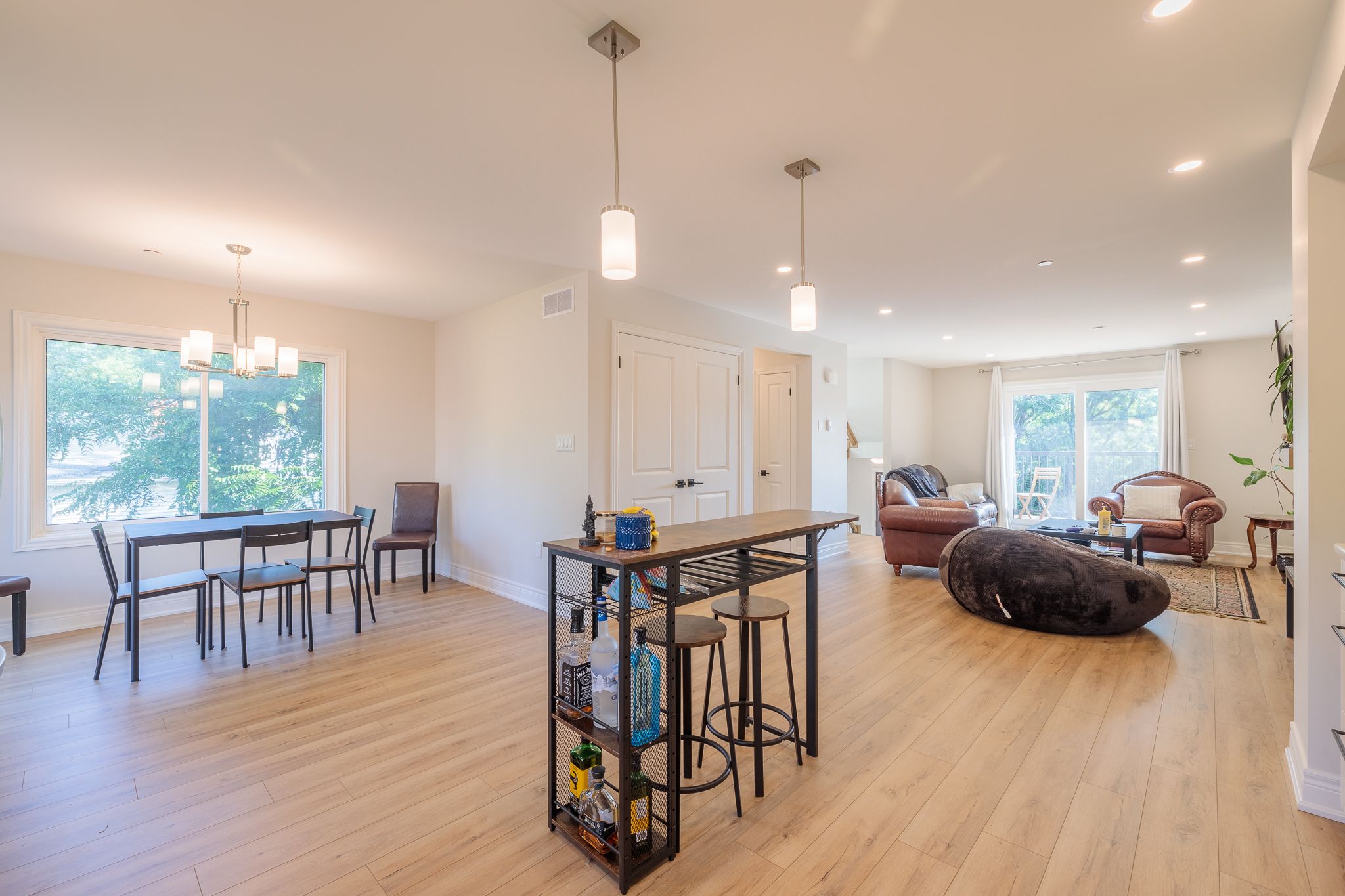 Welcome to this beautifully designed end unit townhome featuring a unique layout with 3 bedrooms, 2. 5 baths, and approximately 1,600 square feet of living space. Perfectly positioned to capture natural light from multiple exposures, this home feels bright and airy throughout thanks to its many windows and neutral interior décor. The front balcony offers unobstructed views - an ideal spot for morning coffee - while the rear deck and separate basement walkout provide extra options for outdoor living and entertaining. Inside, an open-concept main level combines living, dining, and kitchen spaces seamlessly, creating a welcoming flow for both daily life and gatherings. Upstairs, you'll find three well-proportioned bedrooms, including a spacious primary suite with ample closet space. The attached garage adds convenience, and the finished basement walkout offers flexible use for a family room, home office, or guest area.