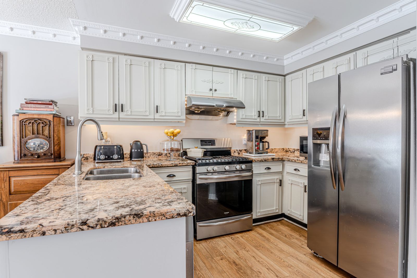Backing onto ep land & ravine views with over 3,200 finished sq ft & a backyard setup with an oversized deck, hard-top gazebo, & hot tub! Tucked onto a 60 x 120 ft lot backing onto ep land and a quiet ravine, this detached home offers treed views behind you and a setting that feels calm and tucked away. An attached 2-car garage keeps things easy, while the backyard is ready for real use with an oversized deck, hot tub, landscaped space to garden or play, and a hard-top gazebo that turns ordinary weeknights into nights you can stay outside a little longer. Over 3,200 finished sq ft gives everyone room to spread out without losing that comfortable, liveable feel, offering 6 bedrooms and 4 bathrooms that suit growing or multi-generational families. Upgrades add warmth throughout, from the solid oak staircase and hardwood flooring to crown moulding, modern paint tones, and finishes that feel curated and current. The kitchen delivers updated stone counters, creamy white cabinetry, a pantry, and stainless steel appliances, including a gas stove, flowing into a bright breakfast area with a walkout that keeps backyard time effortless. Multiple living spaces let you set your own pace, including a family room with a wood-burning fireplace and brick surround, plus a combined living and dining area with a bow-style bay window framing the front yard. Upstairs, 4 generously sized bedrooms include a primary suite with two double closets and a private 4-piece ensuite, while the remaining bedrooms are served by a main 3-piece bath. Downstairs, the finished basement adds in-law potential with a large rec room featuring a sink that works beautifully as a wet bar, 2 additional bedrooms, and a full bathroom. Close to schools, shopping, dining, and highway 400, plus an easy walk to lampman lane park with tennis courts, a skateboard park, splash pads, playgrounds, a multi-purpose basketball court, shaded seating, open lawn space, and an outdoor rink.