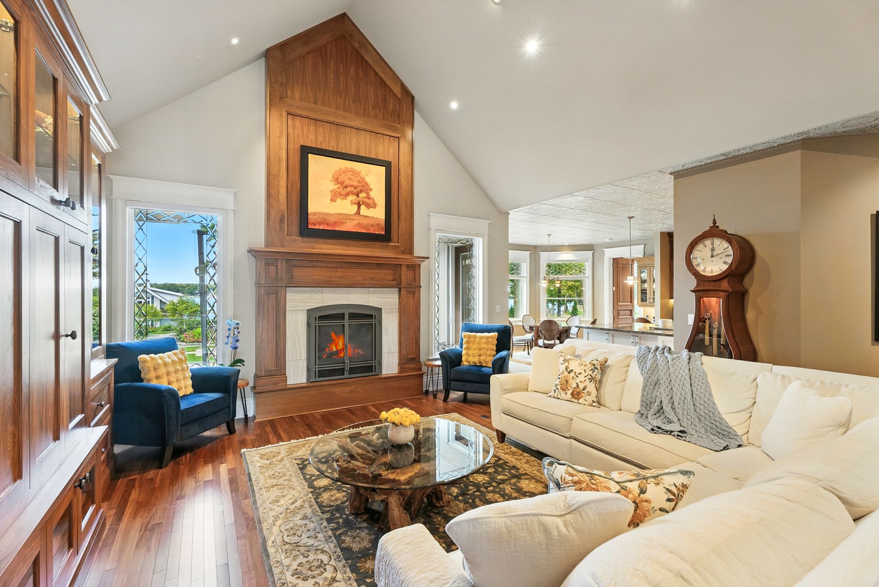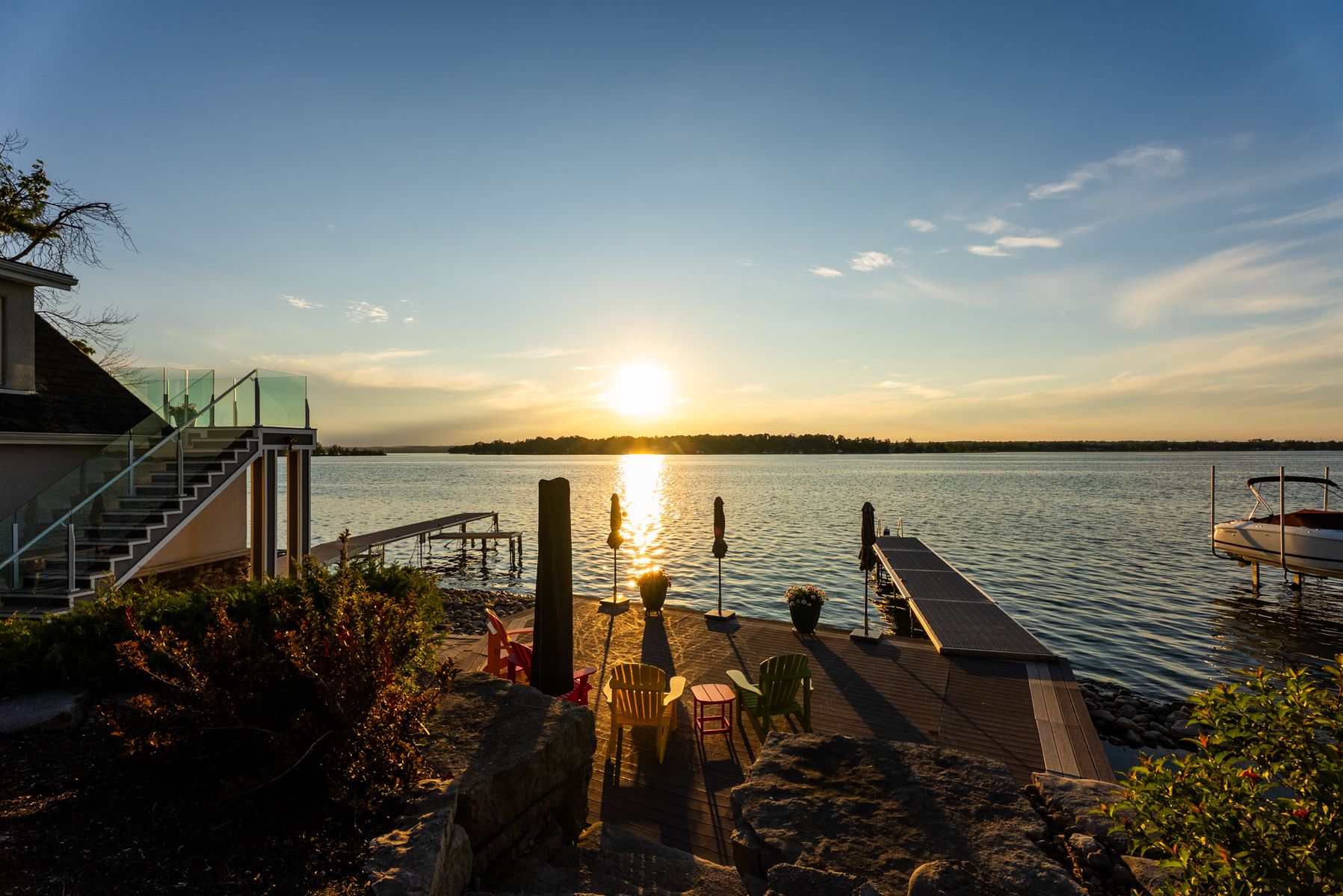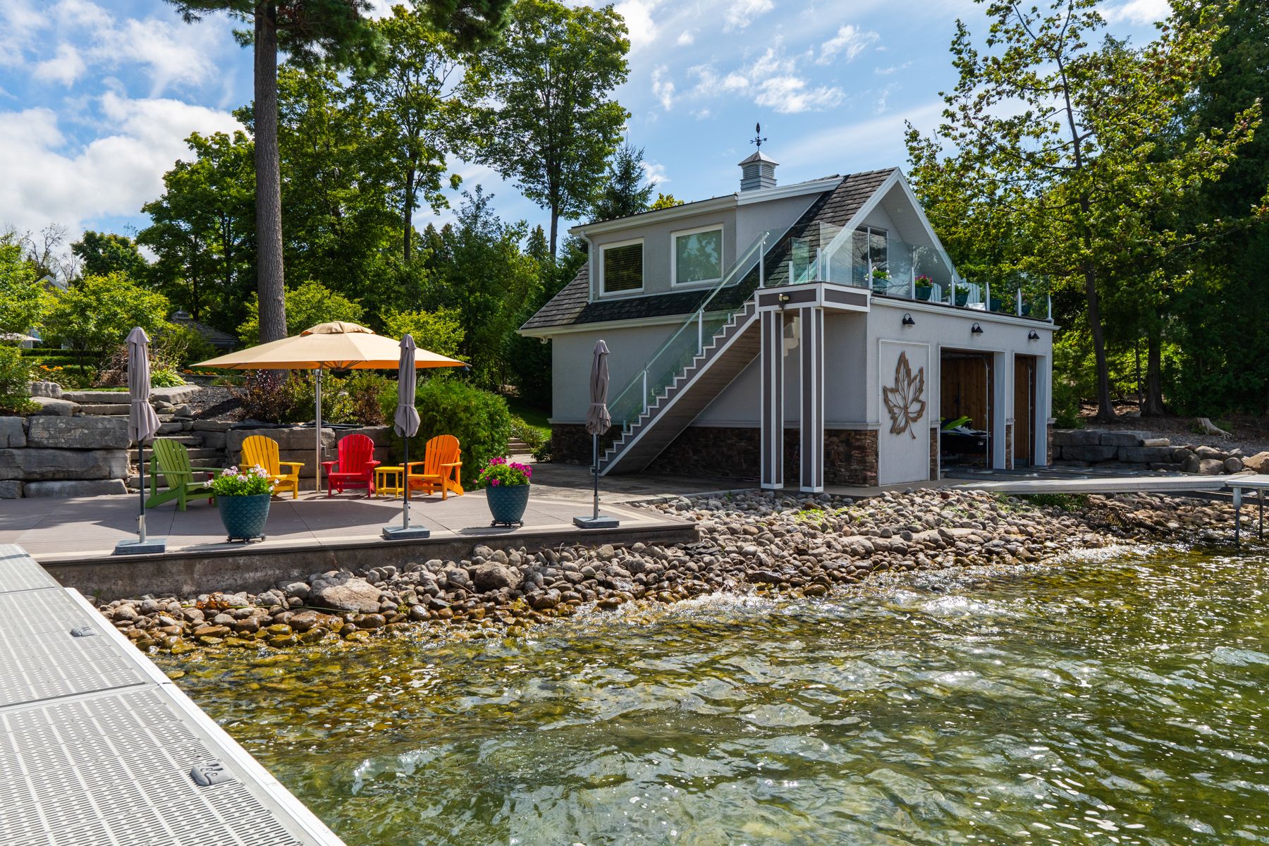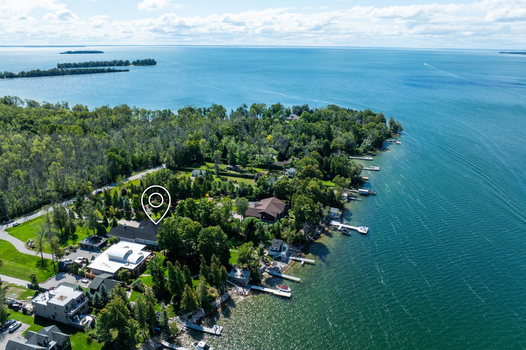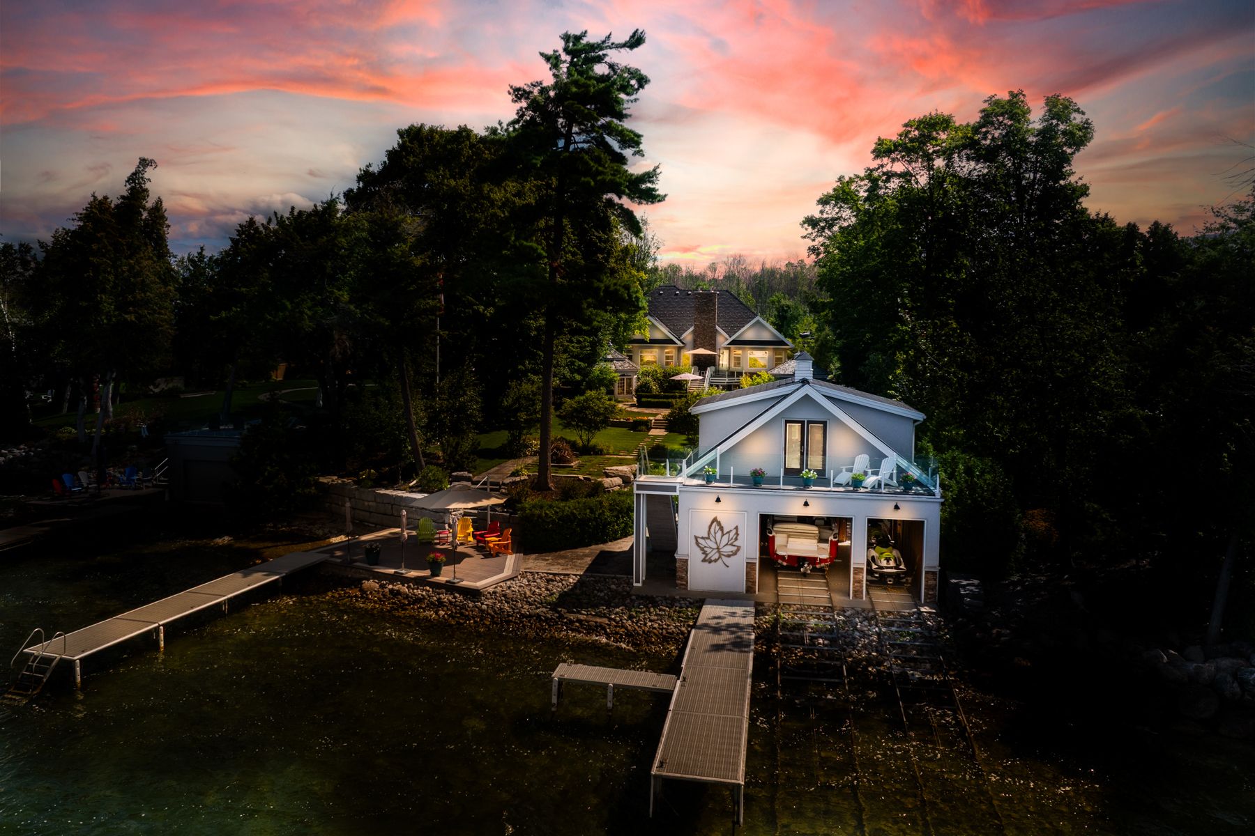 Curated with pure intention, exceptionally executed - here's a spectacular opportunity to own one of lake simcoe's most admirable waterfront estates! This custom-built residence offers over 6,000 sq ft of refined living space on 1. 2 acres of professionally landscaped grounds. With 107 feet of prime western shoreline, the property is perfectly positioned for unforgettable sunsets and an unmatched lakeside lifestyle. Crafted by award-winning west brennen construction, the home blends timeless elegance with modern performance. Solid 8' walnut doors and flooring, intricate plaster and imported tin ceiling details, natural quartzite, granite, and leathered granite surfaces create a sense of warmth, sophistication, and enduring quality. The layout features four spacious bedrooms, a dedicated office, and five impeccably designed bathrooms, including a spa-like primary ensuite featured in house & home magazine. The walk-out lower level offers 9. 5' ceilings, a custom media room, a games area, and an english-style pub with cherry wood millwork, marble floors, and granite counters, the ultimate entertaining space. Smart home technology controls lighting, irrigation, and security, while premium mechanical systems, including 400-amp service and a 30kw generac generator, provide year-round comfort and reliability. Outside, park-inspired landscaping surrounds an outdoor kitchen, waterfall feature, and a charming gazebo ready for a hot tub or lakeside lounging. The heated four-car garage with rhino-coated floors and custom storage adds practicality to luxury. At the waters edge, a rare dry boathouse with finished space above offers excellent flexibility ideal for guests, a studio, or office, while two marine railways, deep water access, and twin 40' docks easily accommodate a 28' boat and seadoos. With flawless craftsmanship, modern functionality, and an unbeatable waterfront setting, this property offers a truly elevated lifestyle where every detail has been thoughtfully executed.