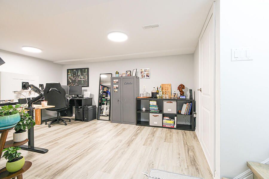 Experience the ideal fusion of comfort, style, and convenience in this beautifully updated bungalow, perfectly positioned in the sought-after inch park community. This home presents a rare turnkey opportunity, having been thoughtfully renovated from top to bottom. Step into a bright and spacious open-concept living and kitchen area, where natural light pours in. The fully updated kitchen (2022) boasts premium ge st.-steel appliances, a floor-to-ceiling pantry, and a convenient coffee or dry bar for added storage. The peninsula offers ample space for meal prep, casual dining, and entertaining, all with unobstructed views from the front to the back of the home. Luxury vinyl plank flooring, fresh wall finishes, crown-molding and elegant tile work span both levels. Dimmable pot lights on the main floor (2022) set the perfect mood. The hvac system has been enhanced with upgraded venting (2022) for improved airflow, complemented by updated electrical (2022) and plumbing systems (2025). The main level features two comfortable bedrooms and a stylish 4-piece bathroom. A newly installed staircase (2025) leads to the versatile lower level, which includes a recreation or office space, a third bedroom, and a full bathroom/laundry room (2025) equipped with a ge washer/dryer combo. The utility room offers generous storage and houses an additional fridge/freezer. Outside, enjoy a spacious multi-tiered wooden deck with a natural gas bbq hookup (2022), perfect for outdoor gatherings. The fully fenced backyard is a rare gem, complete with perennial gardens, fruit trees, and vegetable beds plus ample space for future additions or structures. New roof shingles installed in 2025. Spacious driveway with room for 3 vehicles. Upgraded water service line from 1/2 to 3/4 inch. Ideally located just a minutes walk from inch park and close to lime ridge mall, grocery stores & downtown hamilton. Major highways including the linc, 403, and qew are all easily accessible within 5 to 10 minutes.