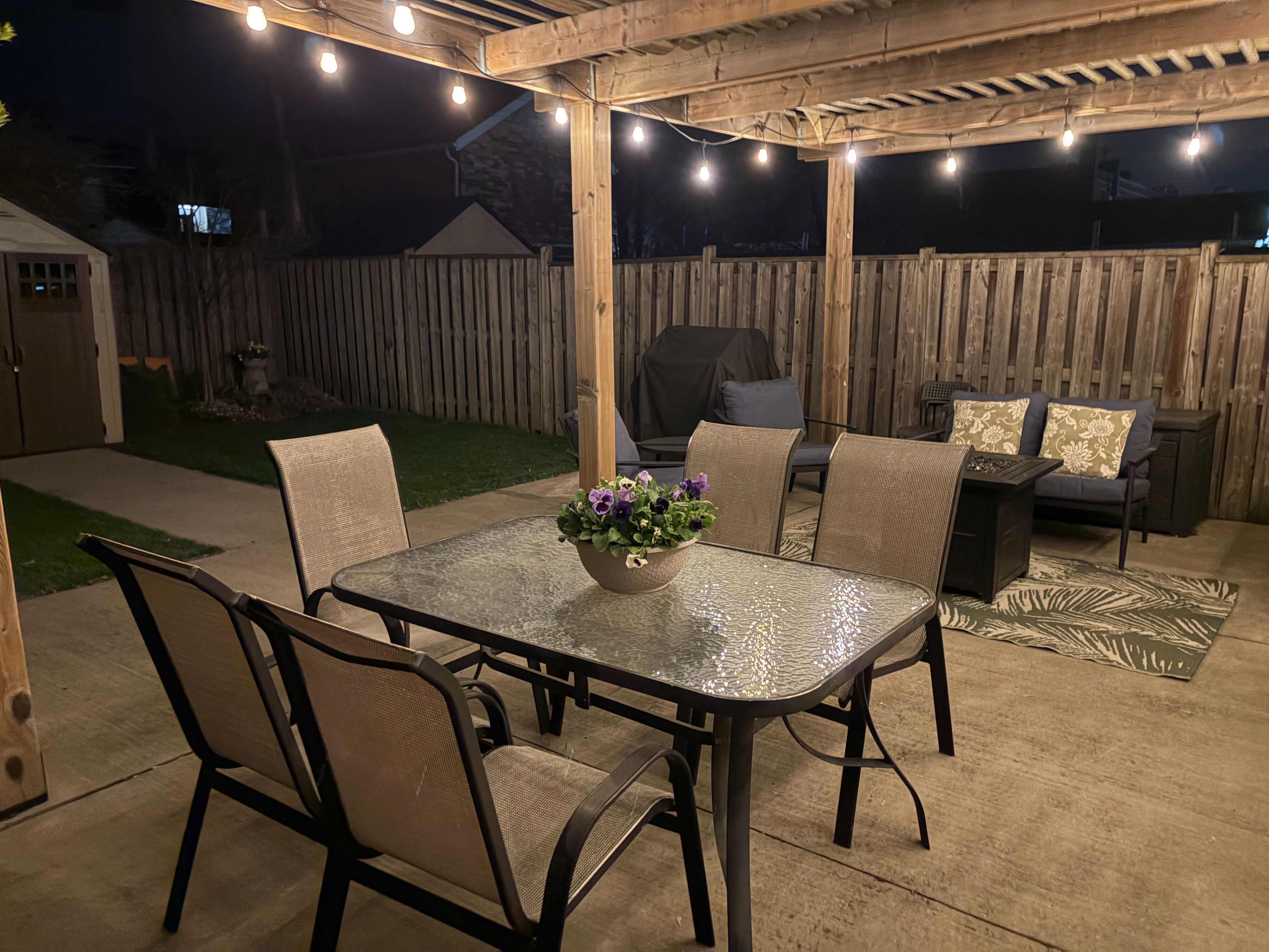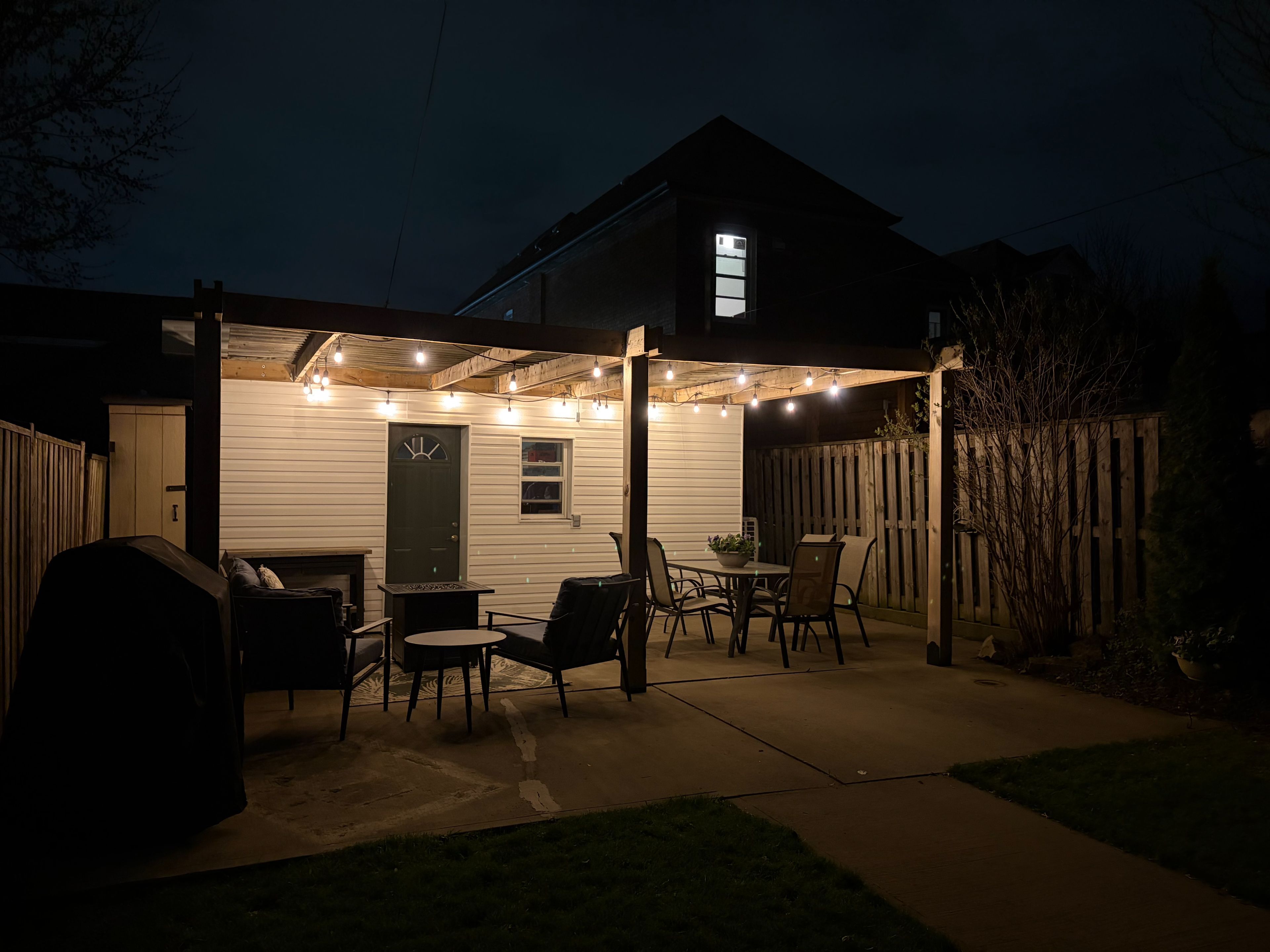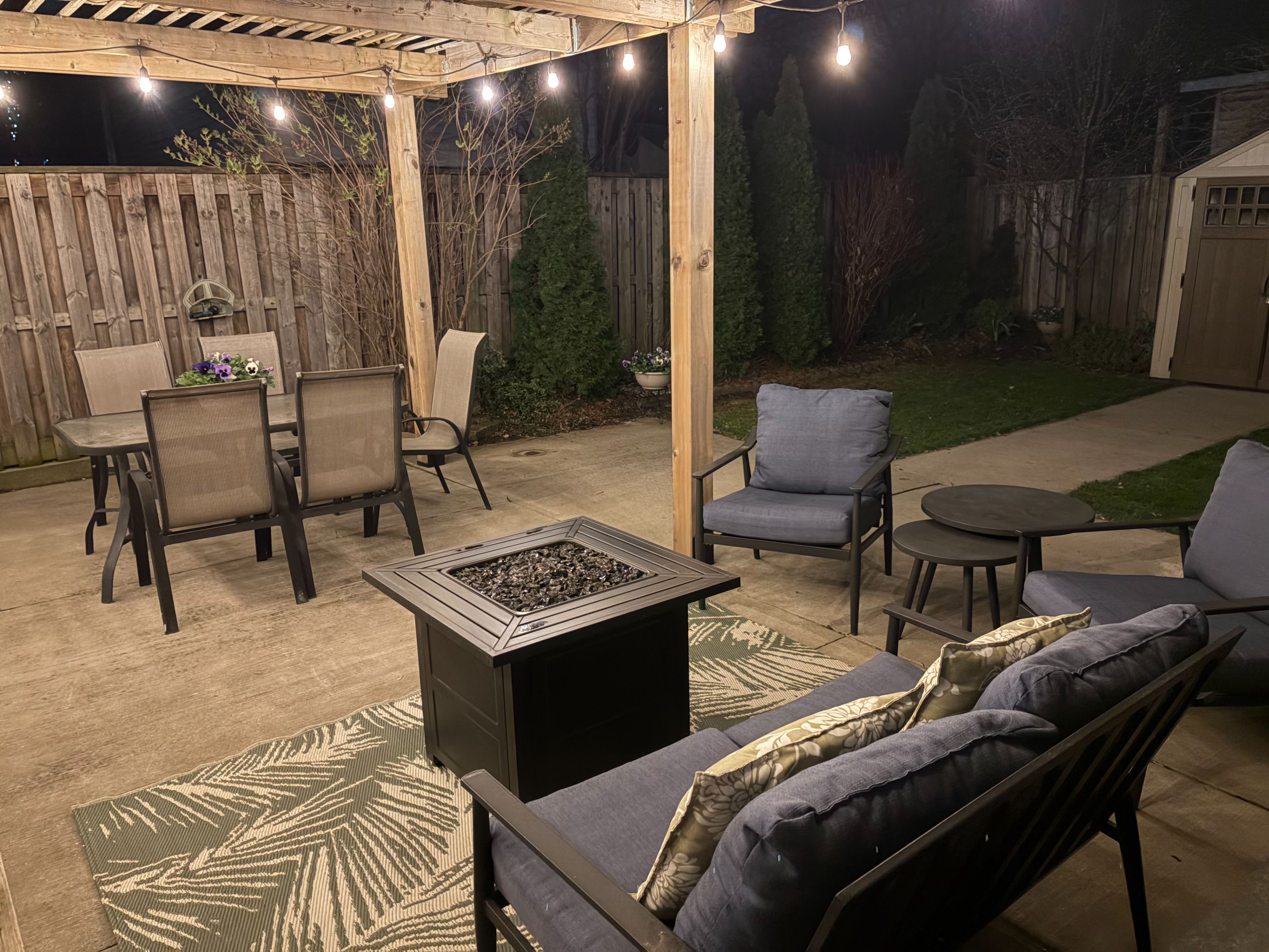 • Private backyard with a pergola, ideal for entertaining and cozy gatherings.