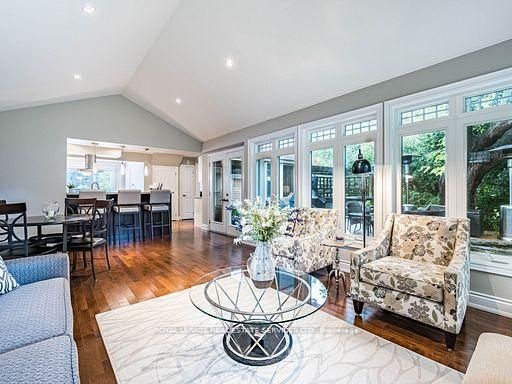 • Breathtaking family room with cathedral ceilings and wrap-around windows for natural light.