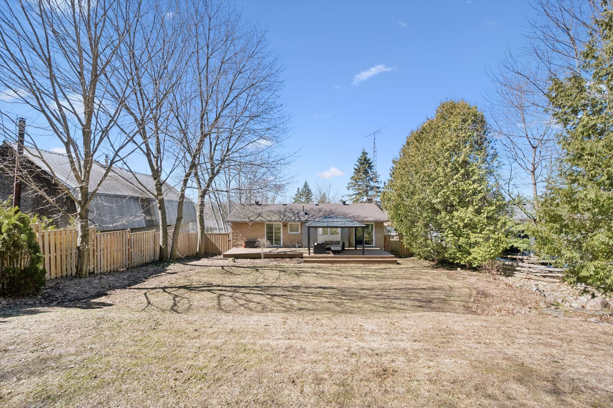 Welcome to 153 harris st, a beautiful 3+2 bedroom, 2-bath raised bungalow nestled in the heart of historic rockwood, completely remodeled with care and exceptionally designed for modern living. Step inside to a chef's kitchen that will take your breath away, featuring white cabinetry, brushed gold hardware, a subway tile backsplash, quartz counters, and an oversized island with breakfast seating - the true heart of this home. The open-concept main level flows effortlessly with sleek hardwood, ceramic tile, modern lighting, and a neutral palette that feels both warm and sophisticated. The primary bedroom and dining room each offer sliding glass walkouts to a fully fenced rear yard, where a sprawling trex. Deck (lifetime warranty!) awaits with multiple seating areas, a gazebo, gas hook up for bbq, and serene forested views that make every evening feel like a retreat. Downstairs, two additional bedrooms (one currently an office), a full bath, and laundry offer exceptional flexibility for a growing or blended family or anyone craving extra space. Every detail has been thoughtfully upgraded between 2019 and 2024 - new roof, windows and doors, furnace and ac, water softener, on-demand water heater (leased), light fixtures, abundant closets and storage, large storage shed in backyard, and electric blinds in communal spaces. Outside, an armour stone buttress and stairs beautifully frame the front entrance with undeniable curb appeal, while exceptionally landscaped front and back yards burst to life through the seasons with daffodils, tulips, irises, peonies, hydrangeas, and more. Just 15 minutes to guelph, 10 to acton, and 25 to the 401. Perhaps this is the home you didn't know you were waiting for.