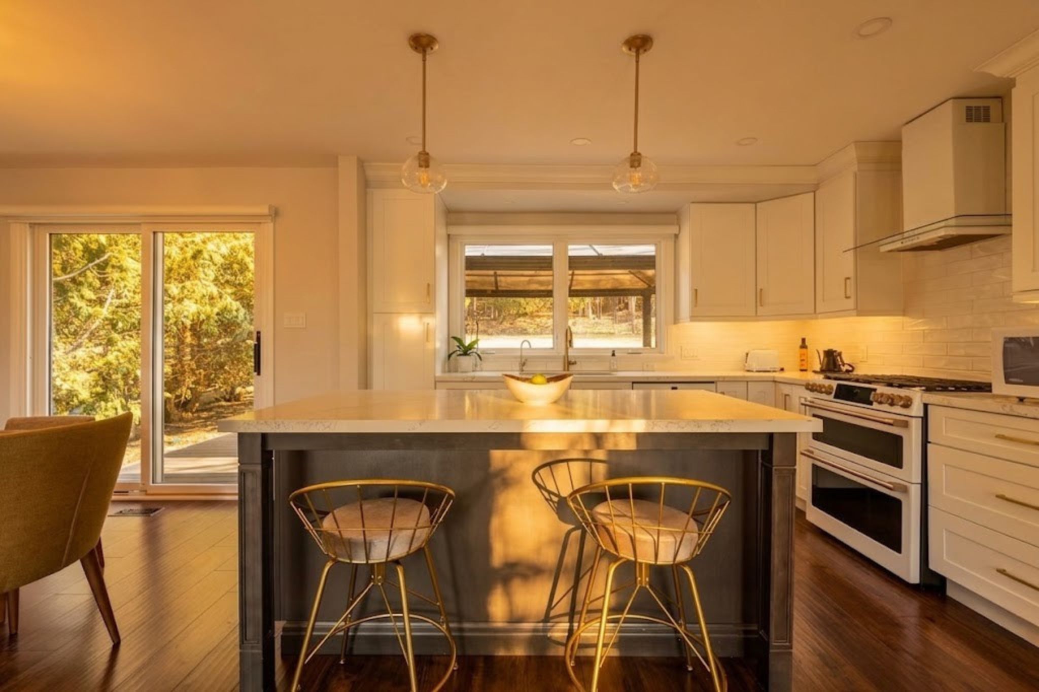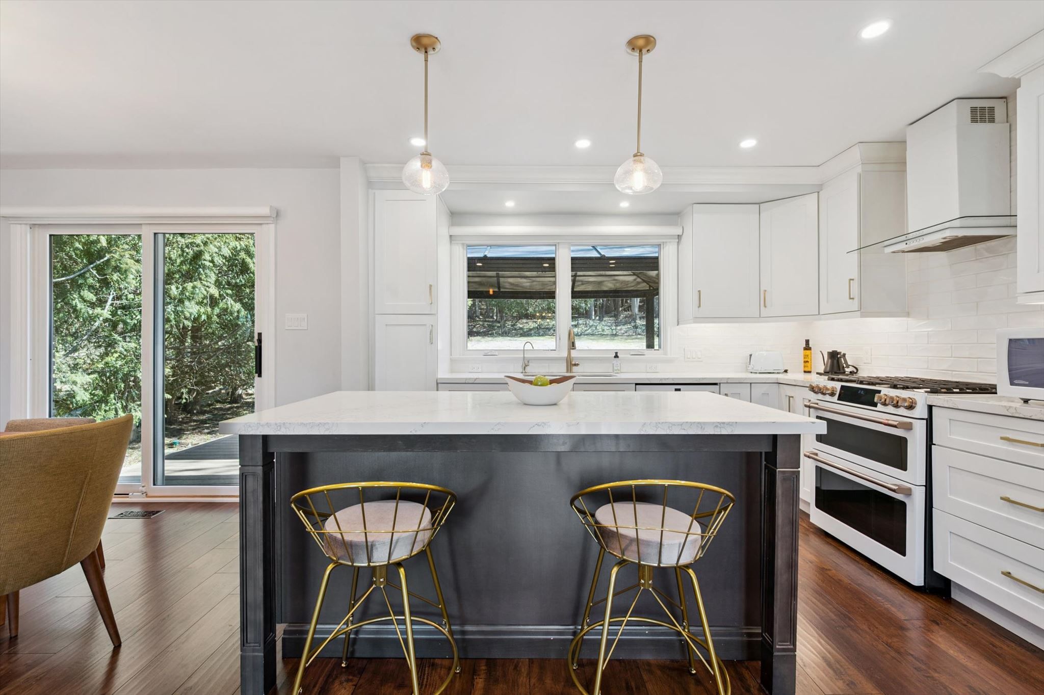 • Stunning chef's kitchen with quartz counters and oversized island.