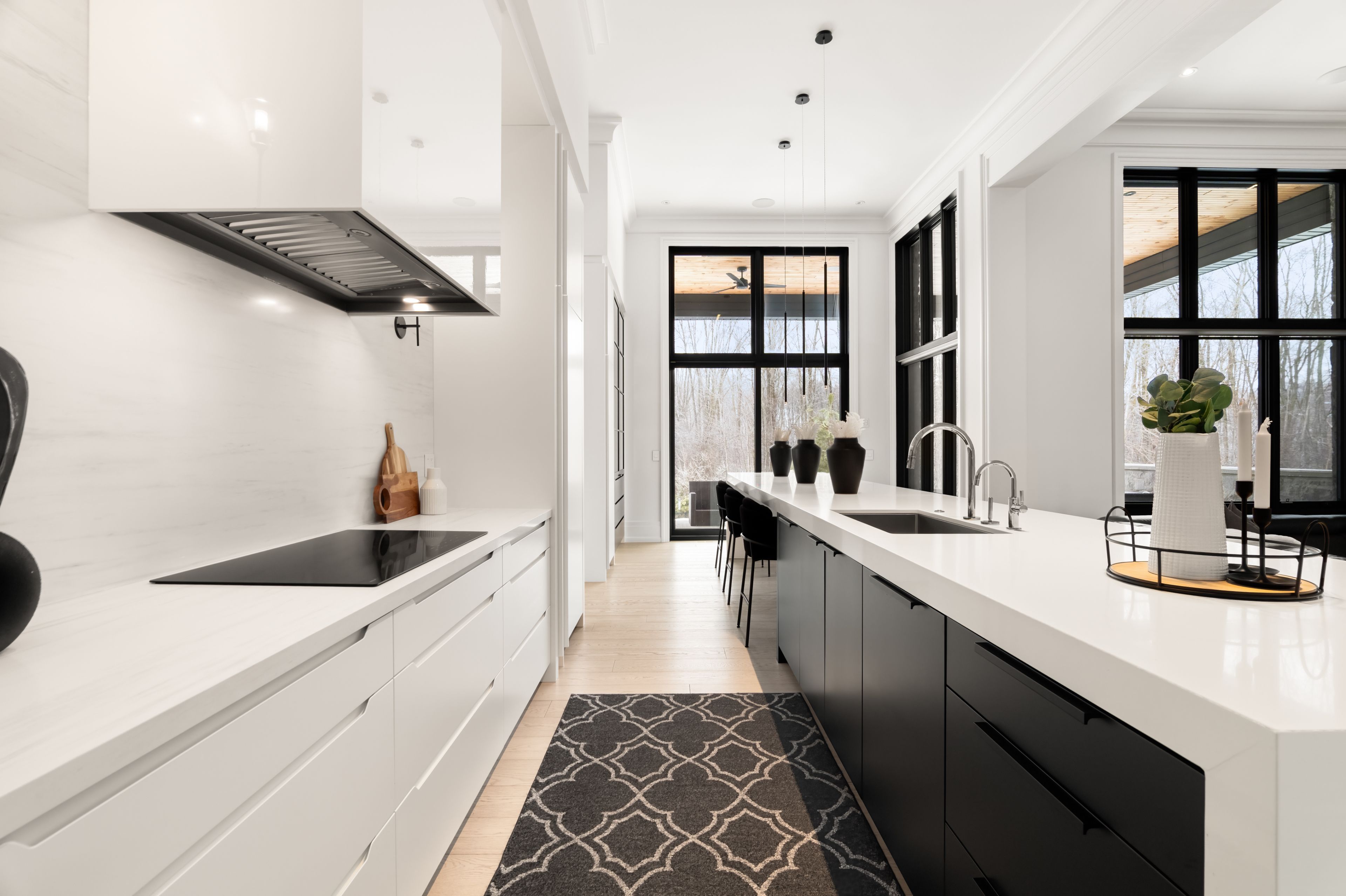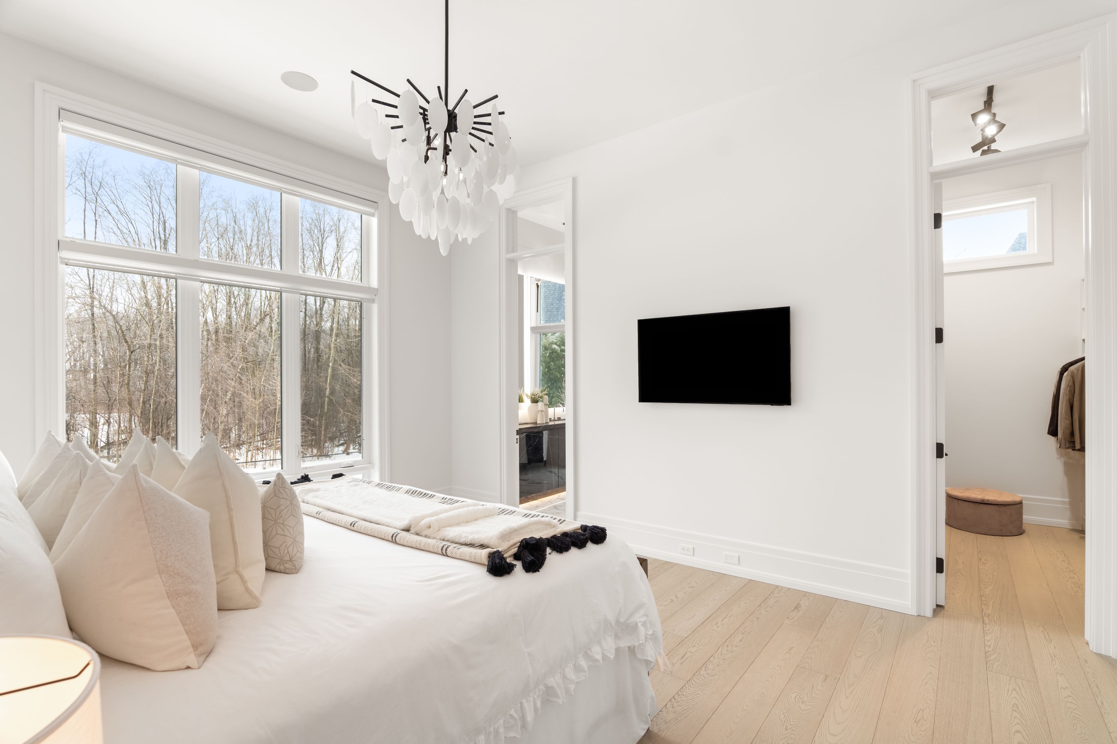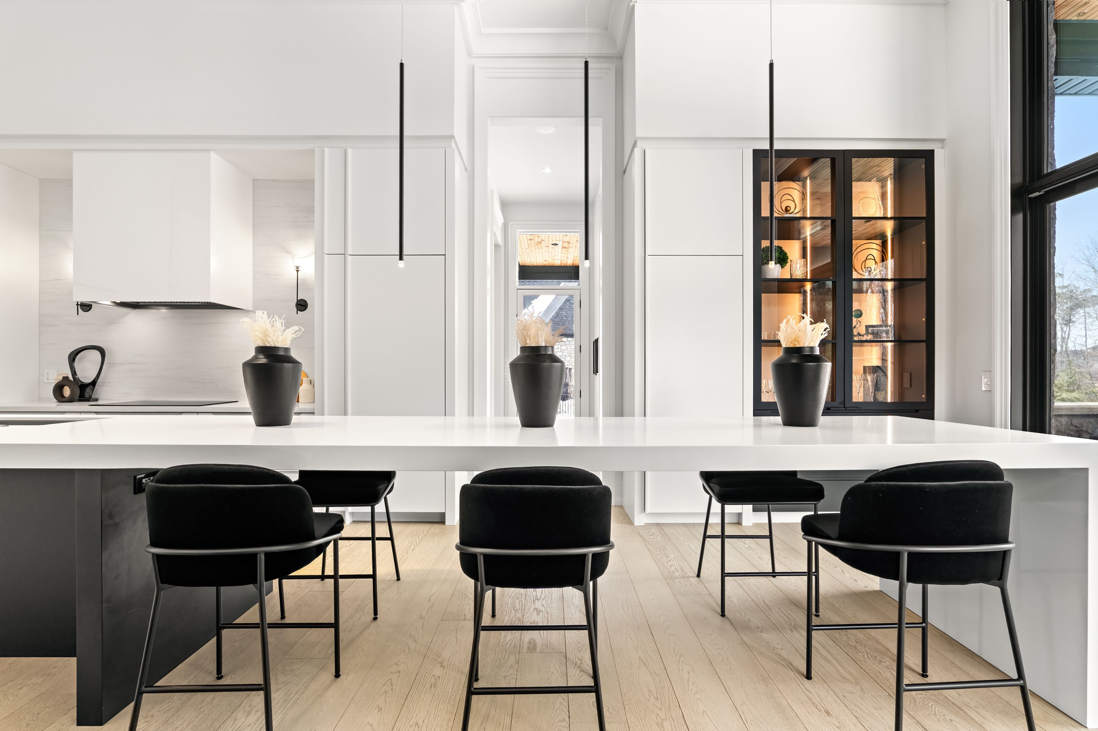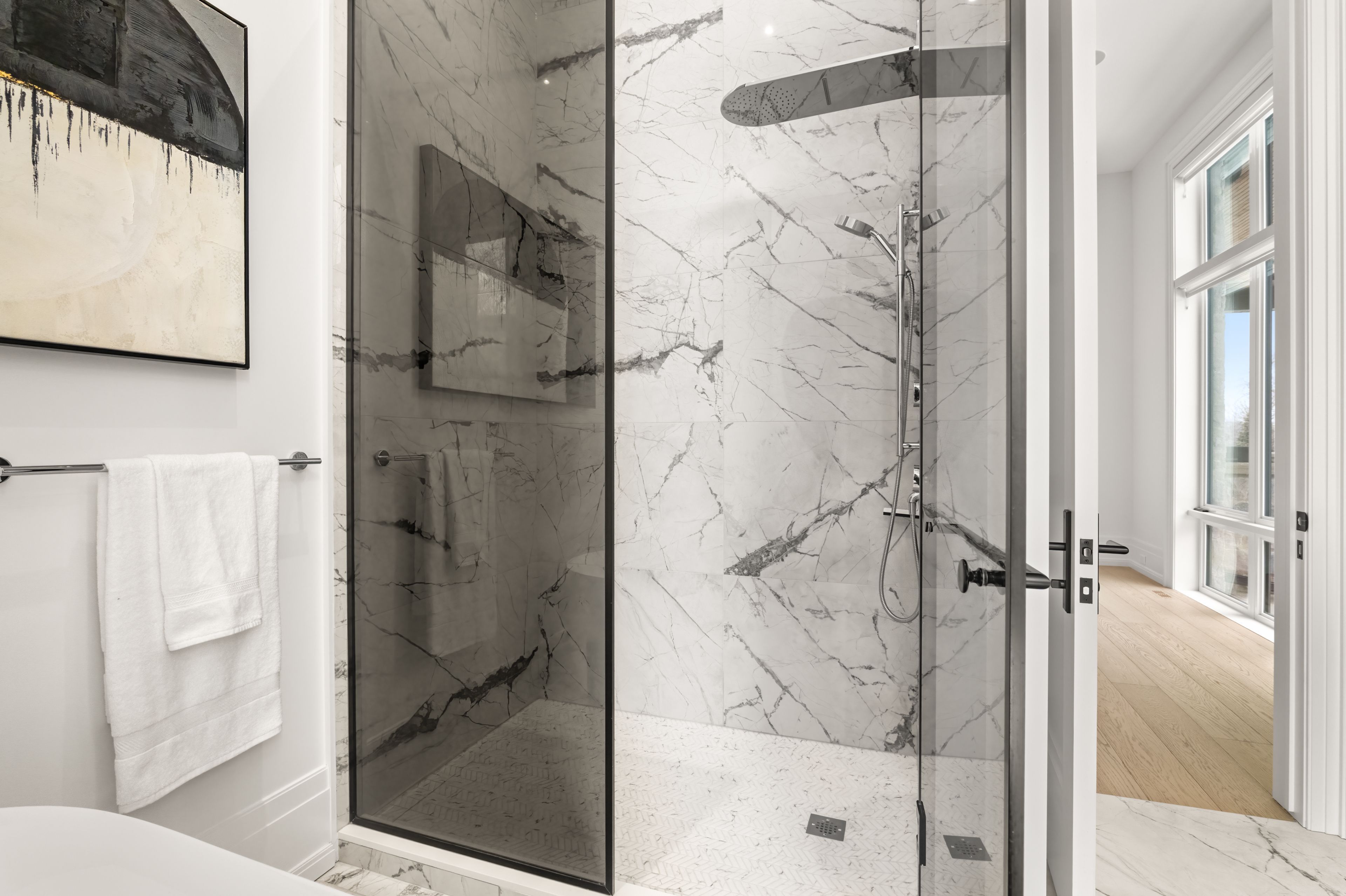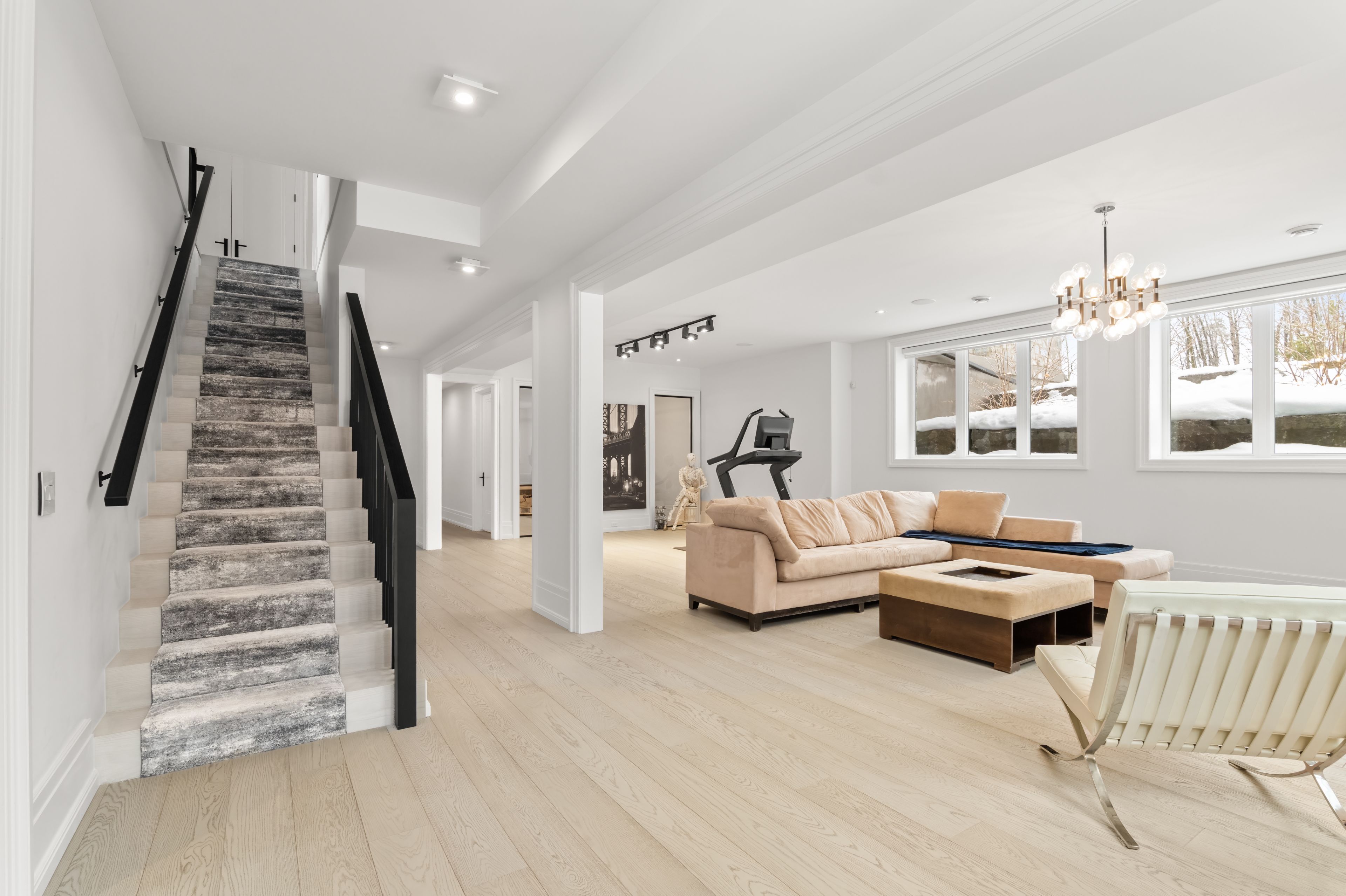 Welcome to life inside heritage lake estates - a private, gated enclave in puslinch known for its mature surroundings and beautiful custom homes. Set on a premium half-acre pie-shaped lot backing onto mature treelines, this custom stone bungalow offers privacy without compromise. With 2,252 square feet on the main floor and soaring 14-foot ceilings, the principal living space is defined by symmetry, scale, and natural light. A custom fireplace anchors the living room, while upgraded crown moulding and floor-to-ceiling windows create a refined yet inviting atmosphere. The kitchen and dining area are gallery-inspired in design, centred around a striking 21-foot stone waterfall island with seating for eight. Integrated cabinetry conceals premium wolf appliances for a seamless aesthetic. Heated floors, custom lighting, and electric blinds reflect the many thoughtful upgrades woven throughout the home. Step outside to a covered back patio complete with built-in heaters and an impressive 350 sq ft gas fire feature, overlooking the fenced yard and tranquil forest backdrop - ideal for elevated, year-round outdoor living. The primary suite is a private retreat, offering 12ft ceilings, floor to ceiling windows, a generous walk-in closet and spa-inspired five-piece ensuite with jet spa shower system. Across from this, the well-appointed laundry room and additional main-floor bedroom, featuring with its own ensuite bath and walk-in closet, complete the main level. The fully finished lower level adds two bedrooms, each accompanied by an ensuite bathroom, a spacious recreation room with custom fireplace, dedicated office space, and a home gym - perfectly suited for growing families or multi-generational living. A functional mudroom with built-in cabinetry offers direct access to the heated three-car garage and walk-down access to the basement. 153 heritage lake drive invites you to embrace a quiet kind of luxury, framed by the serenity of puslinch lake.