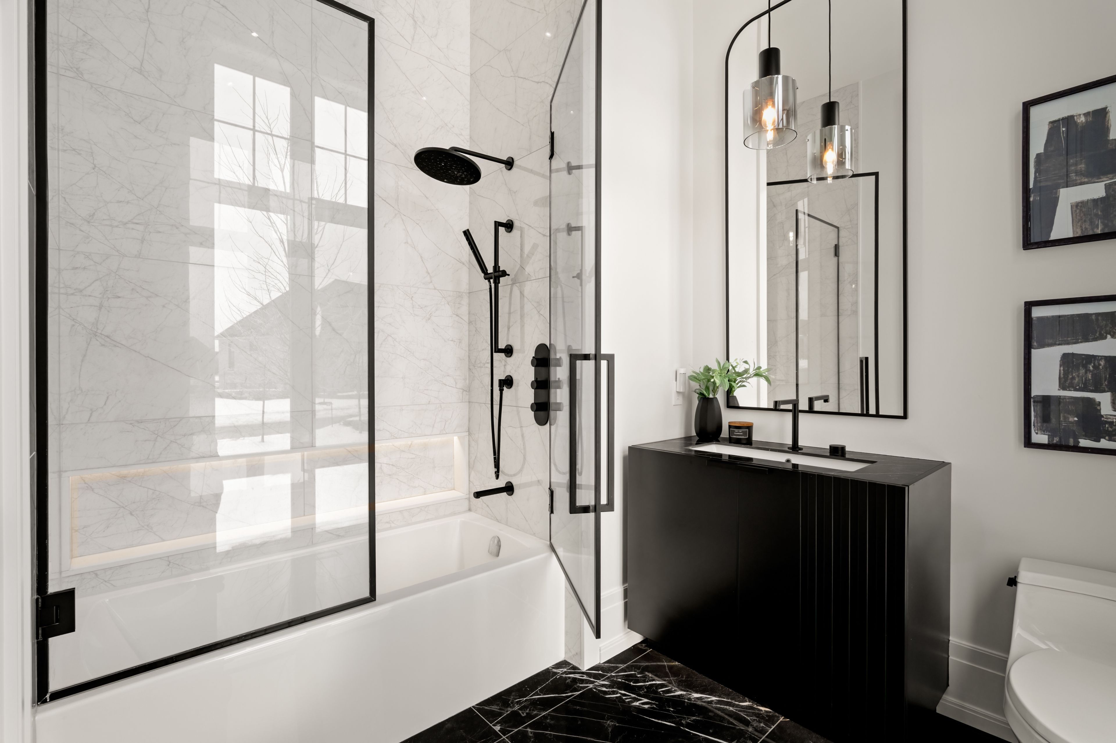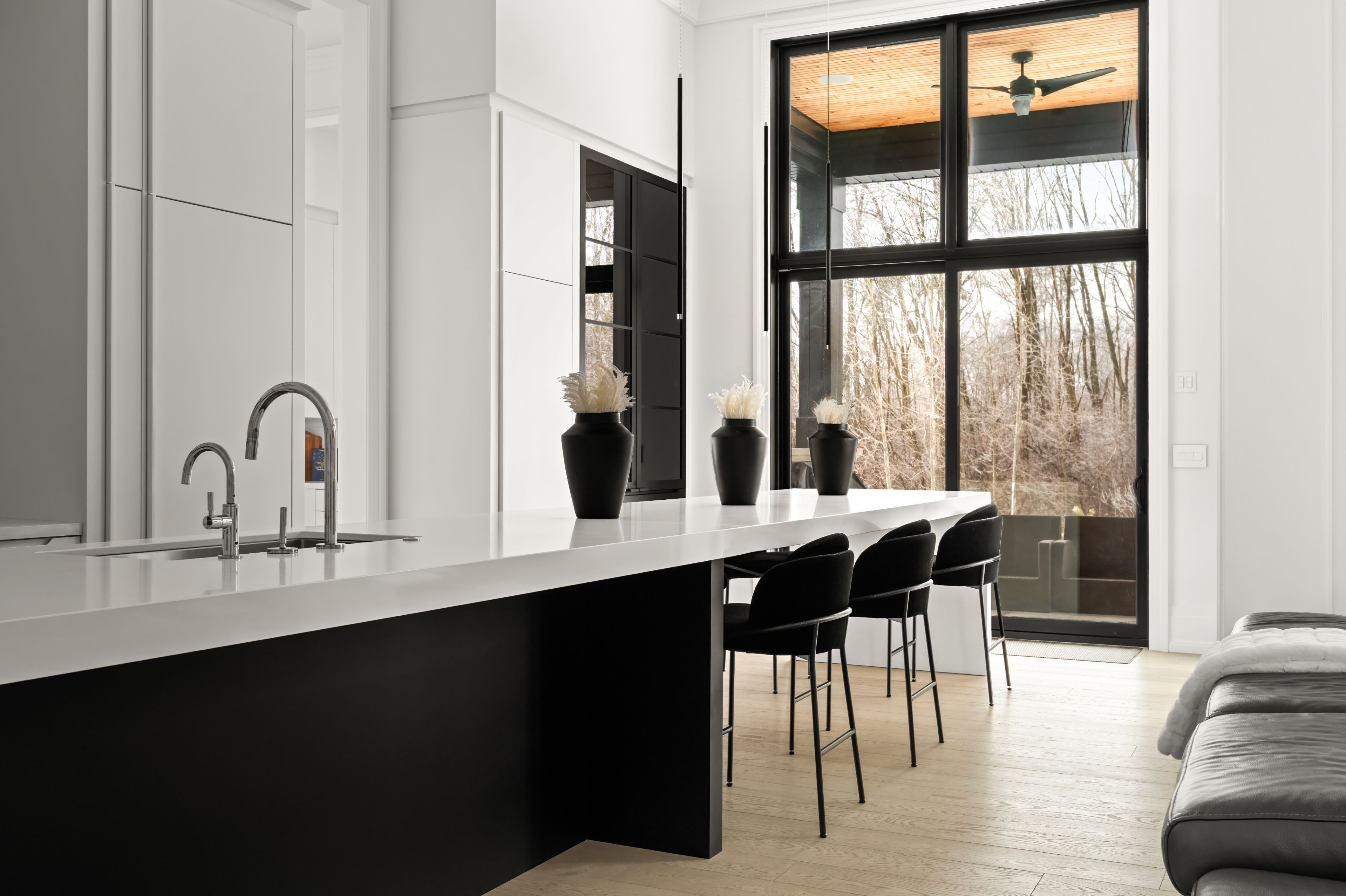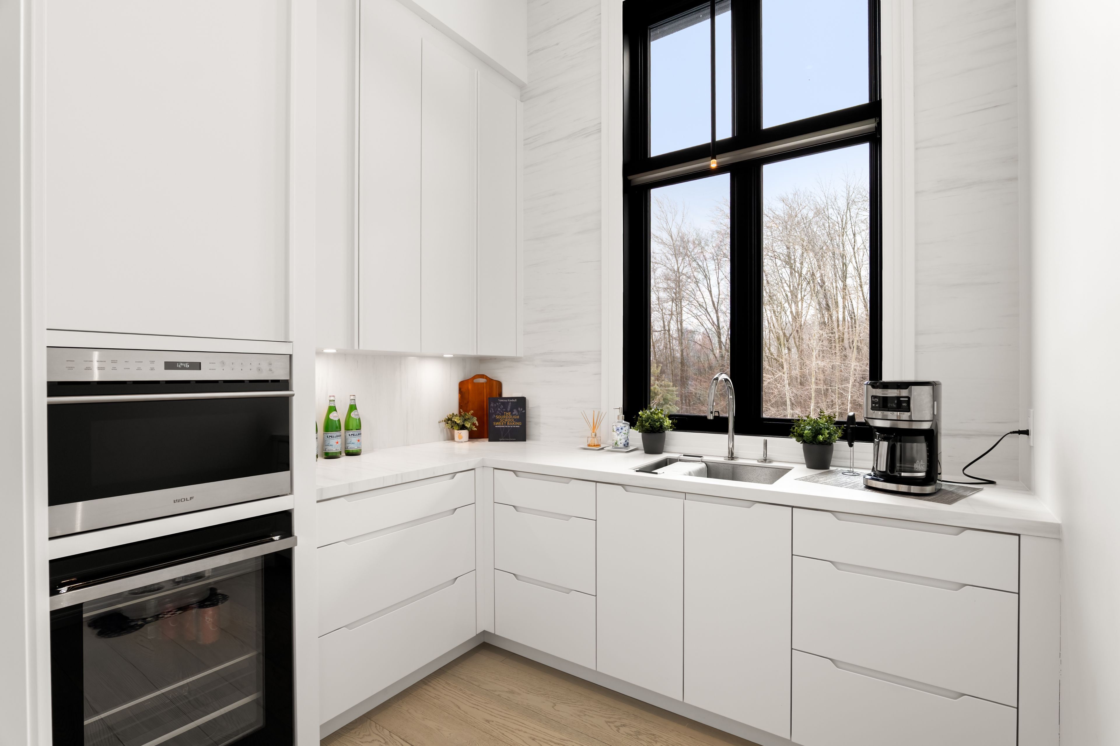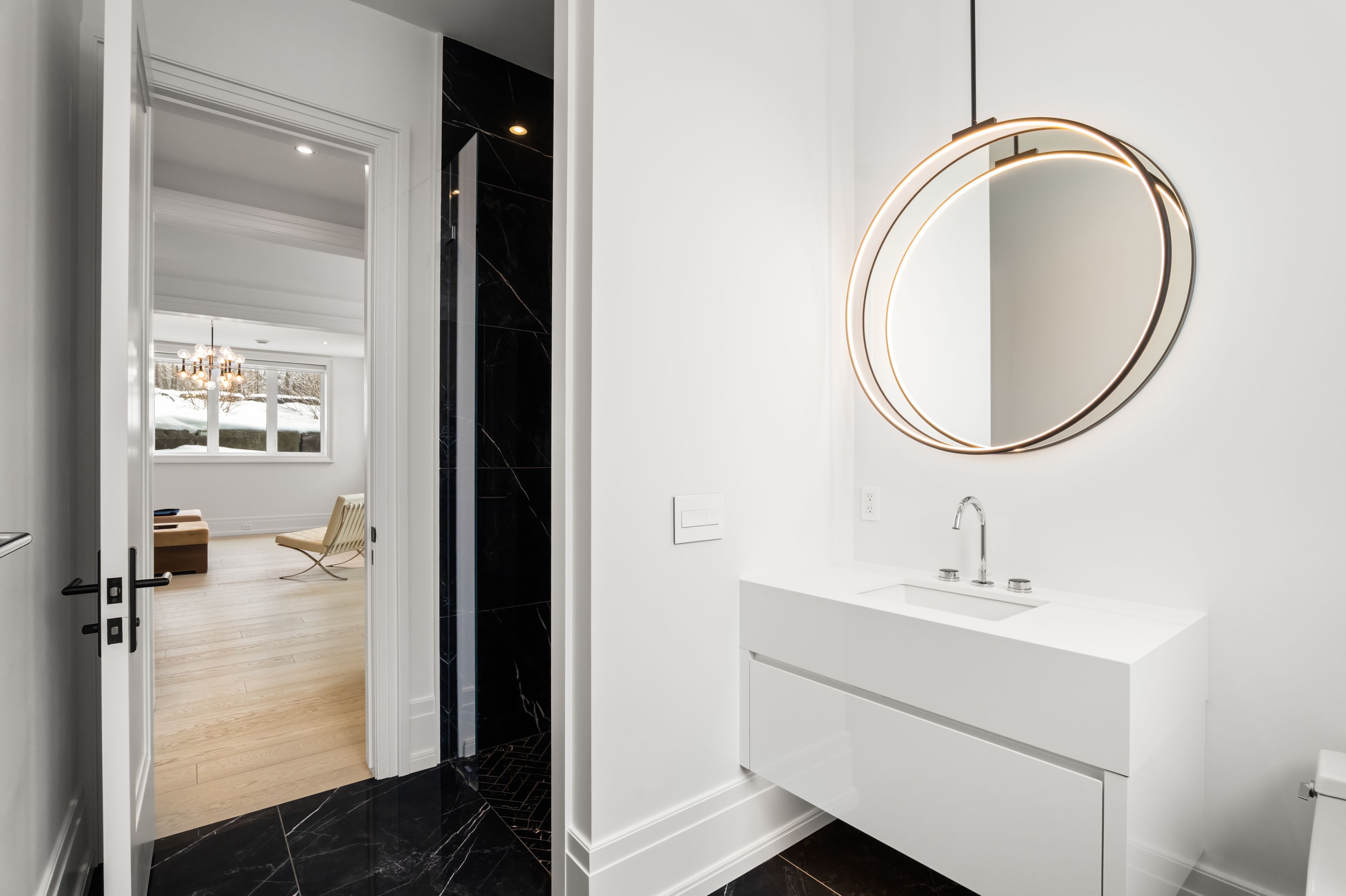 Welcome to life inside heritage lake estates - a private, gated enclave in puslinch known for its mature surroundings and beautiful custom homes. Set on a premium half-acre pie-shaped lot backing onto mature treelines, this custom stone bungalow offers privacy without compromise. With 2,252 square feet on the main floor and soaring 14-foot ceilings, the principal living space is defined by symmetry, scale, and natural light. A custom fireplace anchors the living room, while upgraded crown moulding and floor-to-ceiling windows create a refined yet inviting atmosphere. The kitchen and dining area are gallery-inspired in design, centred around a striking 21-foot stone waterfall island with seating for eight. Integrated cabinetry conceals premium wolf appliances for a seamless aesthetic. Heated floors, custom lighting, and electric blinds reflect the many thoughtful upgrades woven throughout the home. Step outside to a covered back patio complete with built-in heaters and an impressive 350 sq ft gas fire feature, overlooking the fenced yard and tranquil forest backdrop - ideal for elevated, year-round outdoor living. The primary suite is a private retreat, offering 12ft ceilings, floor to ceiling windows, a generous walk-in closet and spa-inspired five-piece ensuite with jet spa shower system. Across from this, the well-appointed laundry room and additional main-floor bedroom, featuring with its own ensuite bath and walk-in closet, complete the main level. The fully finished lower level adds two bedrooms, each accompanied by an ensuite bathroom, a spacious recreation room with custom fireplace, dedicated office space, and a home gym - perfectly suited for growing families or multi-generational living. A functional mudroom with built-in cabinetry offers direct access to the heated three-car garage and walk-down access to the basement. 153 heritage lake drive invites you to embrace a quiet kind of luxury, framed by the serenity of puslinch lake.