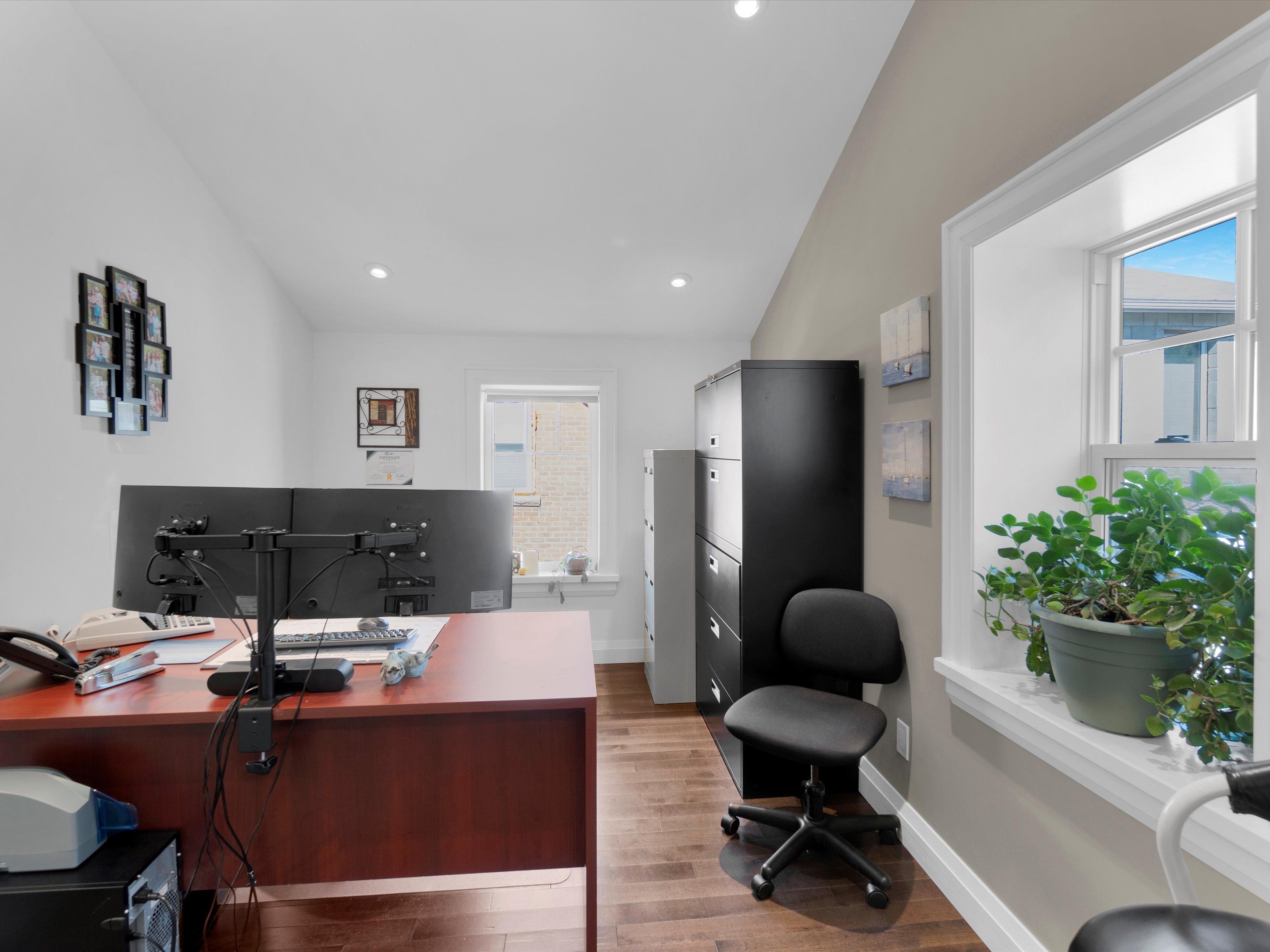 Great opportunity to acquire this unique and fully renovated commercial (c3) property that's full of charm and character, located in the heart of the central business district of bracebridge's high exposure main (manitoba) street. Vtb mortgage available to qualified buyer. Property is unique and beautifully landscaped with inviting front covered porch, 5 private rear parking spaces and full municipal services. Building has approximately 1500 sq ft of total finished area. Main level (550 sq ft) features large front reception/office area, 2 additional offices and storage areas. Upper loft level (400 sq ft) has 2 offices and 1-2 piece bathroom while the lower level (550 sq ft) consists of a large office, kitchen/lunchroom, 1-2 piece bathroom and 3 utility/storage areas.