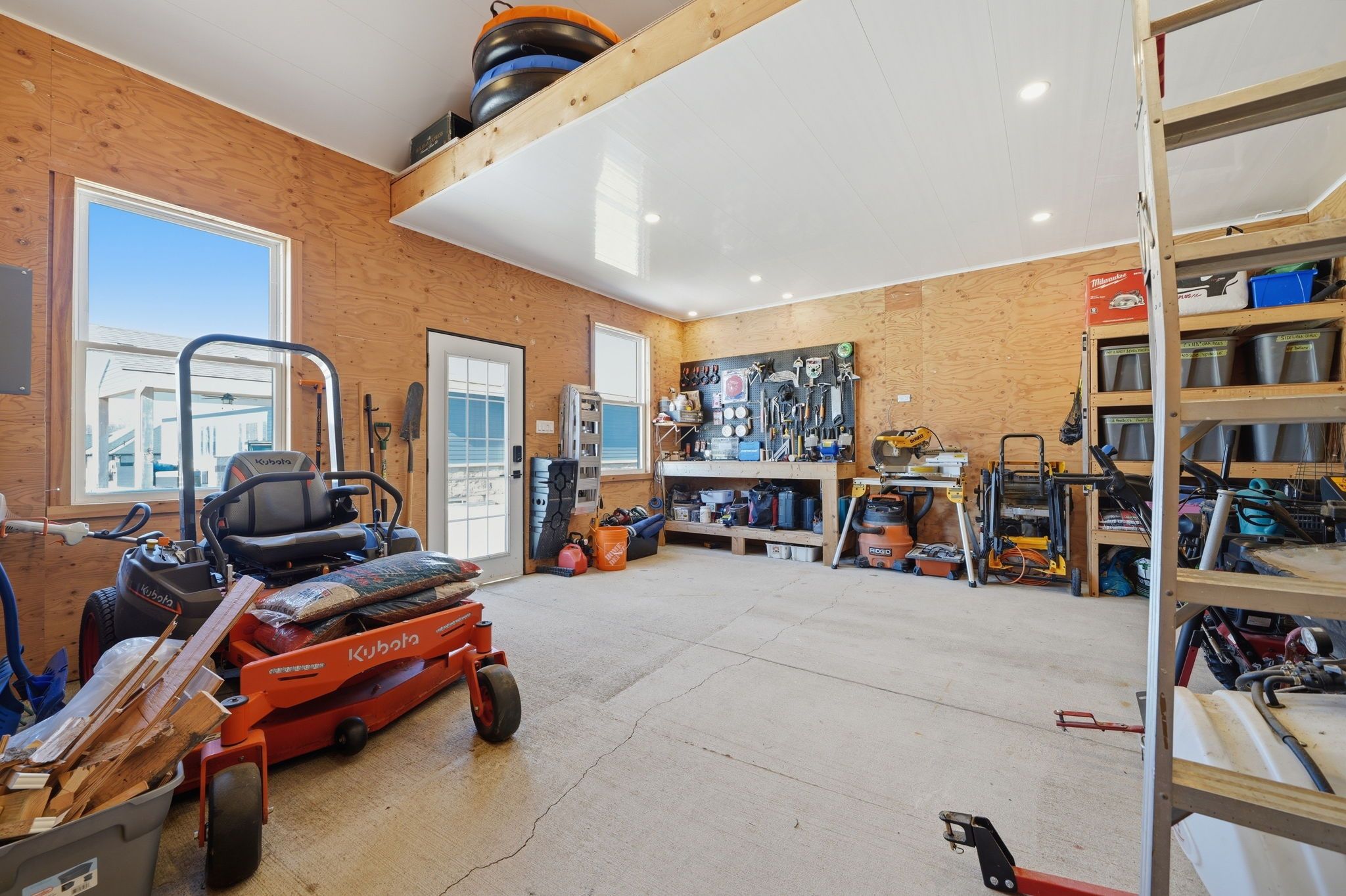 • Heated triple-car garage with epoxy flooring and workshop for projects.