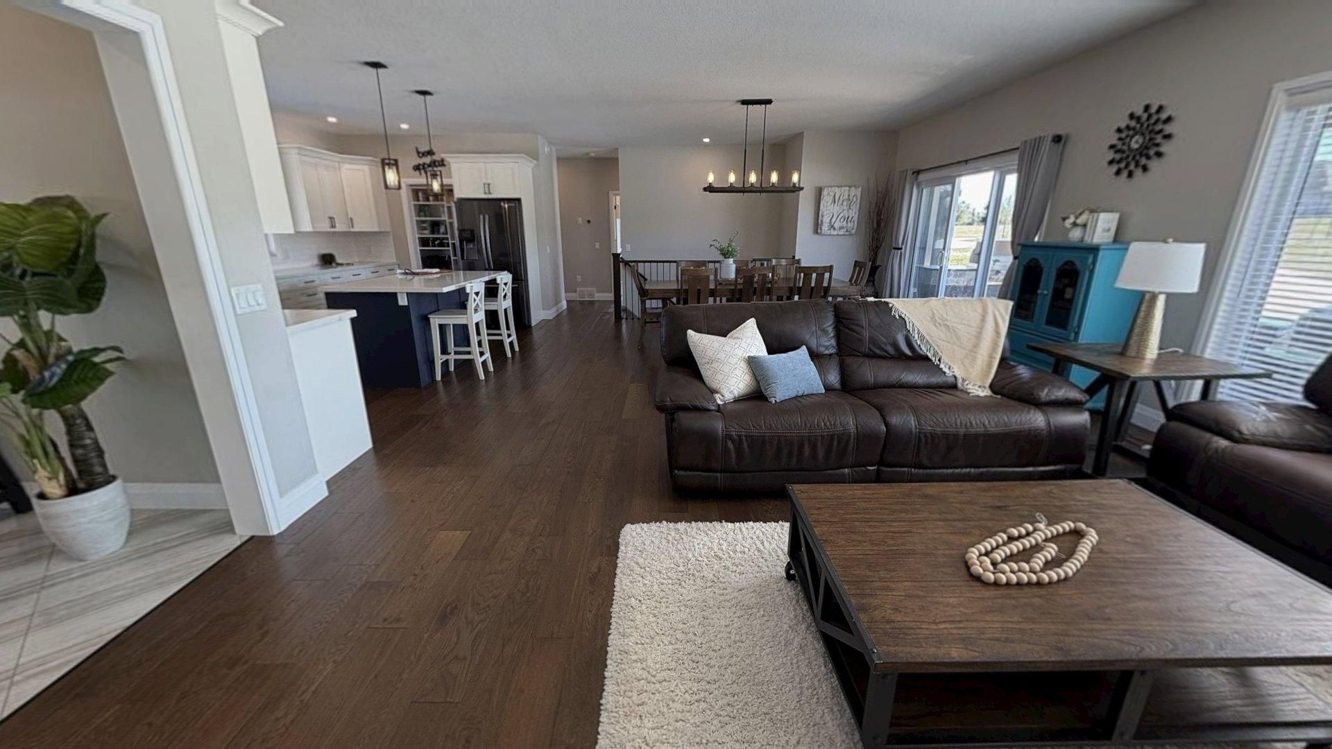 • Spacious open-concept main floor with a chef-inspired kitchen and quartz countertops.