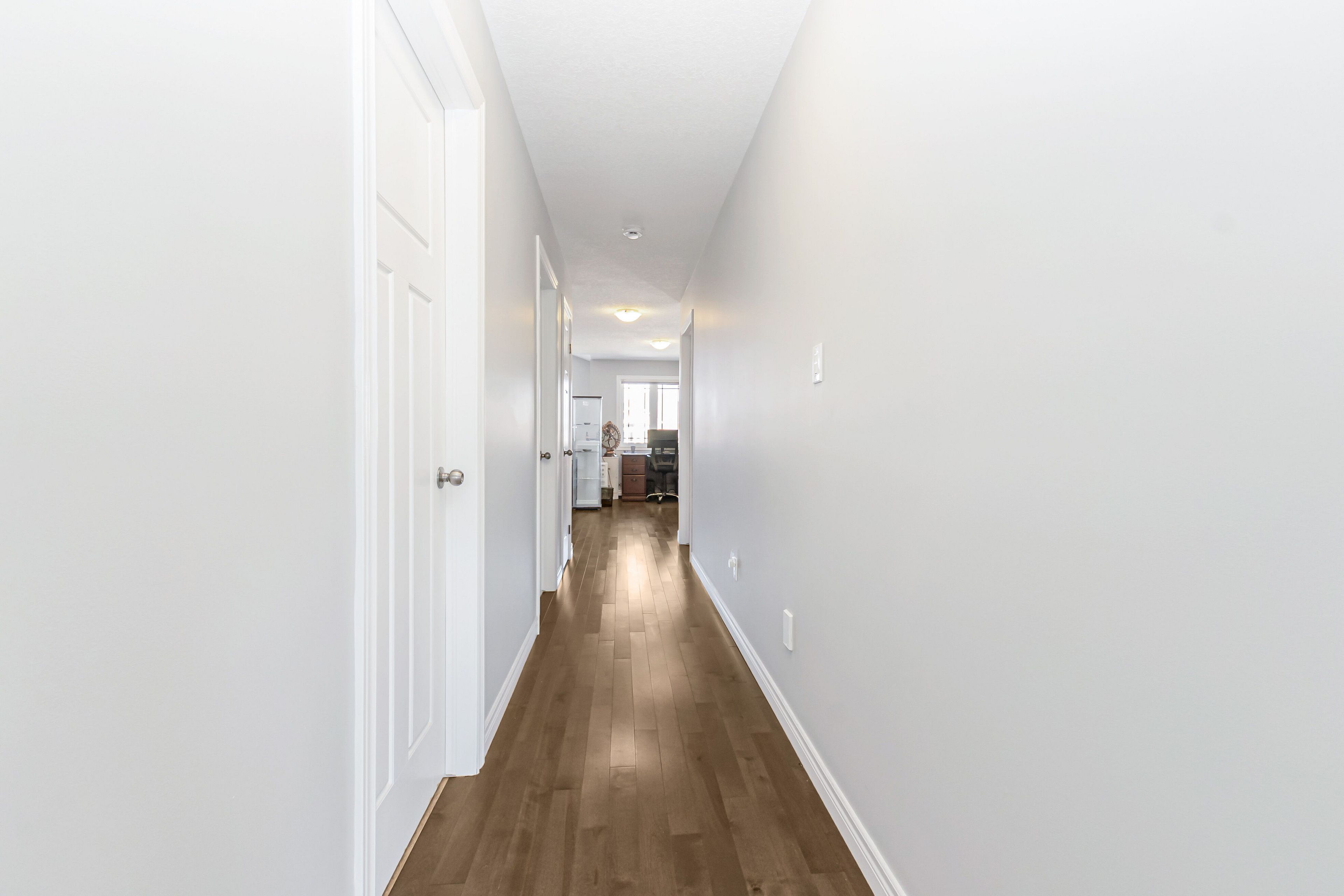 Premium lot.. Offered with no rear neighbors, this beautifully upgraded home is located in a sought-after hamilton community bordering ancaster. Offering over 2,700 sq ft of bright, functional living space, it is perfectly suited for families seeking comfort, privacy, and convenience. The main living area features a custom wall-to-wall built-in entertainment unit with an integrated fireplace, display shelving, and premium millwork-serving as a standout focal point. The professionally finished backyard deck provides a private outdoor retreat, ideal for entertaining or family enjoyment. The main floor includes a private office adjacent to a full washroom, (originally was a bedroom for parents with full bathroom attached) offering flexibility for remote work, guests, or multi-generational living. The upgraded kitchen is equipped with built-in appliances, including a wall oven, stove, and microwave, combining style with everyday functionality. Upstairs, the home offers three spacious bedrooms and a large loft with the potential to convert into a fourth bedroom. The layout allows for up to five bedrooms, with convenient washroom access for three bedrooms and the added benefit of second-floor laundry. Ideally located near parks, schools, public transportation and hamilton airport employment corridor, and amenities along upper james, this property delivers an exceptional blend of space, upgrades, and a prime location. Few pictures are ai generated!