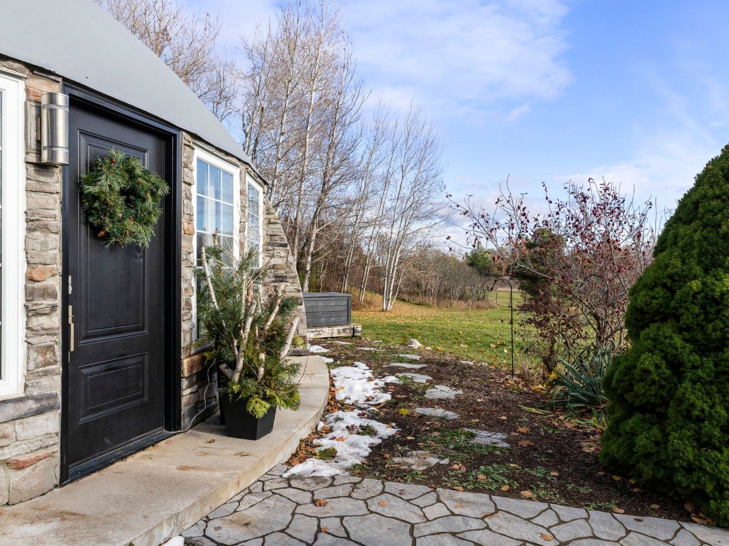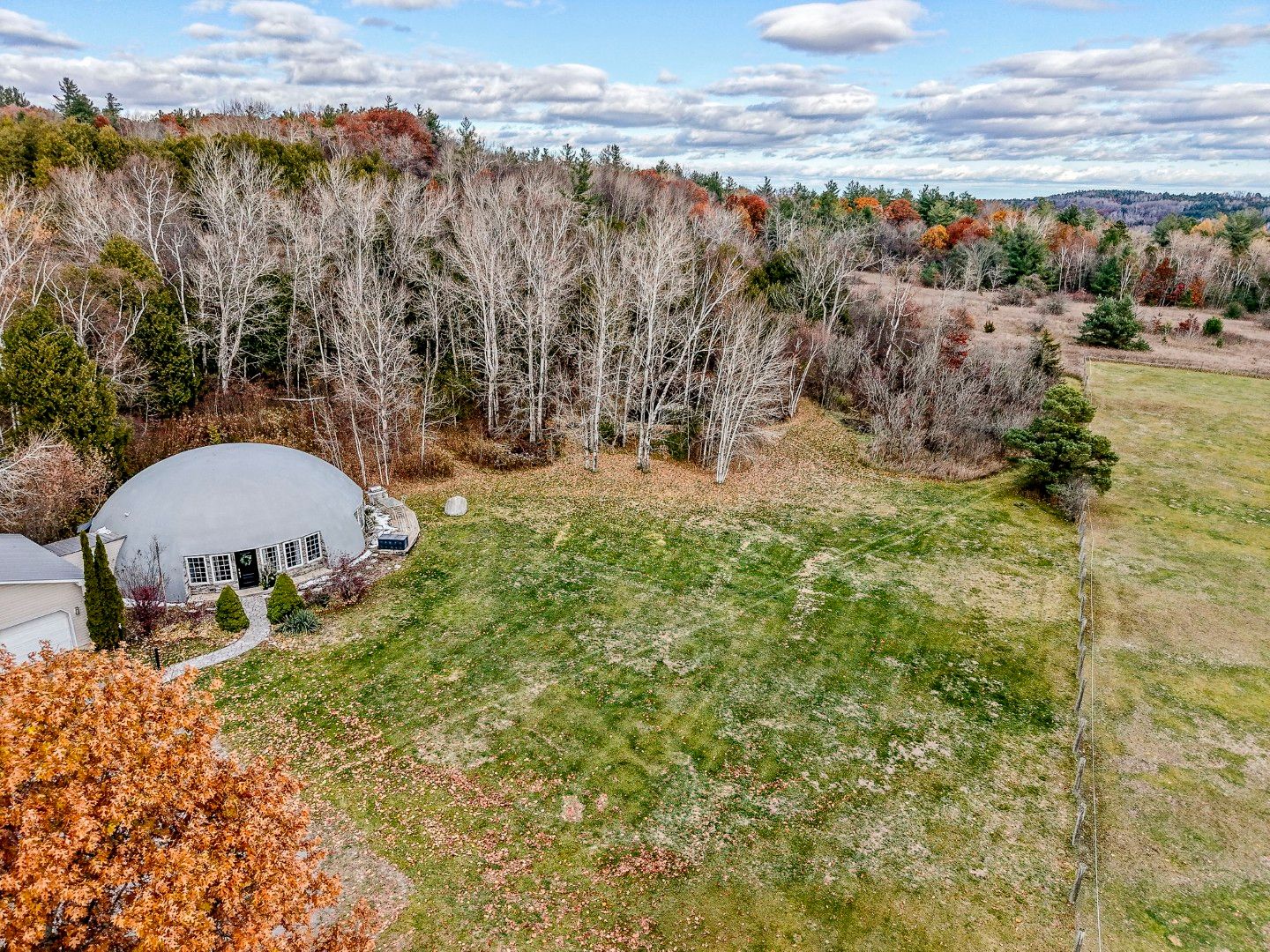 A rare architectural offering in northumberland - this monolithic dome bungaloft blends innovative structural engineering, sustainable design, and elevated modern living across a private 3-acre setting with a serene pond. Designed for those who appreciate exceptional build quality and future-forward living, this insulated concrete home delivers unmatched energy efficiency, passive-solar performance, and remarkable year-round comfort. Inside, natural light accentuates the home's organic curvature and soaring volume, highlighted by 18-ft peak ceilings that create an airy, gallery-like ambiance. The main level offers 3 bedrooms and open-concept living anchored by radiant electric heating, polished concrete floors, and tranquil views of the surrounding landscape. A sculptural circular staircase leads to a 400 sq. Ft. Loft with half bath - perfect as a studio, private office, wellness space, or guest retreat. Engineered to surpass conventional standards, the monolithic dome structure is renowned for extreme durability and disaster resistance, offering peace of mind through superior strength, energy performance, and low-maintenance longevity. This home stands as a modern sanctuary - quiet, stable, and naturally temperate in every season. Outdoors, enjoy a peaceful connection to nature with mature trees, sweeping sky views, and a picturesque pond - an ideal landscape for wellness living, hobby homesteading, or simply unwinding in a private country setting. Perfectly located minutes to amenities, commuter routes, and prince edward county wine country. A truly extraordinary opportunity to own one of the region's most unique and enduring homes - where innovative architecture meets warm, minimalist luxury and quiet rural elegance.