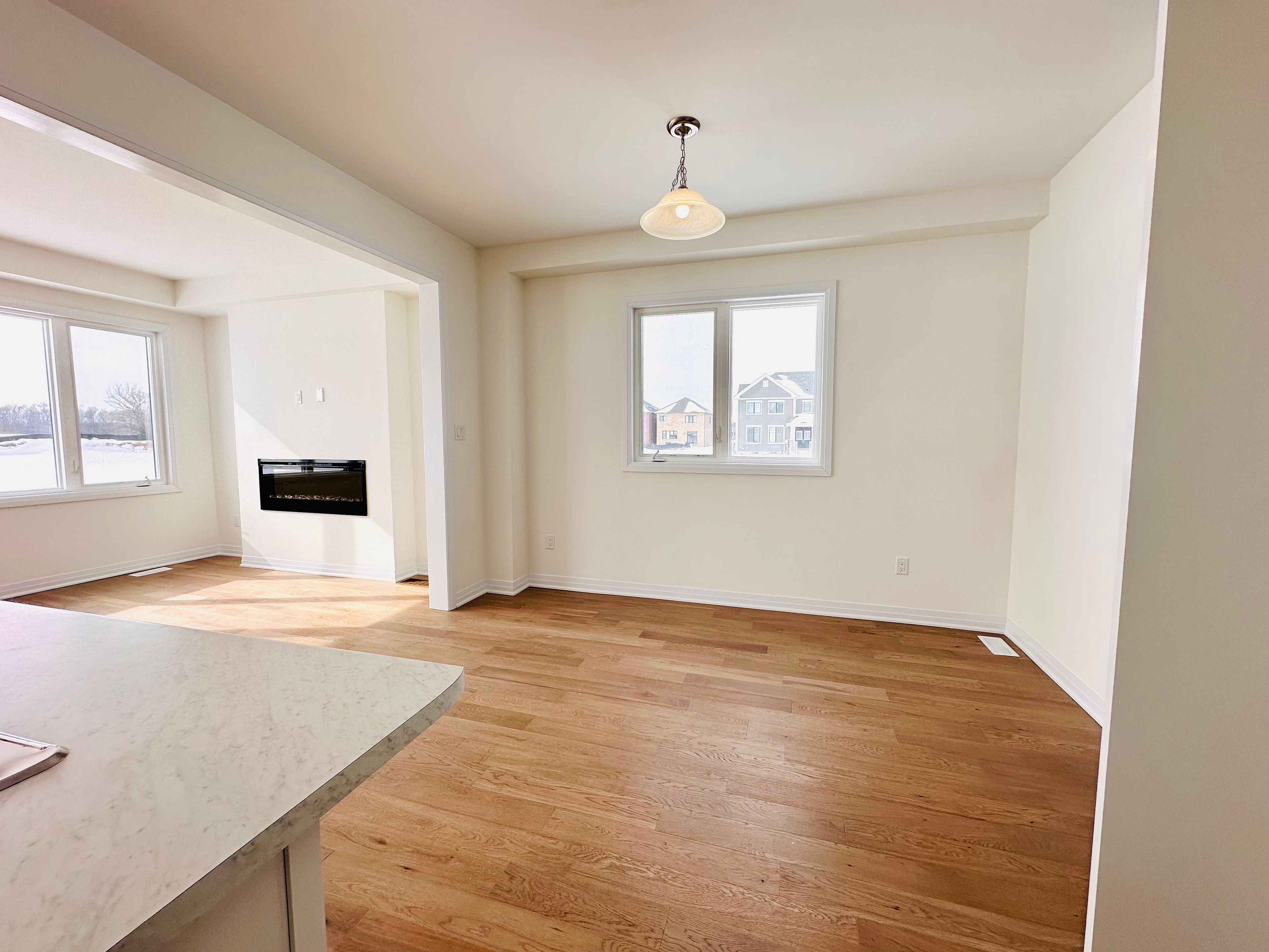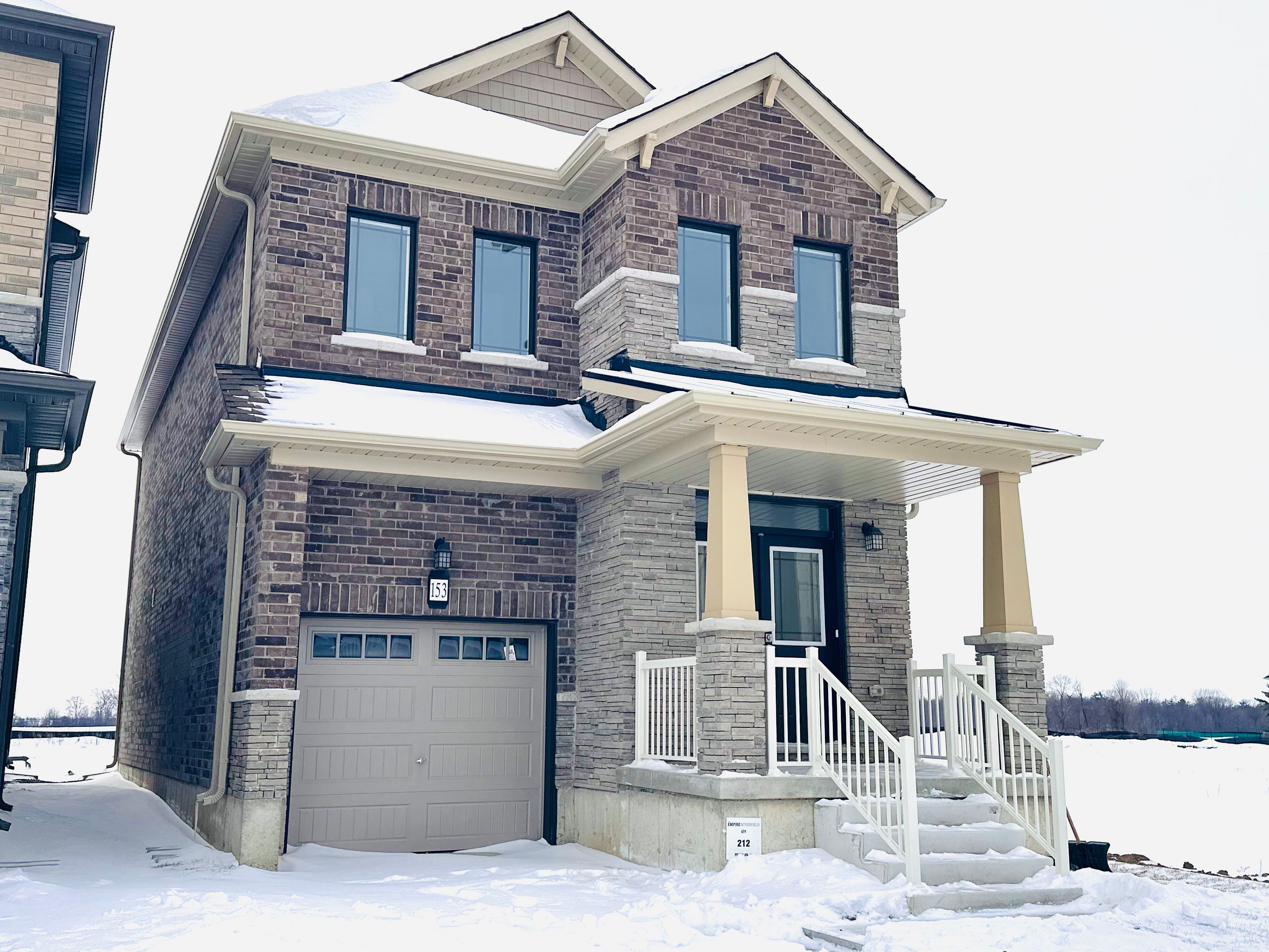 Brand-new and never lived in, this exceptional 1,874 sq ft (mpac) detached home at 153 wilmot rd in brantford is set in a growing, family-friendly community surrounded by peaceful views. Thoughtfully designed for modern living, the main floor features a bright open-concept layout with upgraded smooth ceilings and a stylish, spacious kitchen complete with upgraded cabinetry, quartz countertops, a double sink, and a generous breakfast area. The inviting great room with a cozy fireplace seamlessly connects to sliding doors leading to a large backyard - perfect for entertaining or unwinding outdoors. Convenient inside access to the garage enhances everyday functionality. A hardwood staircase with sleek metal pickets leads to the upper level, offering four generously sized bedrooms, including a luxurious primary retreat with a large walk-in closet and a 4-piece ensuite featuring a tub and separate shower. Upper-level laundry adds convenience, while the unfinished basement presents incredible future potential. Close to schools, parks, plazas, walking trails, and everyday amenities, this beautifully upgraded home is a rare opportunity to own brand new in one of brantford's most desirable and rapidly growing neighbourhoods.